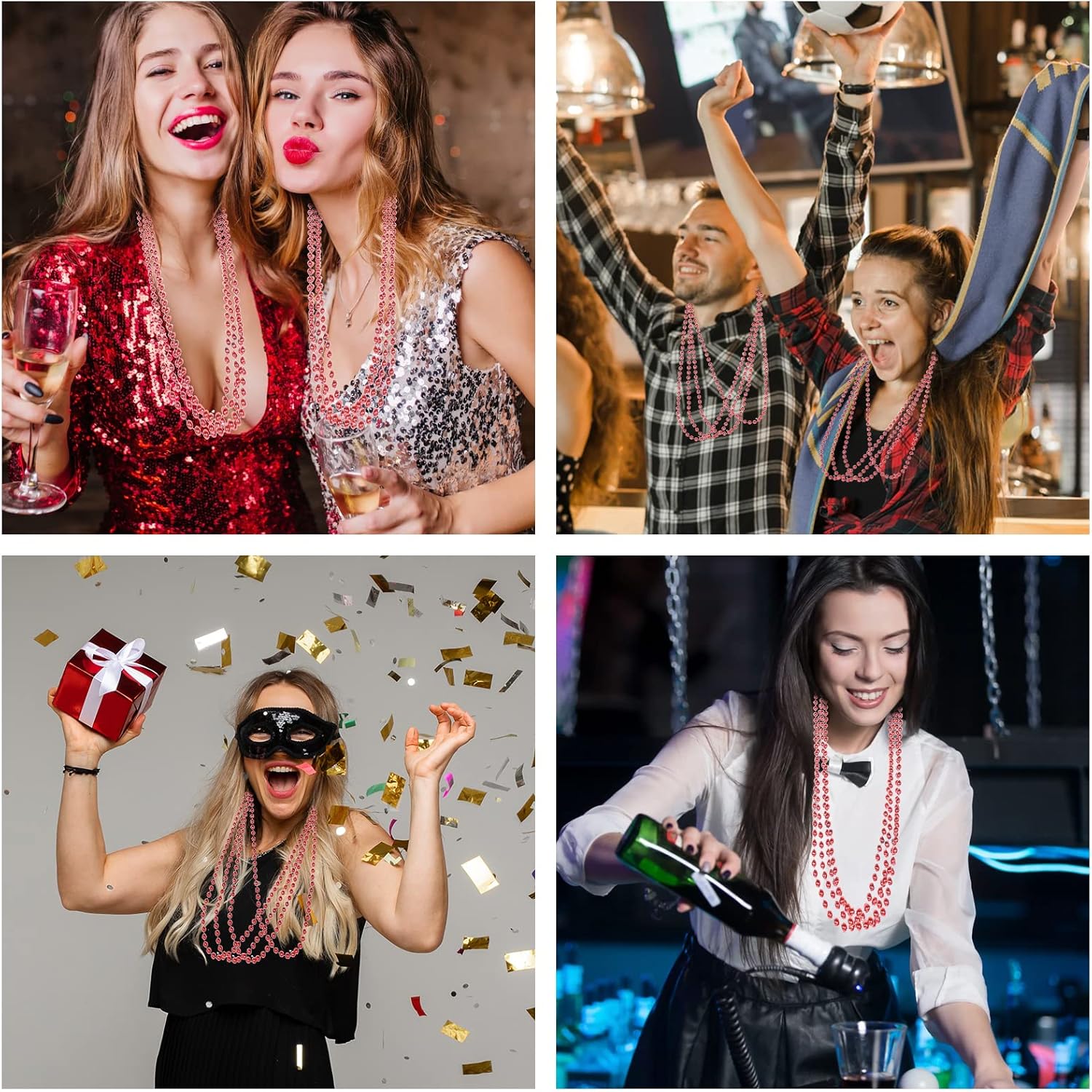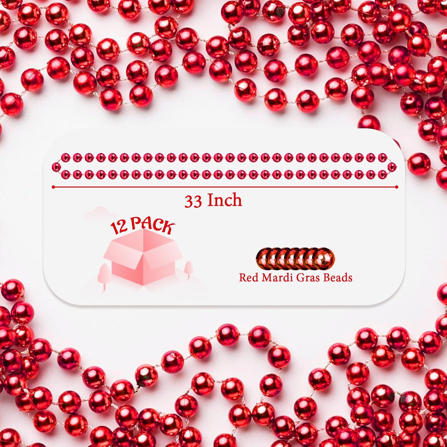 Mardi Gras Beads: 15pcs di perline collane bulk, collana di perline rosse, è disponibile in colori classici Mardi Gras. Le perle rosse Mardi Gras collana fare accessori perfetti per Mardi Gras costumi e sfilate. Qualità premium: le collane con perline Mardi Gras sono realizzate in materiale plastico robusto e resistente, non si rompono facilmente, non sbiadiscono, arrugginiscono e si corrodono, le perline metalliche rotonde hanno una superficie liscia e non irritano la pelle, fornendo un'esperienza confortevole da indossare mentre si può utilizzare per un lungo periodo di tempo. Collana con perline metalliche da 7 mm: ogni collana Mardi Gras è lunga 83,8 cm e ha perline da 7 mm. Le dimensioni delle perline per feste le rendono adatte a tutti, possono indossarle come decorazioni di carnevale per feste in maschera. Bomboniere perfette per feste: queste collane di perline sono perfette per decorazioni Mardi Gras e sfilate di Mardi Gras, le collane con perline per feste sono anche ampiamente utilizzate per feste di Natale, feste di San Patrizio, feste di Halloween, feste di compleanno, feste di Capodanno, eventi di vestimento in discoteca, bomboniere e sfilate, ecc. Ideale per ogni occasione: la collana di perline rosse può essere utilizzata non solo come collane, ma anche per ornamenti da tavolo e vasi a casa per aggiungere atmosfera di festa, adatta per appendere in strada, negozi, aule e altri luoghi. Sono delicati accessori per collane e bomboniere ideali.