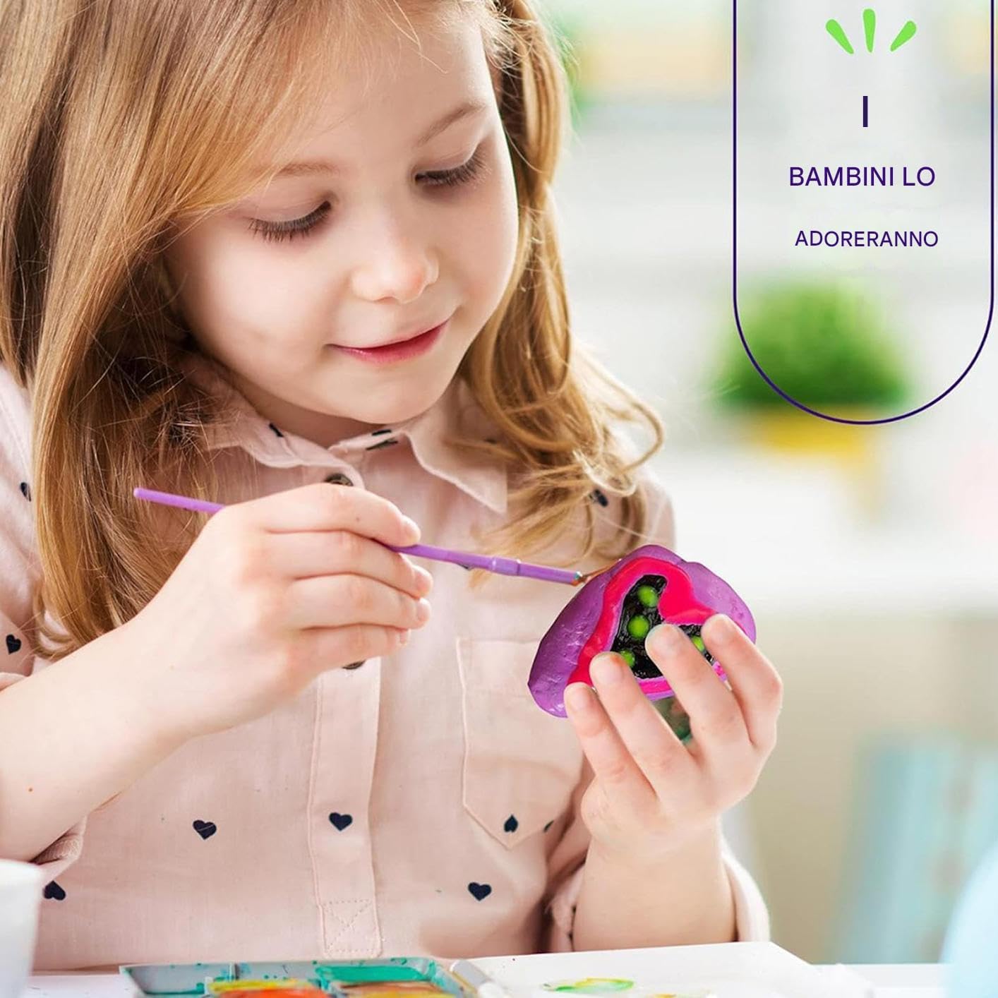 Arricchisce l'Ambiente: Progettato con una funzione di luminescenza automatica, questo kit per dipingere le rocce l'atmosfera della camera da creando una suggestiva decorazione notturna. Permette di ammirare l'arte luminosa delle pietre, contribuendo a un ambiente e visivamente affascinante, ideale per la calma delle ore serali. Arte che unisce: Il kit fortifica i legami familiari con un'avvincente guida passo passo, permettendo momenti creativi condivisi genitori e figli collaborano artisticamente, trasformando ogni incontro in un'occasione . Design Inclusivo per Tutti: Il kit per dipingere i sassi incorpora un design inclusivo con texture che permette a utenti di diverse abilità di godere la pittura su superfici di pietra naturale. Favorisce l'espressione artistica senza limiti e migliora l'engagement sensoriale durante i progetti creativi a casa o a scuola. Strumento per Educazione Artistica: Il kit per dipingere sassi aiuta a rafforzare le capacità motorie incoraggiando pennellate precise e movimenti della mano controllati. Migliora il controllo e la concentrazione, abilità fondamentali per attività quotidiane come scrivere e disegnare. Realizzazione Artistica: Il kit con vernici glow assicura durabilità prolungata alle creazioni pittoriche, integrando funzionalità e valore estetico; articolo educativo pronto per le feste incoraggia esperienze condivise tra amici e famiglia con disegni luminosi che mantengono vivacità nel