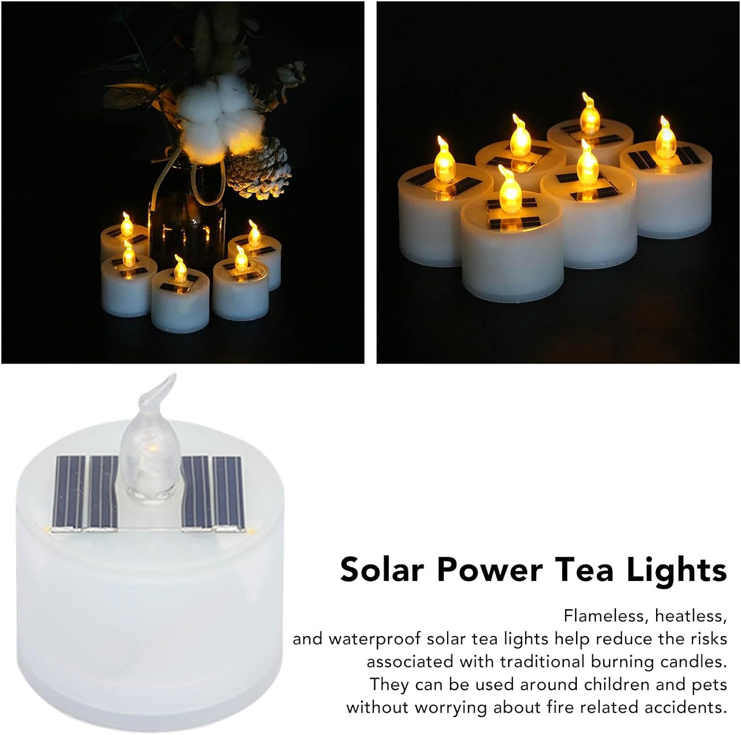 Carica pratica solare: queste luci del tè solare sono dotate di una batteria ricaricabile che si carica in modo efficiente alla luce solare diretta. Basta accendere la candela situata in fondo durante la ricarica per garantire prestazioni ottimali. Questa seccatura è progettata per comodità, non più preoccupato di cambiare frequentemente le batterie, poiché la fonte di energia solare rende le luci sempre per l'uso. Sensore Dusk to Dawn - Con un sensore di luce integrato, queste luci da tè solare si illuminano automaticamente quando cade il crepuscolo. Dopo aver assorbito la luce solare durante il giorno, forniscono circa 8 ore di illuminazione ambientale di notte. Si prega di notare che non si attivano in ambienti luminosi, garantendo che ti godrai il loro morbido sfarfallio esattamente quando è più necessario. Sicuro e - goditi la tranquillità con le nostre luci da tè solare senza fiamme, sia per uso interno che esterno. A differenza delle candele tradizionali che pongono rischi, queste luci sono completamente sicure e animali domestici. Il loro design consente inoltre un uso divertimento e per le preoccupazioni, rendendoli una scelta ideale per qualsiasi impostazione. Performance duratura - Queste candele senza che tremolano si distinguono con la loro durata, non producendo gocciolamenti di cera ed emissioni di carbonio. Apprezzerai l'efficienza energetica e la cordialità di queste luci, poiché non migliorano il tuo arredamento, ma contribuiscono anche a un pianeta più pulito. Applicazioni versatili: le nostre luci da tè solare brillano in una varietà di ambienti, da accoglienti ambienti domestici a vivaci riunioni all'aperto. Per l'uso in, i patii e combinati con lanterne o bottiglie di vetro, elevano ogni occasione, che si tratti di matrimoni, feste, festival o celebrazioni per le vacanze come Natale e Halloween.