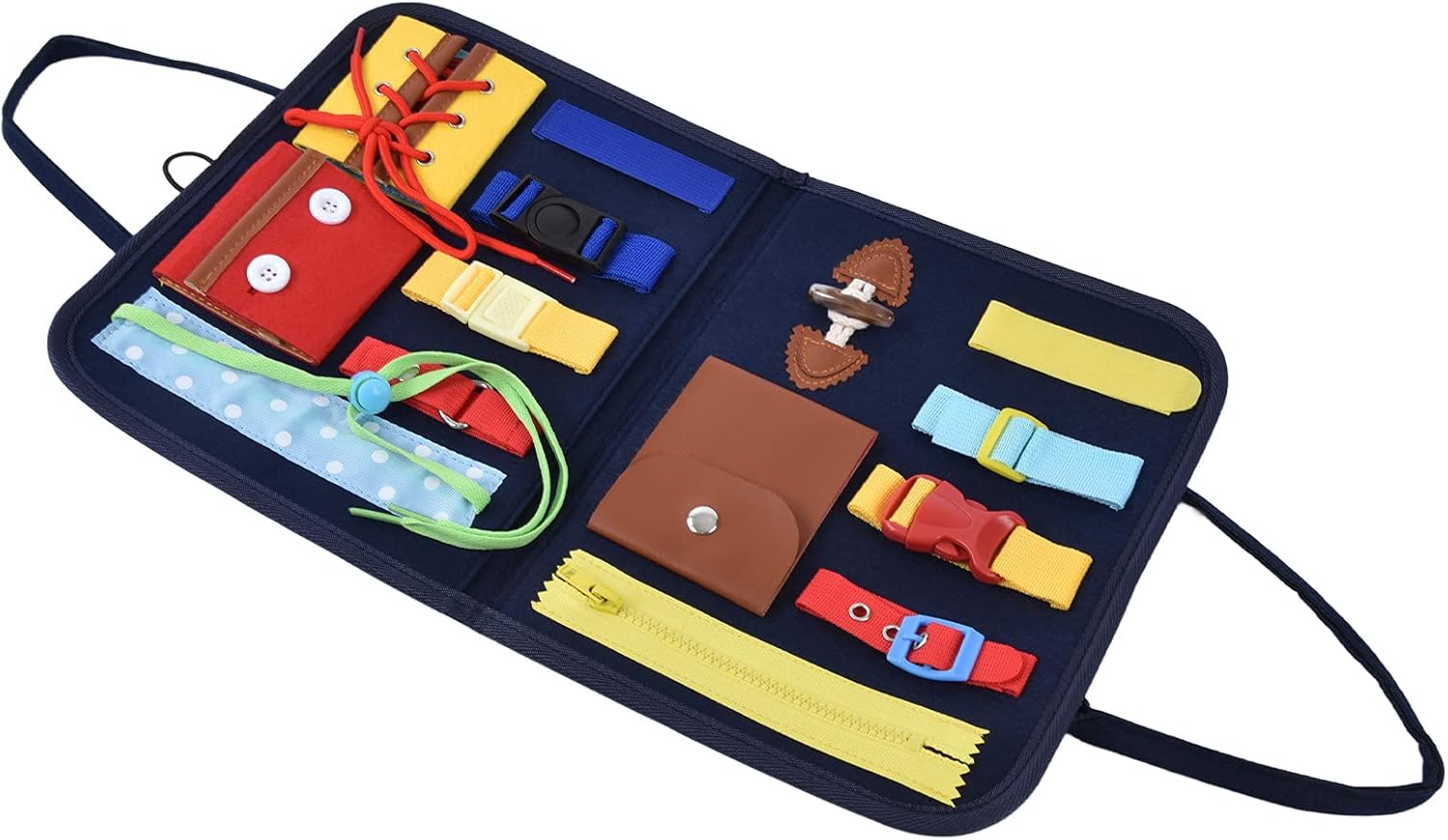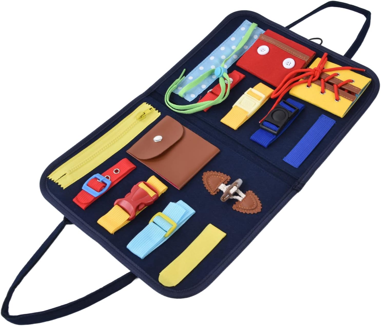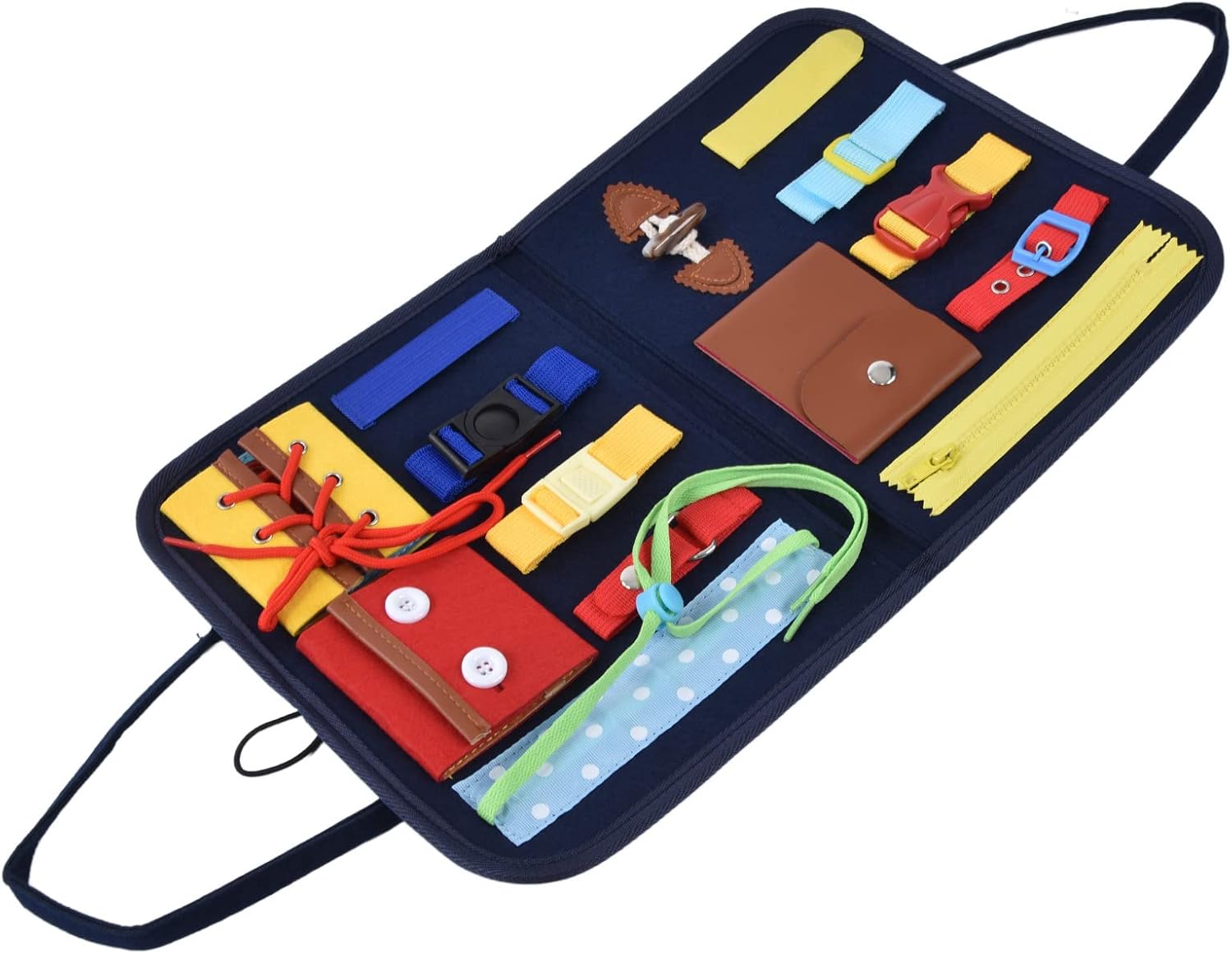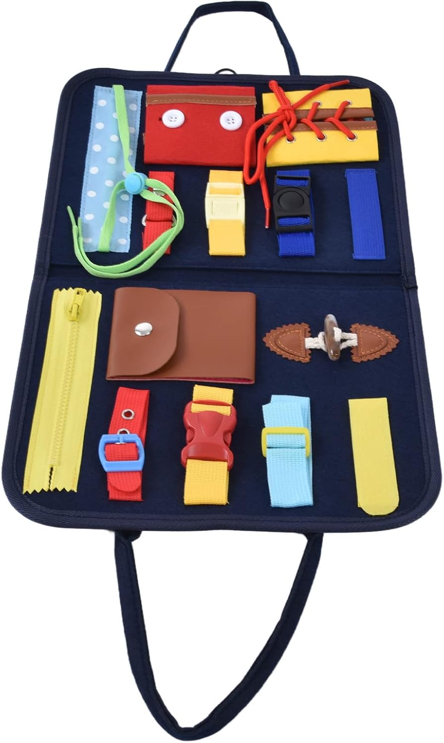 【Sviluppo delle competenze】- Contribuire alle capacità motorie, alla memoria e alla stimolazione mentale di tuo figlio con la nostra tavola impegnata. Morbido a toccare, è un modo giocoso per ispirare l'apprendimento. 【Kindergarten Essential】- I nostri giocattoli sensoriali non sono un giocattolo, ma una significativa attrezzatura didattica utilizzata nelle asili, progettata per facilitare il processo di apprendimento per i nostri piccoli studenti. 【Apprendimento interattivo】- Consenti a tuo figlio di imparare e crescere con il nostro libro di attività per bambini. Una mappa sensoriale ispirata a Montessori di facile trasporto e facile da fare che aiuta lo sviluppo delle competenze di base nei neonati. 【Versatile e durevole】- I giocattoli per bambini sono adatti a bambini dai 18 mesi ai 6 anni. È resistente, lavabile, può incitare alla creatività e resistere al tempo di gioco dei bambini offrendo al contempo un'esperienza di apprendimento arricchita. 【Lezioni pratiche】- Impiega il nostro libro occupato per bambini e lascia che tuo figlio impari attraverso l'azione, mentre scoprono come legare le lacci delle scarpe, tirare le cerniere, identificare frutta e fissare i pulsanti, il tutto divertendosi.