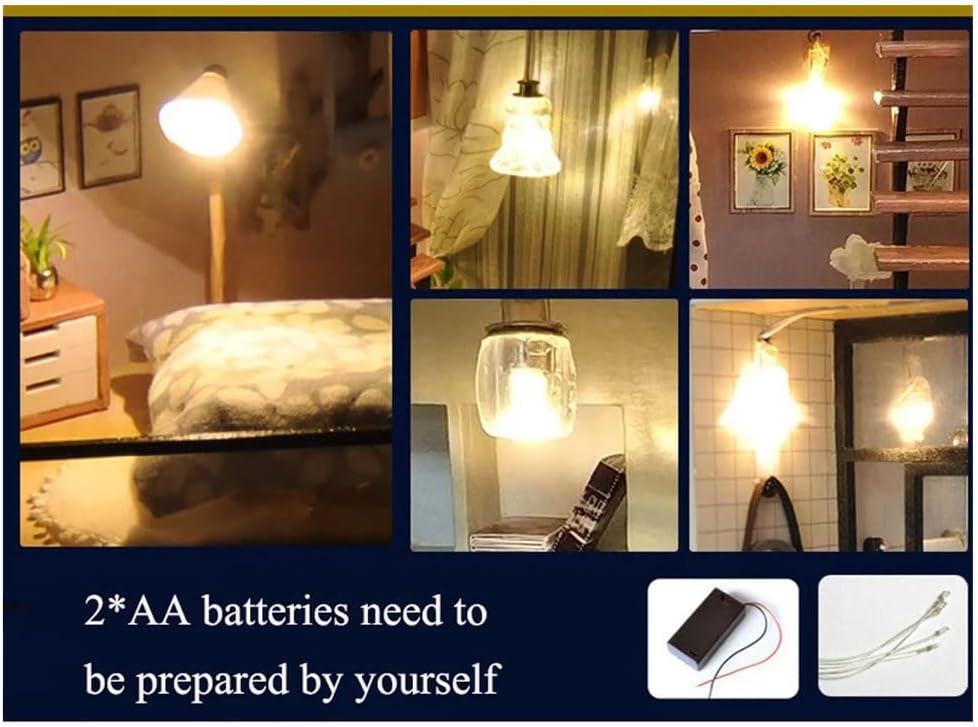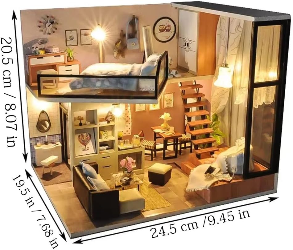 [Set completo]: realizzato con materiali di alta qualità, il modello di casa delle bambole fai da te in 3D con mobili, luci e varie piante, ornamenti e mobili è piuttosto realistico e progettato in modo intelligente, molto bello. [Da assemblare]: kit di miniature per case delle bambole in legno con copertura antipolvere, non è un modello finito, devi realizzarlo tutto da solo, costruisci la tua casa. [Ottimo regalo]: un meraviglioso progetto/regalo per bambini e adulti, che migliora la creatività, sviluppa l'interesse e coltiva l'affetto tra genitori e figli, un ottimo modo per rilassarsi e avere pazienza. [Scena in miniatura fai da te]: crea la tua scena in miniatura unica con questo modello di loft fai da te, perfetto per l'espressione creativa e gli hobbisti. [Attenzione]: non è un prodotto finito. L'articolo viene fornito con i pezzi, include tutti i mobili esposti, deve essere assemblato da soli.
