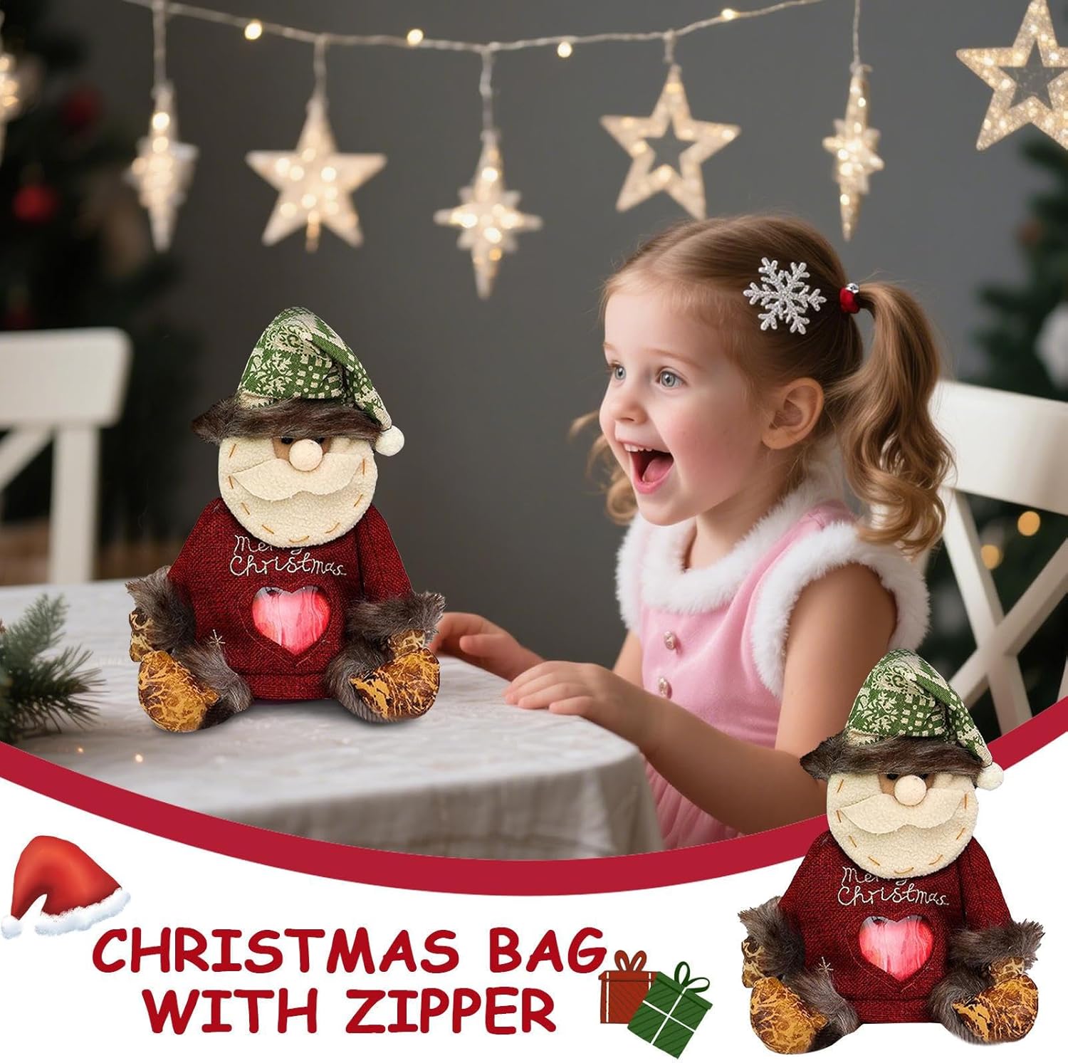 Regalo pratico: progettata per semplificare i preparativi per le vacanze, questa borsa regalo organizza e trasporta facilmente piccoli oggetti, aggiungendo un tocco affascinante alle celebrazioni. Facili da usare: questi sacchetti regalo natalizi riutilizzabili sono progettati per abbracciare uno stile di vita ecologico riducendo gli sprechi, offrendo una scelta per le celebrazioni festive e promuovendo al tempo stesso il riutilizzo a lungo termine Accessorio regalo irresistibile per bambini: la presenza del simpatico 3D porta originalità creativa ed entusiasmo festivo, incarnando pienamente la magia del Natale per deliziare i più piccoli Durevolezza per ogni Natale: realizzati in tessuto di alta qualità, questi sacchetti festivi garantiscono affidabilità duratura e prestazioni resistenti per innumerevoli stagioni festive a venire, preservando la magia del Natale anno dopo anno Accesso facile e sicuro: dotate di un funzionale sistema di cerniera, queste borse natalizie garantiscono una movimentazione agevole per evitare perdite e mantenere il contenuto perfettamente sicuro, migliorando l'usabilità con funzionalità intuitive e su misura