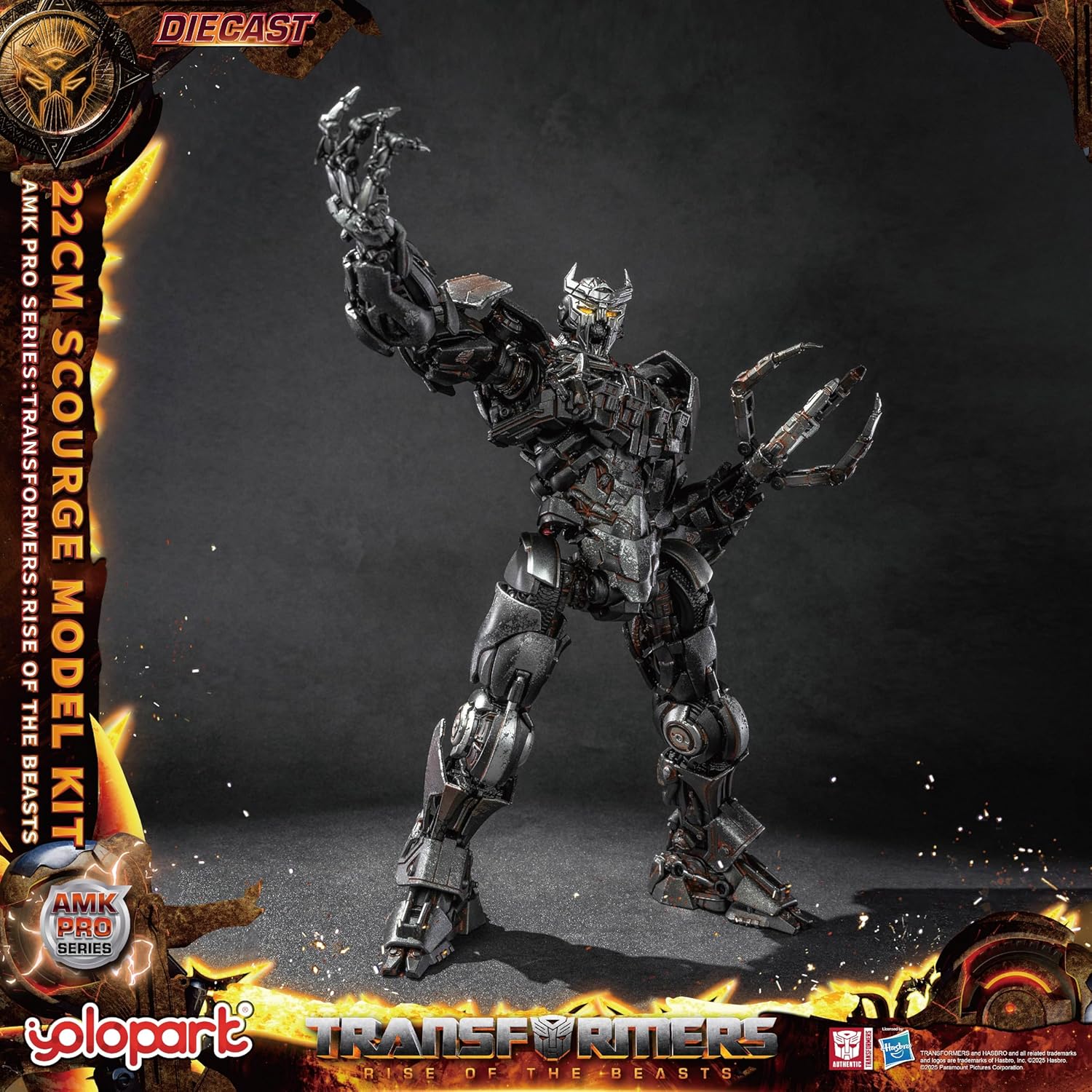 Action figure Pro Flagello da 22 cm. Licenza ufficiale per trasformatori: L'ascesa delle bestie. L'altezza del prodotto è di 22 cm. Questo giocattolo da collezione Pro Scourge Transformers ricrea l'ambientazione del film con una struttura articolata altamente dettagliata e una pittura realistica con danni da battaglia. Rivivi le scene classiche e i momenti indimenticabili del film. Avviso: solo in modalità, non trasformabile Kit di modelli di trasformatori Pro Scourge aggiornato: questo modello presenta uno scheletro in lega di precisione e una struttura articolare rinforzata. L'armatura della gamba è completamente rinforzata e la grande superficie dell'armatura è rivestita con tecnologia invecchiata per mostrare dettagli realistici del danno da battaglia. Gli occhi e il cannone utilizzano controlli magnetici, offrendo tre modalità di illuminazione (attivate dal magnetron distintivo) per creare effetti visivi dinamici a livello cinematografico Accessori fantastici: il kit modello Transformers Scourge della serie YOLOPARK AMK PRO include: 1 distintivo esclusivo, 1 figura Flagello, 1 faccia intercambiabile, 2 mani mobili, 1 cannone a ioni (dotato di funzione di illuminazione per catturare i momenti di combattimento), 1 mano artiglio, 1 lama scura e 1 base e supporto Energon (il terrorcon logo con magnete incorporato può servire come interruttore della luce degli occhi). La base circolare migliora l'estetica, mentre il supporto in metallo rende più facile sostenere e regolare gli angoli Giocattolo altamente articolato con trasformatore professionale: questa statuetta di Flagello preassemblata di alta qualità vanta articolazioni altamente mobili per una vasta gamma di pose fresche mantenendo un'eccellente stabilità. La testa ruota, la vita gira di 180 gradi e le ginocchia si piegano fino a 90 gradi. Ancora più impressionante, le gambe possono eseguire calci anteriori e riccioli con un angolo di 90 gradi Regalo perfetto: se stai acquistando un fan della serie di film Transformers, un collezionista di action figure o qualcuno che apprezza i giocattoli di alta qualità, il giocattolo Transformers MV7 PRO Flagello Transformer di YOLOPARK impressionerà sicuramente. È un regalo ideale per la festa dei bambini, compleanni, Halloween, Pasqua, Ringraziamento o Natale. Queste figure sono più di semplici giocattoli: sono un simbolo di avventura, immaginazione e nostalgia.