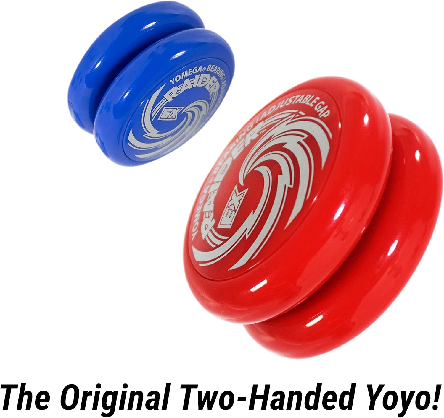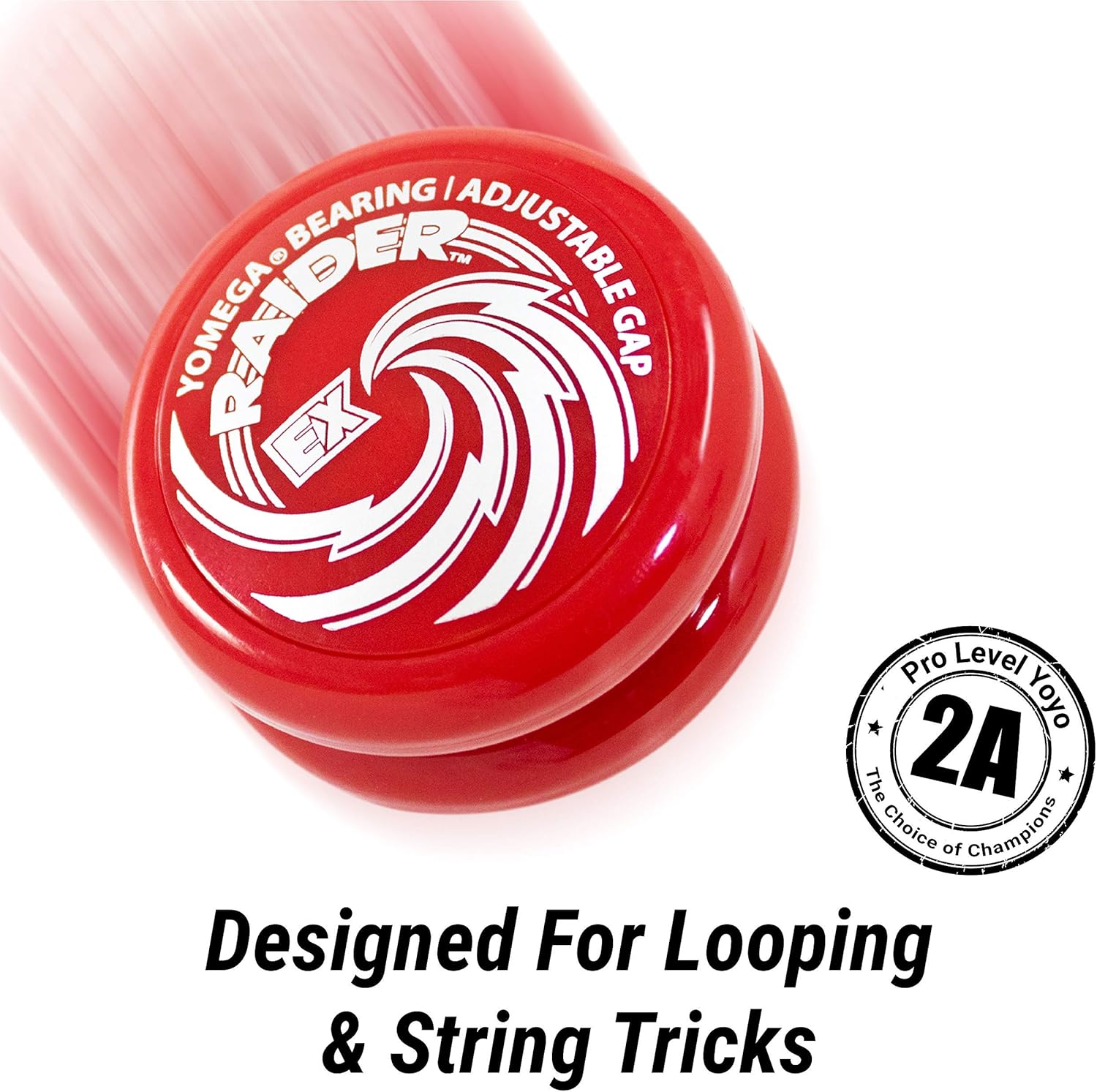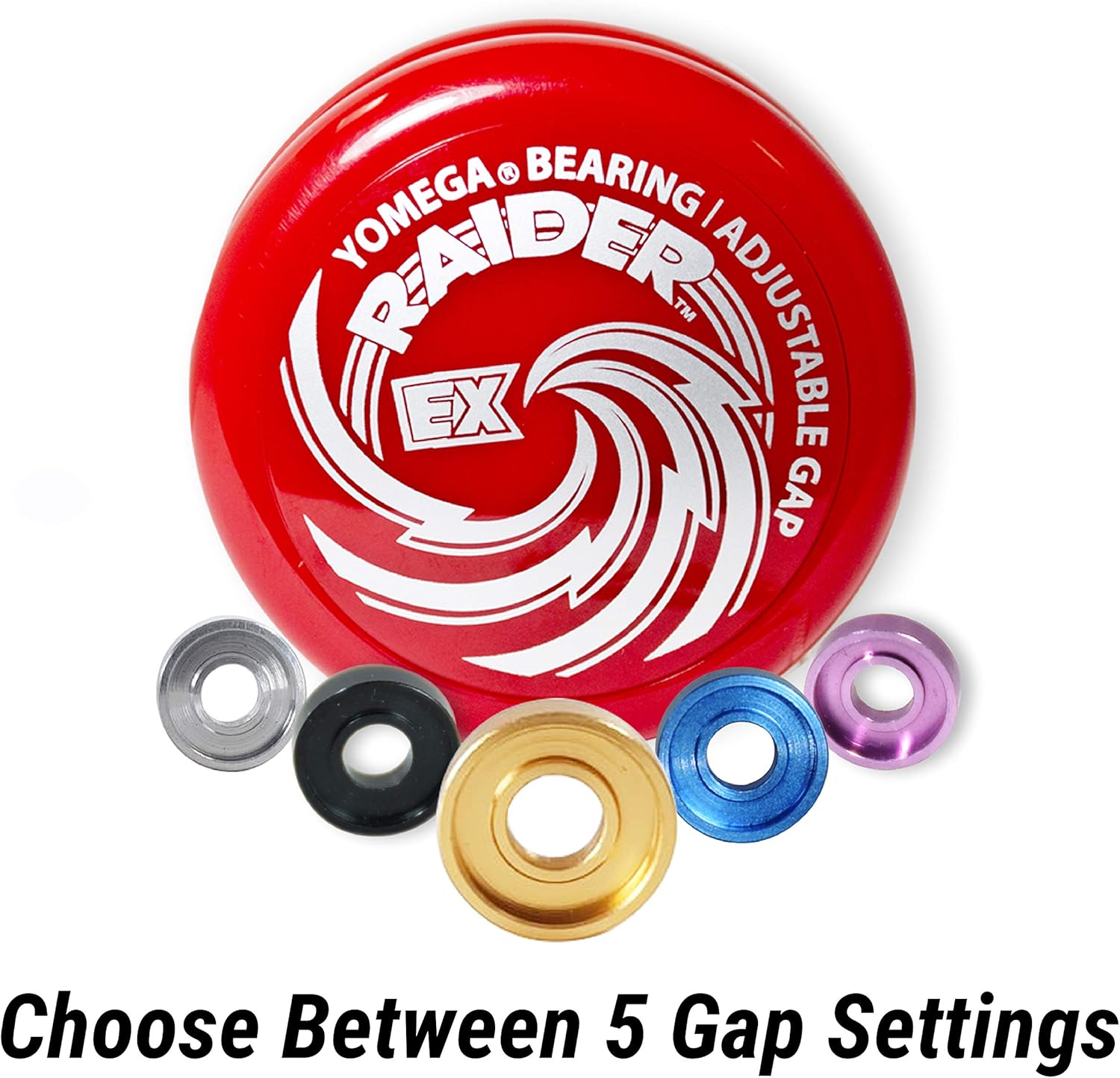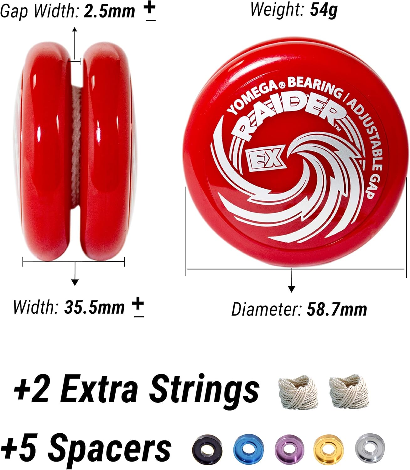 MULTIPLE SPACER SYSTEM - The Raider EX offers all the benefits of the standard Raider plus more. The multiple spacer system allows you to adust your gap with 5 different gap settings - with 5 color coded, aluminum spacers BEST CHOICE FOR LOOPING – There’s a reason the original Raider is one of the most popular yo yos in the world today. It’s perfect for looping tricks and provides ultimate control for two handed (2A) players. THE CHOICE OF CHAMPIONS - Yomega revolutionized yoyo play with advanced ball bearing technology and the highest quality standards in the industry. It is no wonder that it is the personal choice for so many advanced players in world and national yo-yo competitions. PRODUCT SPECIFICATIONS – Features the Starburst Return System. Weight: 53.6 grams. Width: 35.509mm. Trapeze Width: 12mm. Diameter: 58.75mm. Gap Width: Depends on spacers used. Recommended for ages 8 and Up.