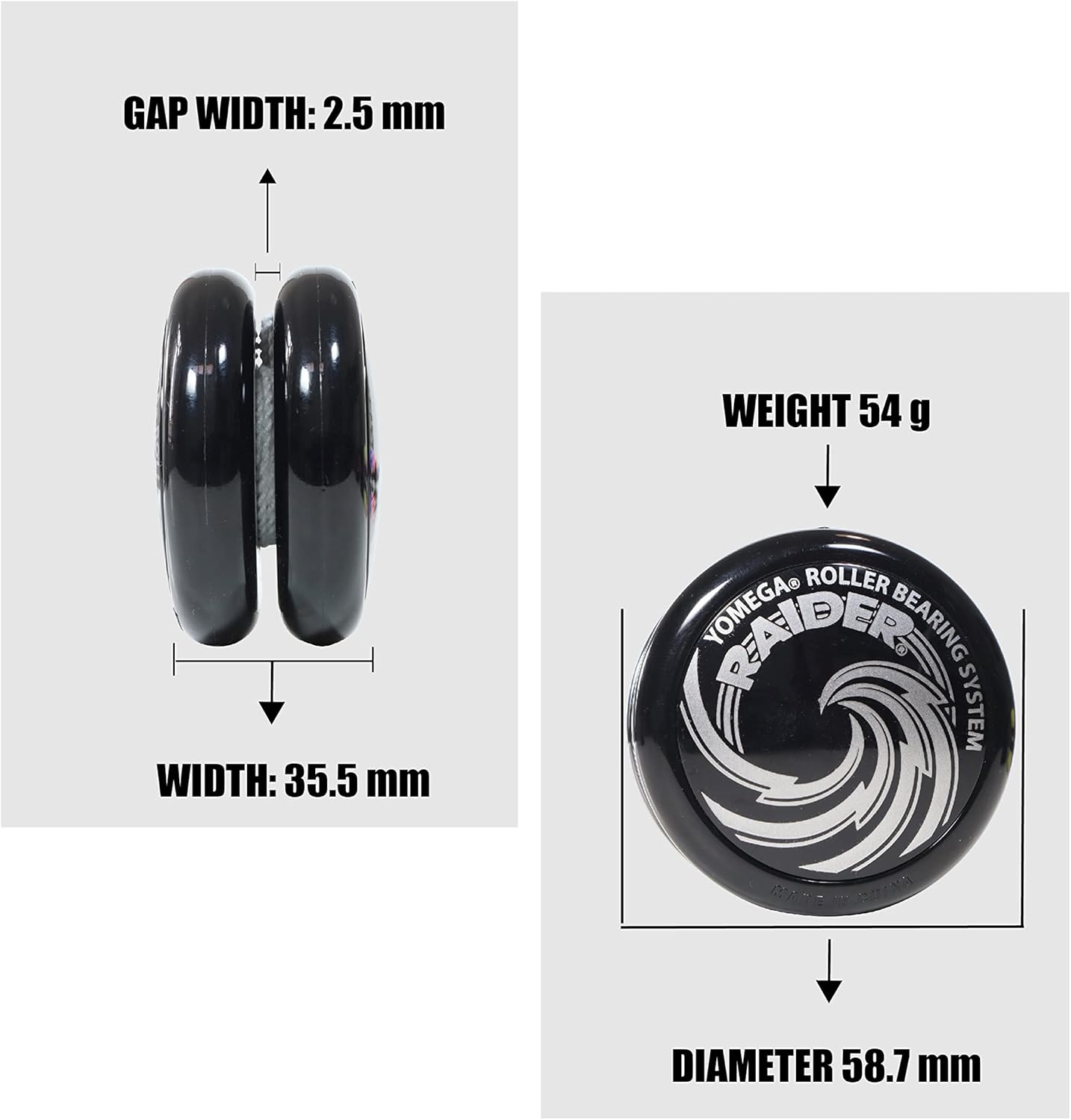 GREAT YO YO FOR KIDS moving from beginner level to mastering the more complex string tricks that require long smooth spins. With a precision roller bearing system, the Raider provides the perfect balance in response, speed, and spin time GREAT GIFT FOR THE HOLIDAYS - With our tutorials and videos, kids will have a lot of fun learning new tricks! It also improves hand/eye coordination, and sharpens balance and concentration. PRODUCT SPECIFICATIONS – Features the Starburst Return System. Weight: 54 grams. Width: 35.5mm. Gap Width: 2.5mm. Diameter: 58.7mm. Recommended for ages 8 and Up.