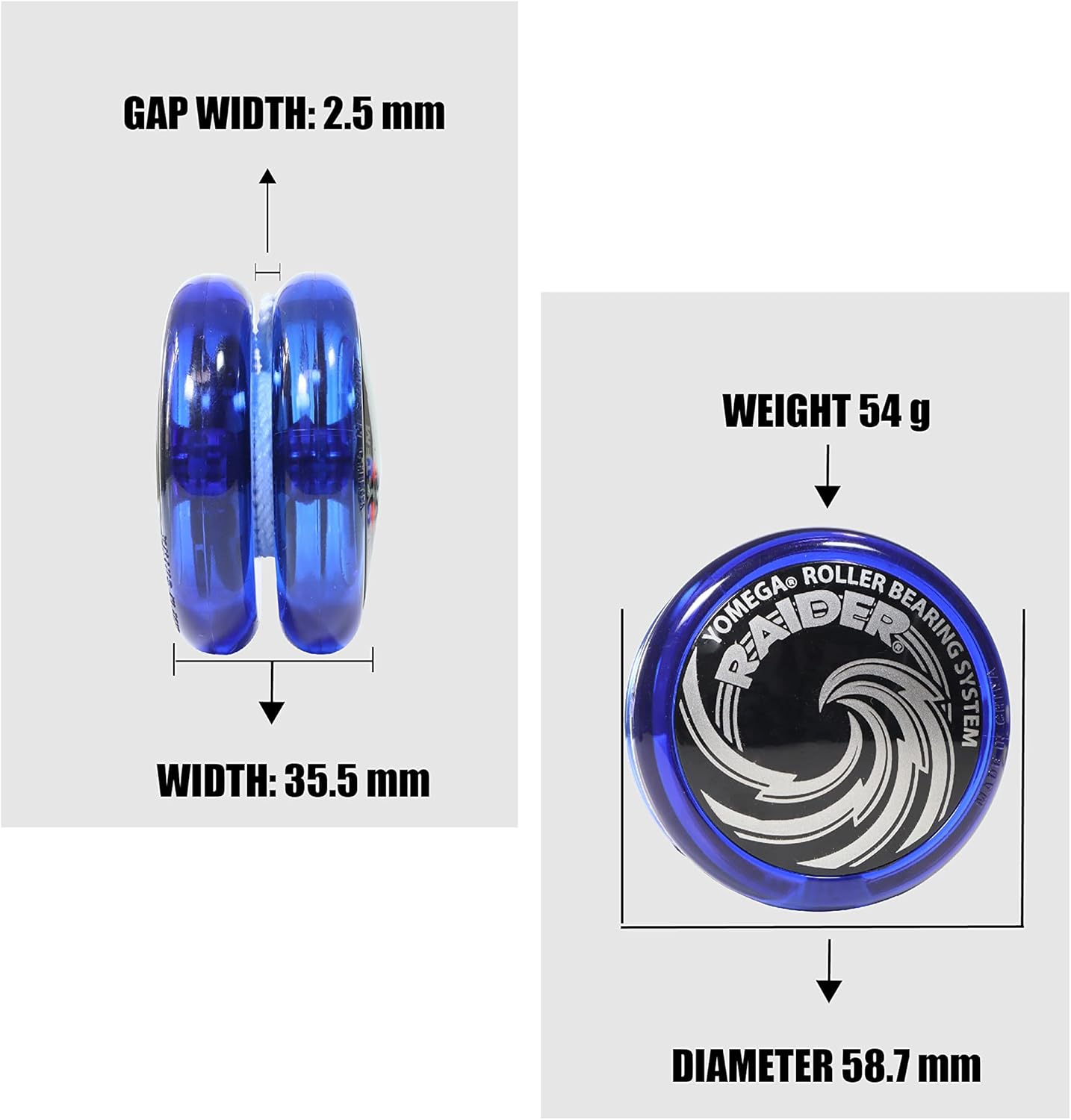 GREAT YO YO FOR KIDS moving from beginner level to mastering the more complex string tricks that require long smooth spins. With a precision roller bearing system, the Raider provides the perfect balance in response, speed, and spin time GREAT GIFT FOR THE HOLIDAYS - With our tutorials and videos, kids will have a lot of fun learning new tricks! It also improves hand/eye coordination, and sharpens balance and concentration. PRODUCT SPECIFICATIONS – Features the Starburst Return System. Weight: 54 grams. Width: 35.5mm. Gap Width: 2.5mm. Diameter: 58.7mm. Recommended for ages 8 and Up.