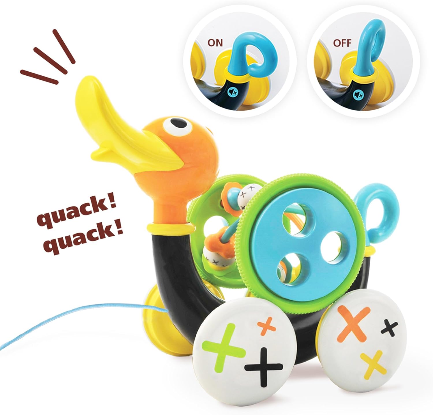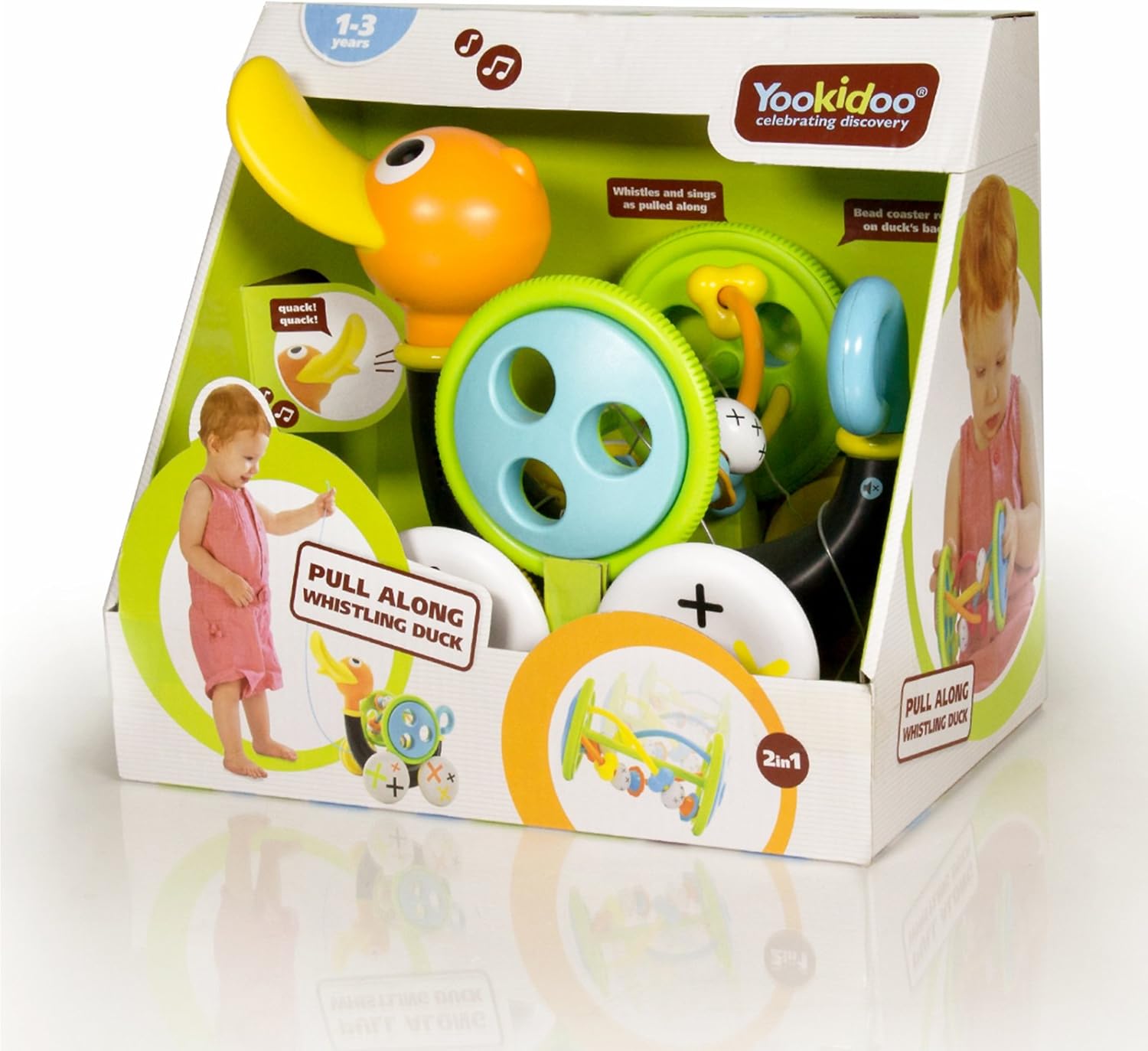 Giocattolo Interattivo: Yookidoo - Pull Along Whistling Duck è un giocattolo a forma di paperella che fischia e canta quando viene trainato, fornendo un feedback immediato e gratificante al vostro bambino. Incoraggia l'Apprendimento Attraverso il Gioco: Questo giocattolo emette suoni sincronizzati che iniziano e si interrompono automaticamente con il movimento, incoraggiando il vostro bambino a esplorare e ad interagire con l'ambiente. Componente Rimovibile per ulteriori Giochi: Il cilindro con i sonagli sulla schiena della paperella può essere rimosso e farlo rotolare separatamente per esercitare ulteriormente le abilità motorie del vostro bambino. Promuove Equilibrio e Coordinazione: Questo giocattolo stimola la mobilità, l'equilibrio e la coordinazione del vostro bambino, incoraggiandolo a muoversi e a giocare. Pile non Incluse: Questo giocattolo richiede 3 pile AA per funzionare, che non sono incluse nel pacchetto.