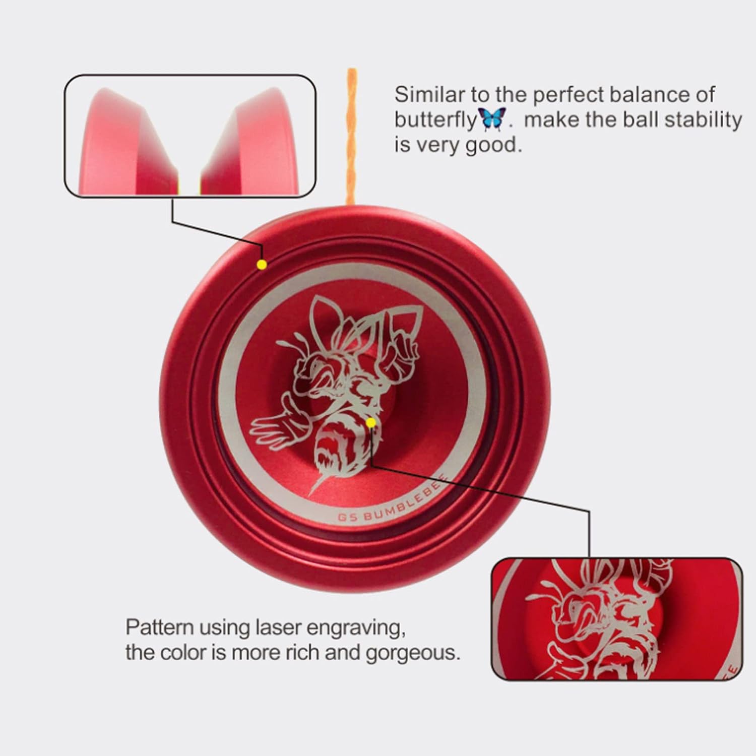 [Potente rotazione e stabilità]: questo yoyo non rispondente presenta una forma a farfalla ad alte prestazioni che offre giri lisci, un grande equilibrio e un'eccellente giocabilità a corda, rendendolo per padroneggiare trucchi avanzati e migliorare le tue abilità yoyo. [Finitura a sabbia liscia]: la superficie è finemente sabbiato per fornire una trama opaca elegante che resiste a svanire e graffi, garantendo che il tuo yoyo mantenga i suoi colori vivaci e il suo aspetto elegante anche dopo un uso prolungato. [Allenamento di abilità e abilità]: progettato per migliorare la coordinazione occhio-mano, la destrezza delle dita e la risposta cognitiva, questo yoyo è strumento ideale per costruire pazienza e perseveranza, rendendolo per lo sviluppo dei bambini e la crescita delle competenze degli adulti. [Materiali premium durevoli]: realizzato con un guscio in lega di alluminio e un cuscinetto in acciaio inossidabile, questo yoyo offre un aumento di assorbimento e impatto di shock, garantendo una durata duratura e prestazioni robuste durante il gioco intenso. [ compatto e portatile]: leggero e facile da trasportare, è una scelta per persone care, principianti e appassionati per compleanni, vacanze o viaggi, supportando il gameplay professionale in qualsiasi momento e ovunque.