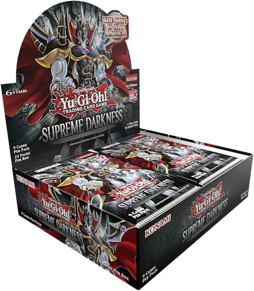 Oscurità Suprema ha 101 nuove carte in totale, incluso un nuovissimo tema mondiale da non perdere. Continua inoltre la celebrazione del 25° anniversario includendo 25 carte rare segrete di un quarto di secolo, inclusa 1 carta speciale 10 Rare segrete 14 Rare ultra 26 Super Rare 50 Comuni