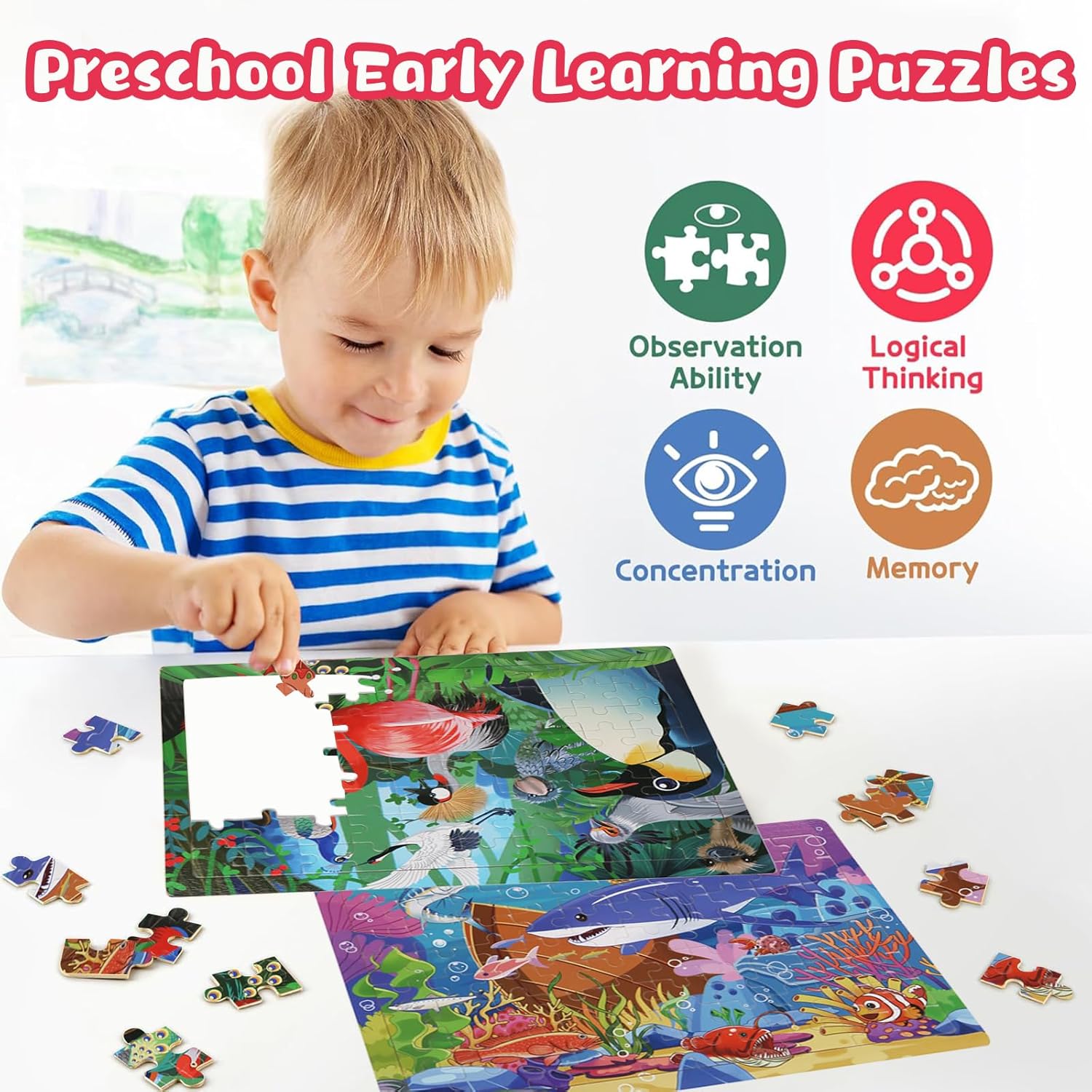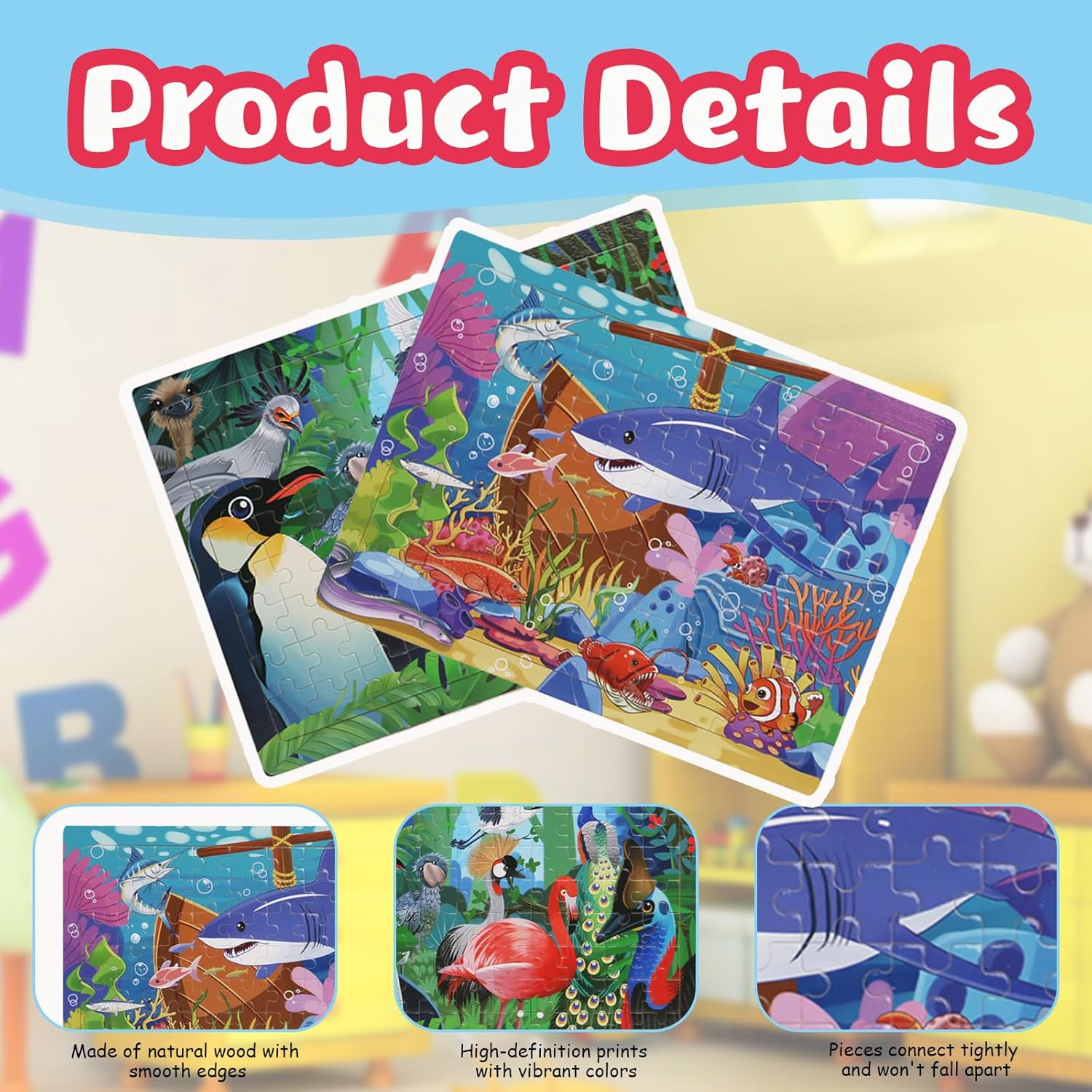 Adorabili Puzzle: Questo set di puzzle legno bambini 2 anni include due temi avventurosi, "Uccelli" e "Sottomarini". Ogni pezzo misura 30 x 22,5 x 0,5 cm, puzzle legno bambini 1 anno che lo rende una dimensione perfetta per i bambini che possono giocarci su un tavolo o sul pavimento, creando al contempo un'immagine completa e visivamente accattivante Materiali di Alta Qualità: Questopuzzle in legno per bambini è realizzato in legno naturale, preservandone la consistenza e il colore caldi e naturali. Ogni pezzo è meticolosamente lucidato per garantire la sicurezza delle mani dei bambini. puzzle bambini 4 anni struttura in legno, robusta e resistente, resiste al gioco quotidiano e non si deforma né si rompe Promuove lo Sviluppo Cognitivo:I bambini imparano a riconoscere forme, colori e animali attraverso l'osservazione, il tatto e l'abbinamento. I puzzle 3 anni promuovono in modo completo lo sviluppo cognitivo e le capacità mentali dei bambini, migliorando la coordinazione occhio-mano e favorendo lo sviluppo cognitivo e mentale Il Regalo Perfetto: Che si tratti di festeggiare il compleanno di un bambino, Natale, Capodanno, Pasqua o come sorpresa speciale per la Festa dei Bambini o per la laurea all'asilo, questo puzzle 2 anni per bambini è il regalo perfetto. Unisce perfettamente divertimento e valore educativo,puzzle bambini offrendo profondi benefici per il loro sviluppo a lungo termine Versatile: Questo puzzle 4 anni è perfetto per bambini dai 3 ai 6 anni. A casa, all'asilo o in viaggio, questo regalo bimbo 3 anni senza componenti elettronici è un ottimo modo per calmare i bambini e aiutarli a passare il tempo durante i lunghi viaggi. Permette loro di divertirsi con attività pratiche e di riflessione in movimento, evitando il sovraccarico dello schermo