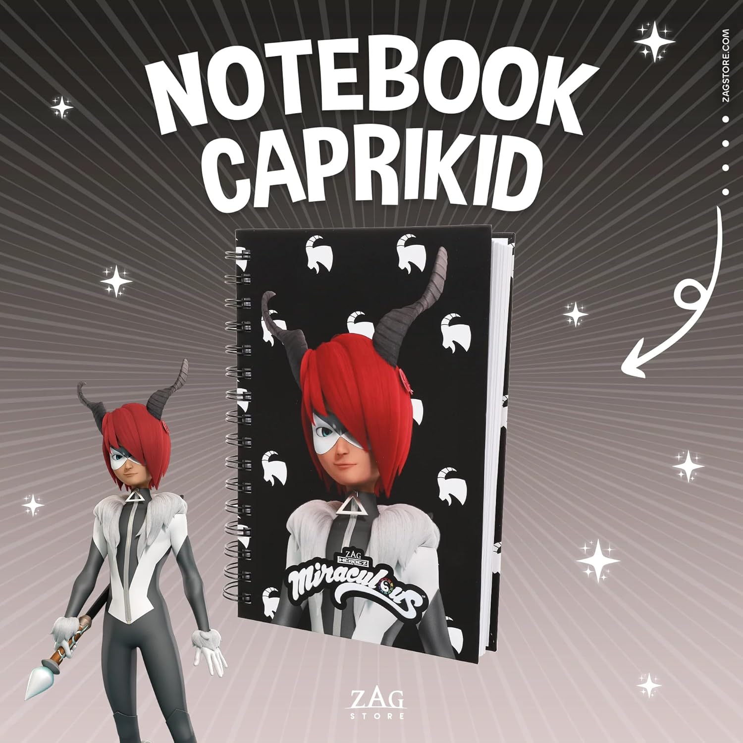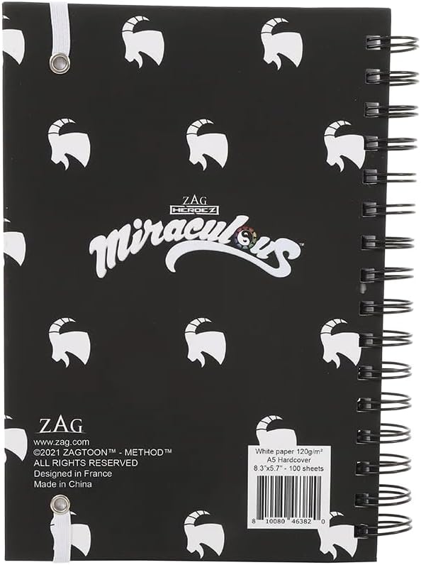 Prodotto ufficiale Miraculous from ZAG STORE Copertina rigida, rilegatura a spirale 200 pagine (100 fogli) Foglie bianche, 120 g/m² Foglie a righe