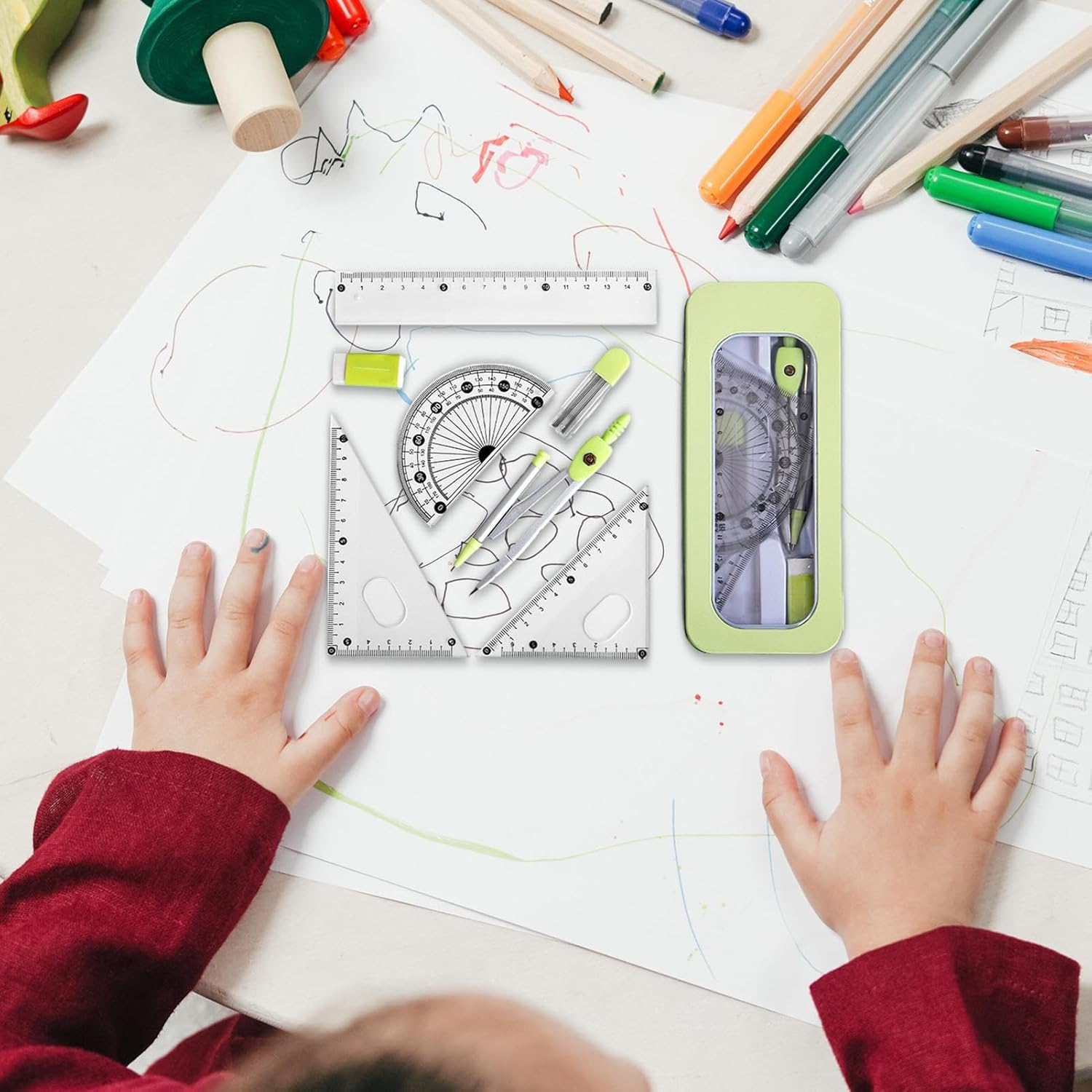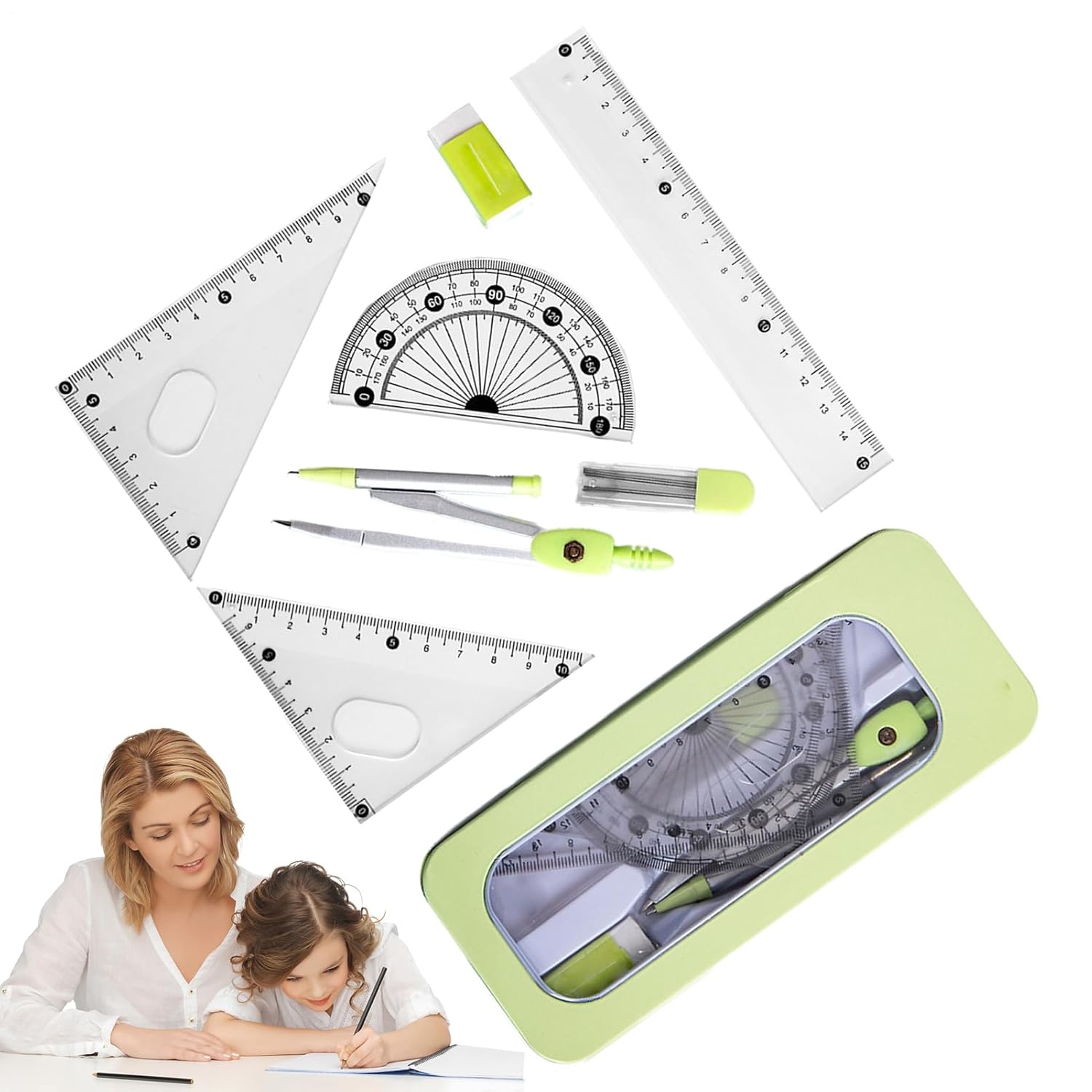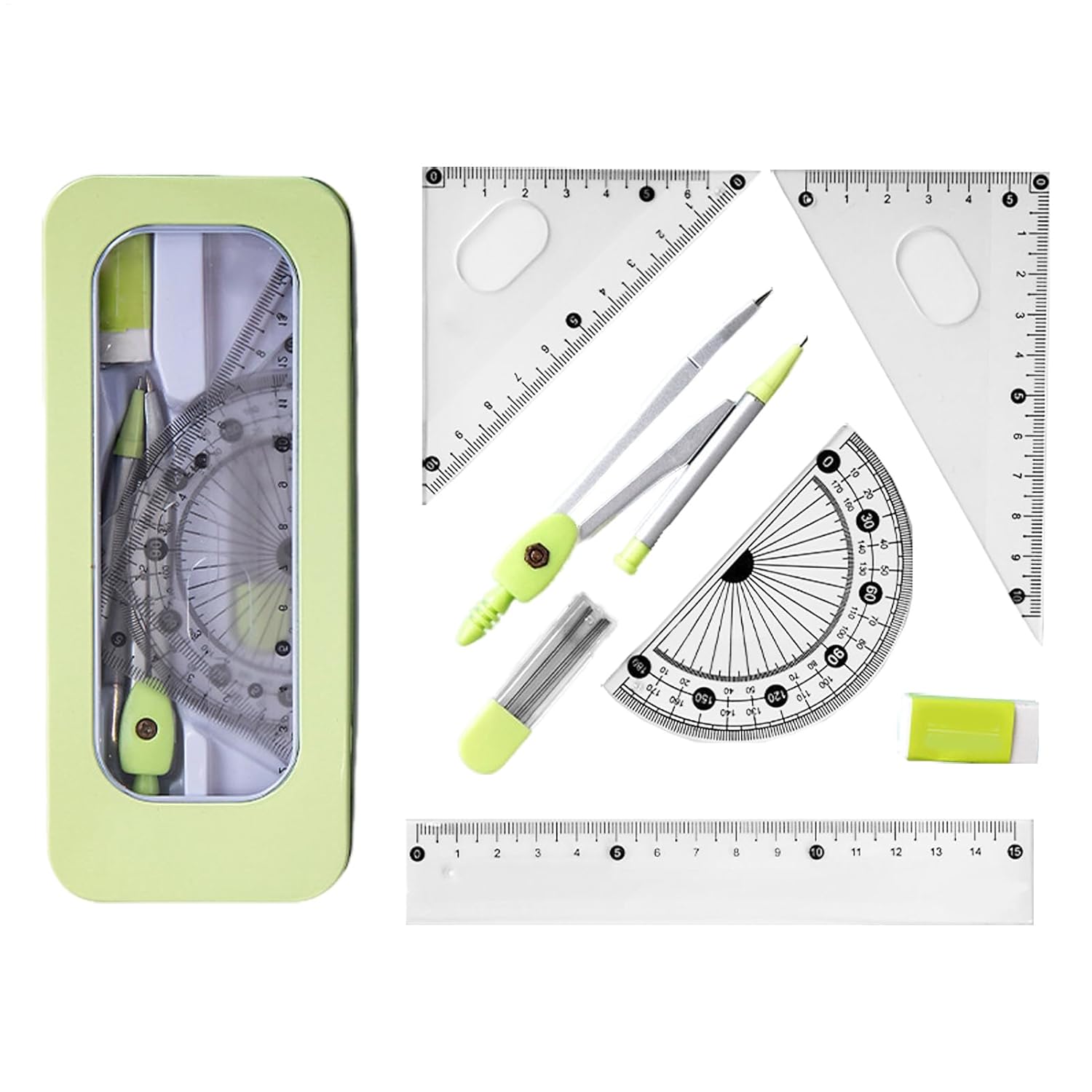 Materiale stabile: il nostro set di righelli è realizzato in resistente acciaio inossidabile e materiale PP, fornendo strumento di misurazione perfetto e di lunga durata. La sua struttura robusta garantisce la sicurezza 'utente e un utilizzo affidabile Comodo da usare: i numeri su questo set di righelli sono chiari, il che li rende facili da identificare. Questa funzionalità garantisce un'esperienza di misurazione con letture rapide e precise Comodo da trasportare: prova la comodità di un set di righelli portatile con il nostro design elegante e compatto. Dotato di una robusta scatola protettiva in metallo che impedisce la caduta degli oggetti, è perfetto per studenti e professionisti Ampie applicazioni: con il suo design facile da usare, questo set di righelli è perfetto per bambini, studenti e le loro varie esigenze di disegno. Un must per aule e progetti artistici Regalo perfetto: questo set di righelli, progettato per i bambini, è un regalo ideale per il compleanno e le vacanze, incoraggiando la creatività e la precisione nei progetti scolastici e nell'artigianato
