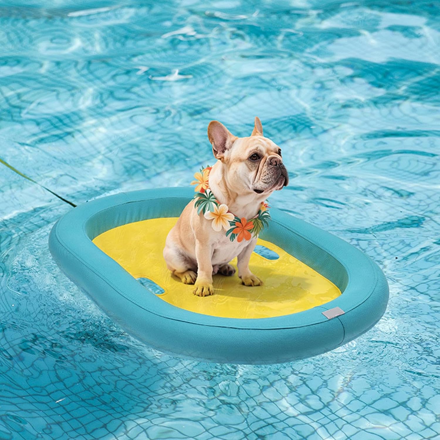 Tessuto impermeabile: Prodotto con poliestere ad alta densità, il salvagente per cani offre qualità anti-penetrazione e resistenza agli urti, mantenendo l'integrità strutturale attraverso numerosi utilizzi in acqua dolce o salata con protezione ottimale per zampe Stabilità Durante il Gioco: di ancoraggio integrato attraverso il foro permette collegamento sicuro a scale piscina o oggetti fissi, mantenendo il gonfiabile sempre a portata durante le attività Storage versatile: di piegatura a 3 step che trasforma il guscio in formato tascabile. Il cuscino in cotone lavabile si rimuove in pochi secondi per combinazioni d'uso flessibili in piscina o durante gli spostamenti Piattaforma Ampia e Stabile: Design spazioso ed equilibrato che garantisce sicurezza durante il galleggiamento, adatto a cani di tutte le dimensioni. Promuove il movimento naturale in acqua con stabilità ottimale per divertimento acquatico senza restrizioni Adattabilità Completa: antisdrucciolo specializzato mantiene stabilità in tutte le condizioni d'uso. Formato ergonomico si adatta a diverse taglie canine, con maneggevolezza ottimale per sessioni di gioco prolungate.