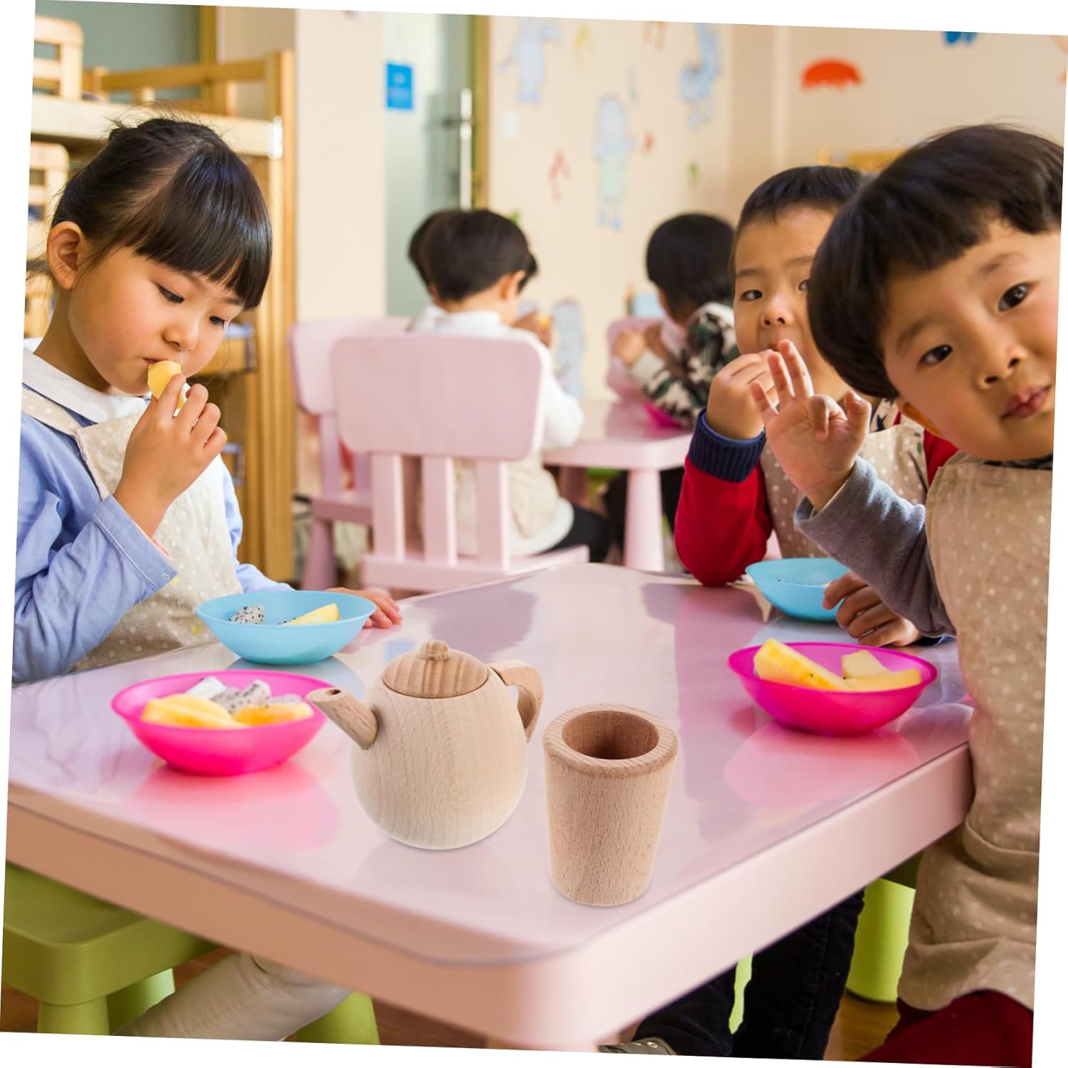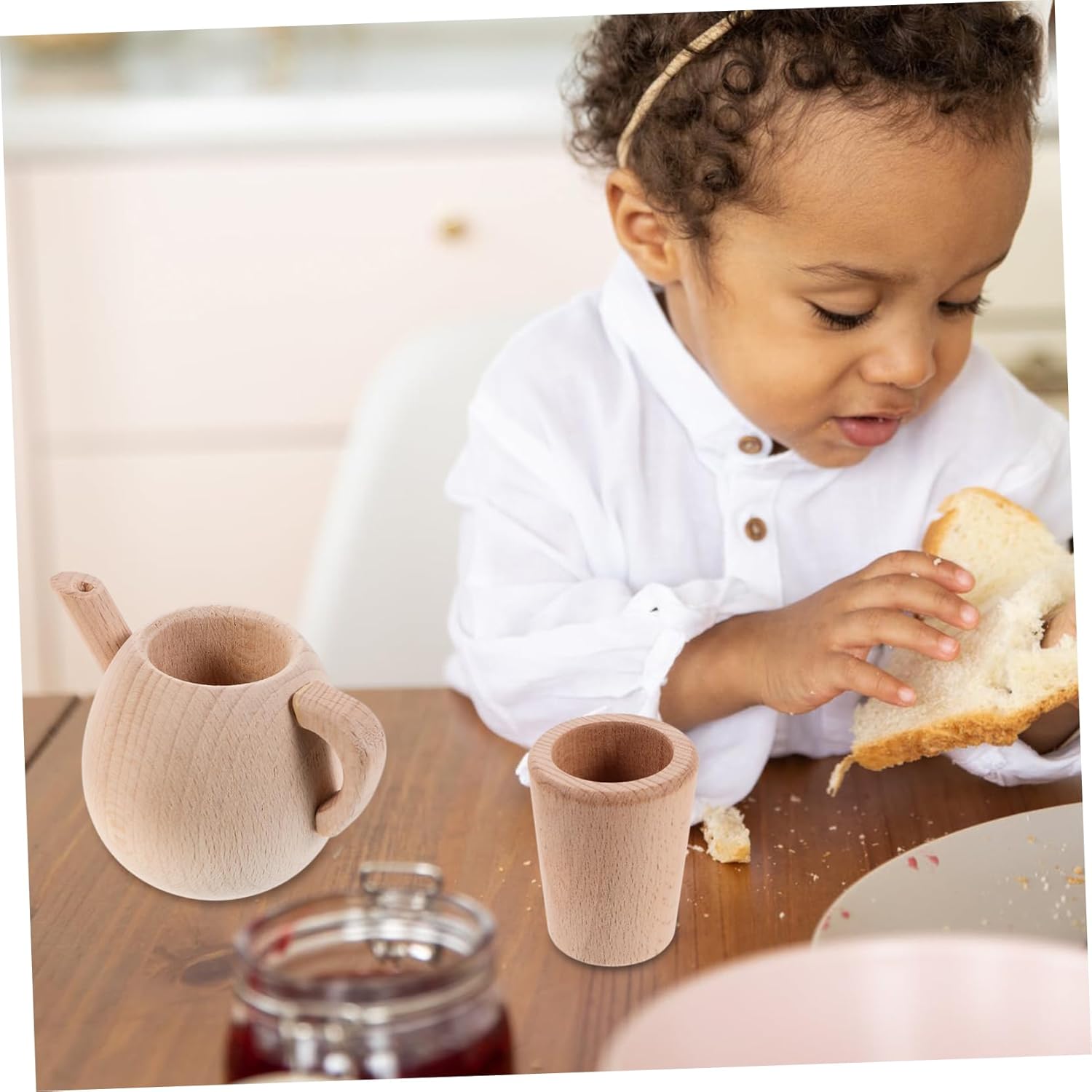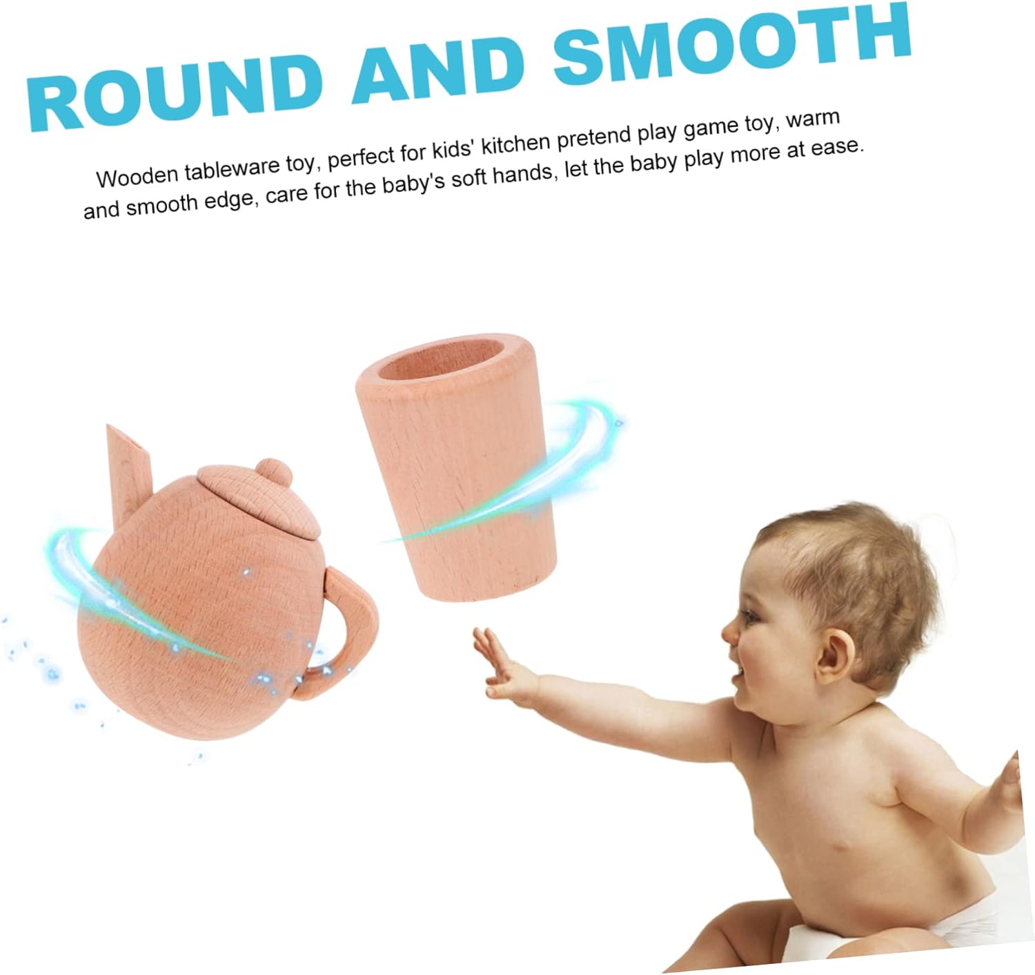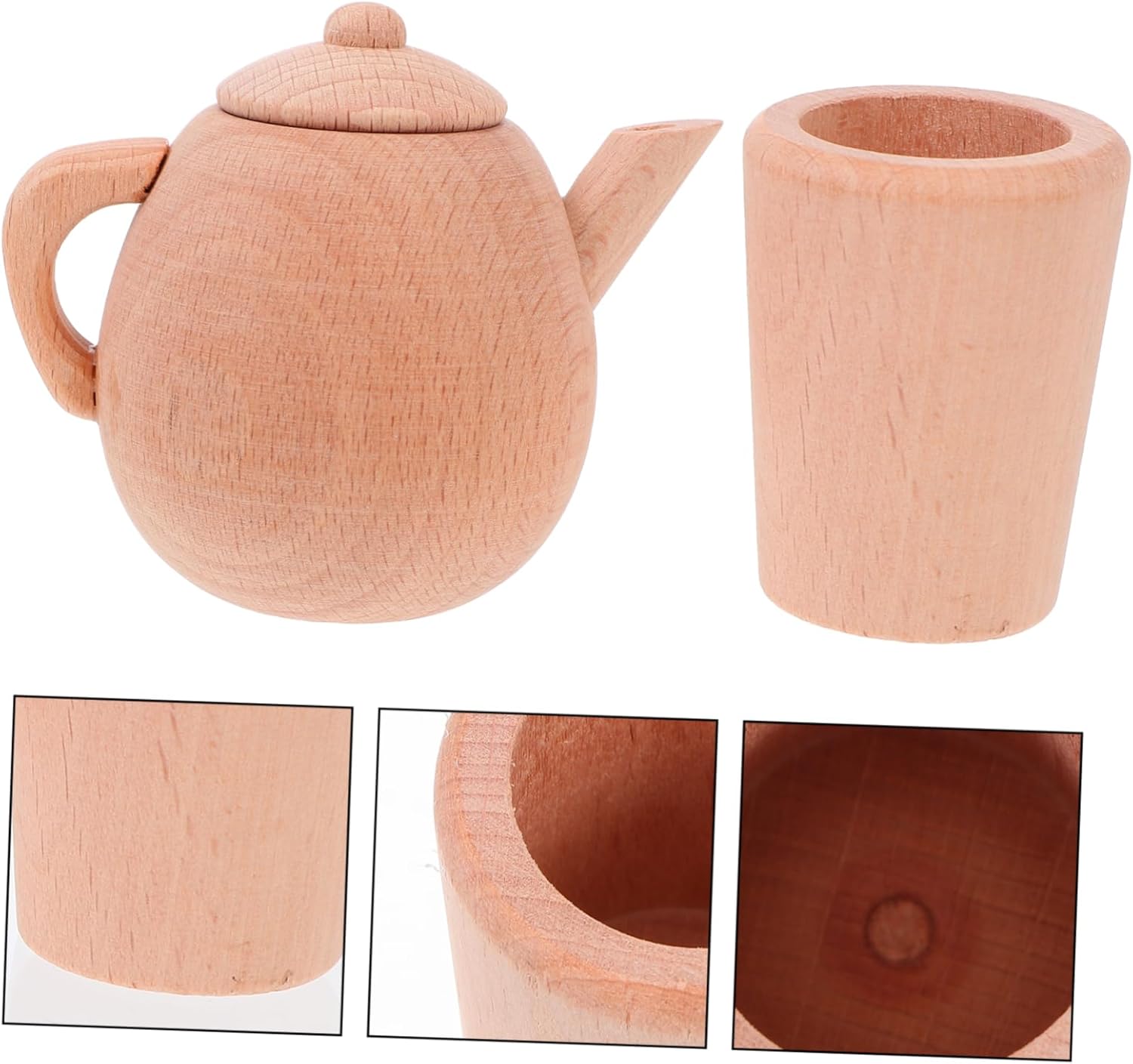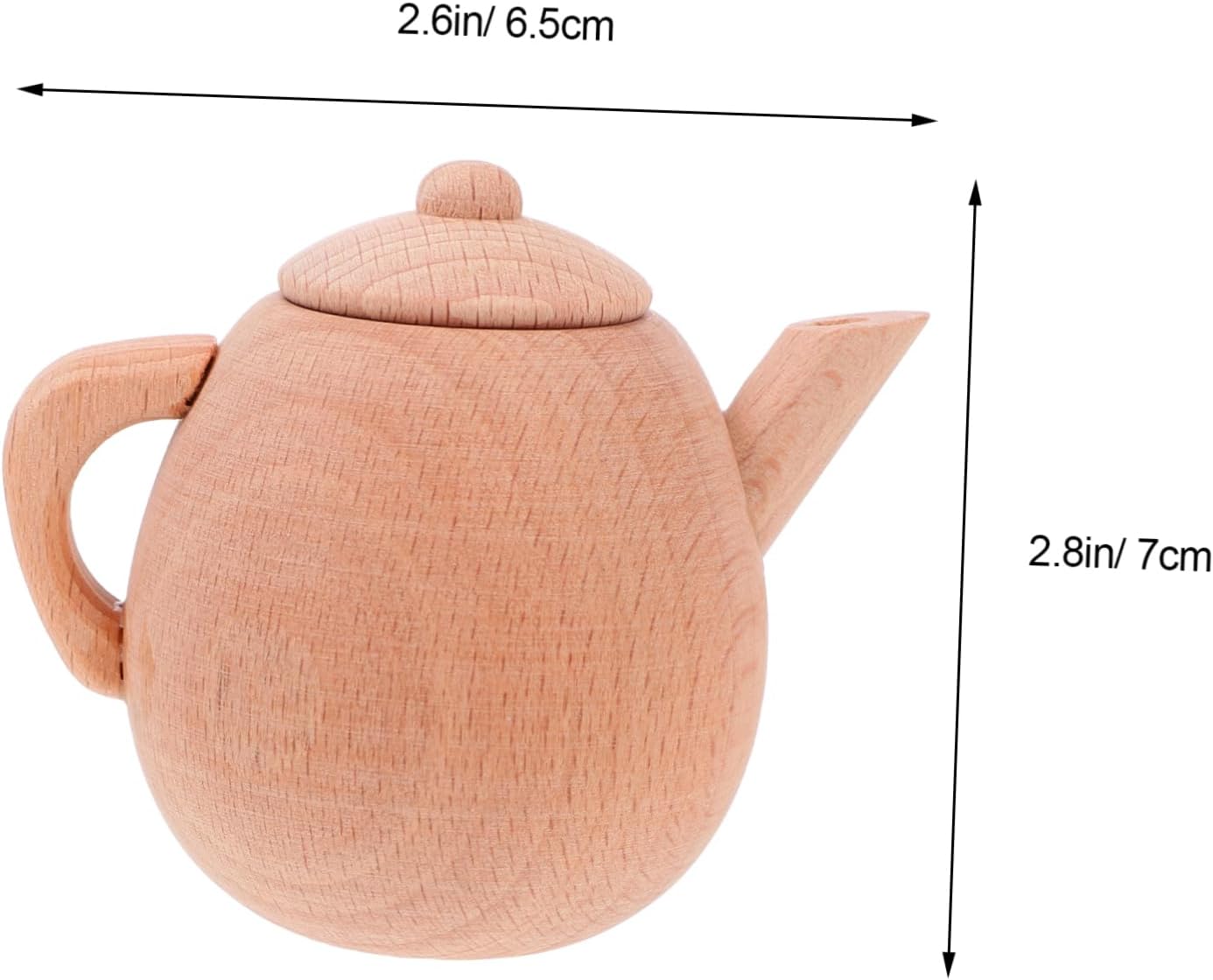 Gioca agli accessori da cucina: giocattolo da tavola in legno, perfetto per i bambini, giocattolo finto. Piccolo giocattolo per teiera: teiera con manico in legno, facile da trasportare, molto pratico. Giocattoli per tea party per bambini: fingi di recitare una scena di vita simulata, sviluppando completamente l'abilità manipolativa. Giocattoli per bambini: legno trattato con bordi arrotondati. Stoviglie in legno: allena la capacità lavorativa dei bambini e la loro capacità di prendersi cura di sé.
