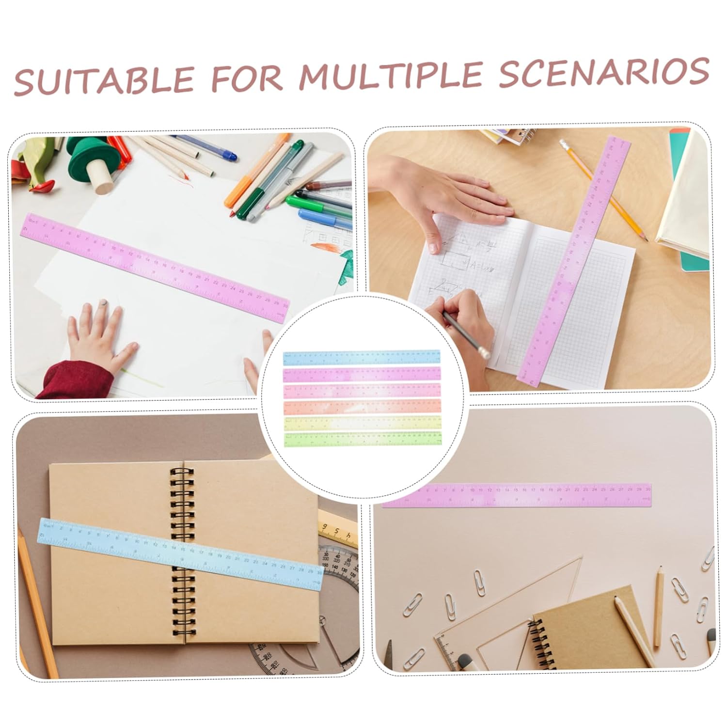 Righello colorato: dimensioni adeguate, leggero e portatile, i righelli di plastica sono facili da trasportare, adatti a diversi luoghi, righello scolastico Righello metrico trasparente: i righelli trasparenti sono facili da leggere, con pollici e centimetri, pratici e comodi da usare, righelli colorati Righelli graduati: realizzati in materiale plastico, i righelli di misurazione per sono eccellenti e robusti, sicuri e pratici, utili e riutilizzabili, righello con pollici e centimetri Righello per studenti: i righelli in plastica trasparente sono facili da leggere, dal design utile, con pollici e centimetri, comodi e pratici da usare, righello trasparente Righelli trasparenti: utili e multiuso, adatti per misurazioni, studenti, , ragazzi, adatti per scuola, ufficio, aula, righello trasparente
