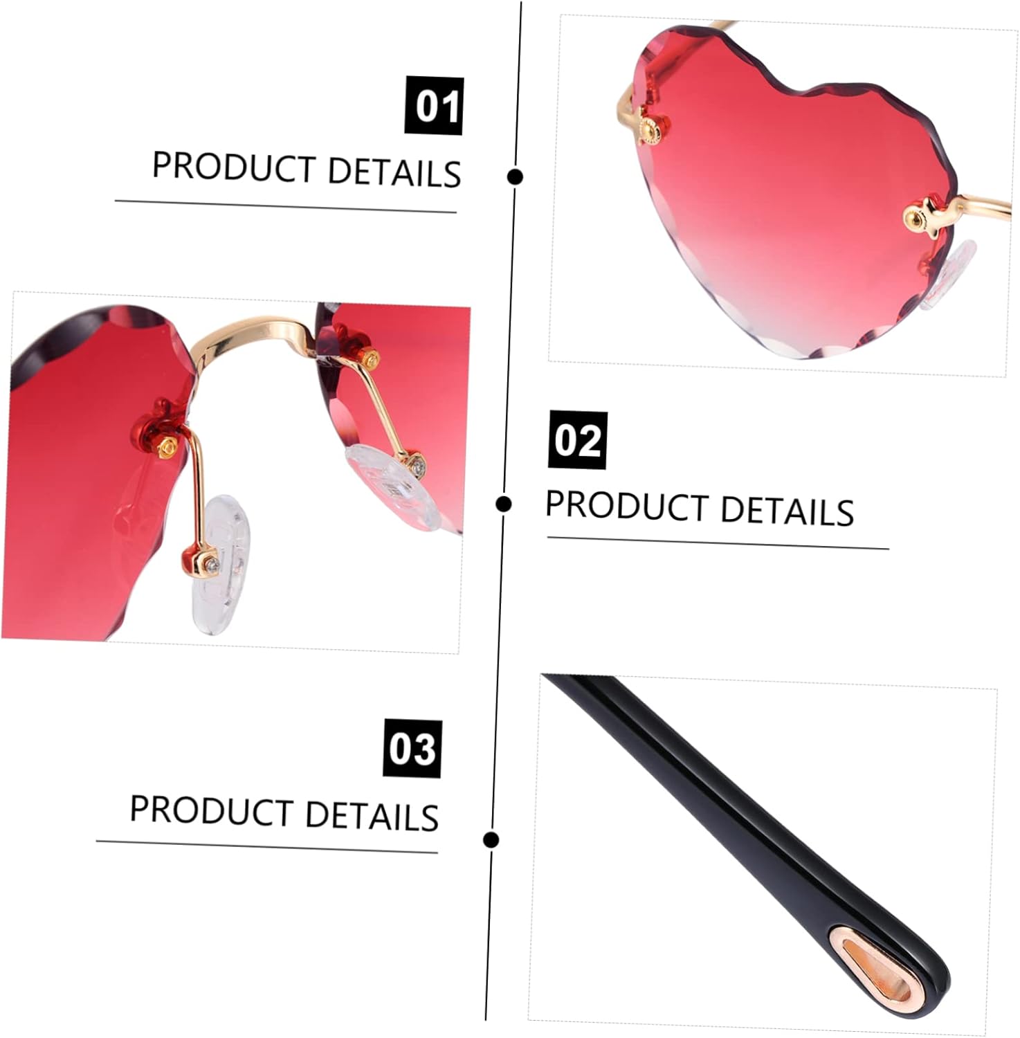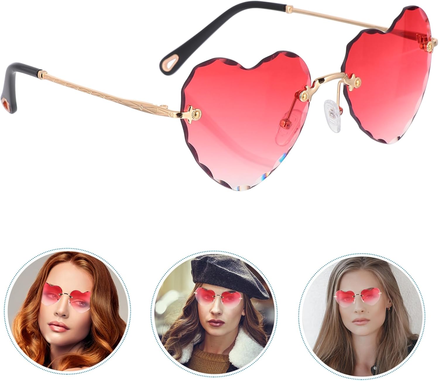 Occhiali da sole neri a forma di cuore: grazioso design a forma di cuore, facili da aggiungere all'atmosfera da festa, occhiali da sole a forma di cuore Occhiali da sole a forma di cuore rosso: comodi naselli che avvolgono il naso senza lasciare traccia, occhiali da sole a forma di cuore Occhiali a forma di cuore: leggeri e comodi da trasportare, comodi da indossare, misura adatta alla maggior delle persone, occhiali da sole senza montatura a forma di cuore. Occhiali da sole a forma di cuore: adatti per molte occasioni come natale, feste cosplay, ecc., occhiali a forma di cuore Occhiali da sole a forma di cuore per donna: forma a cuore, stile, forma unica, occhiali da sole a forma di cuore