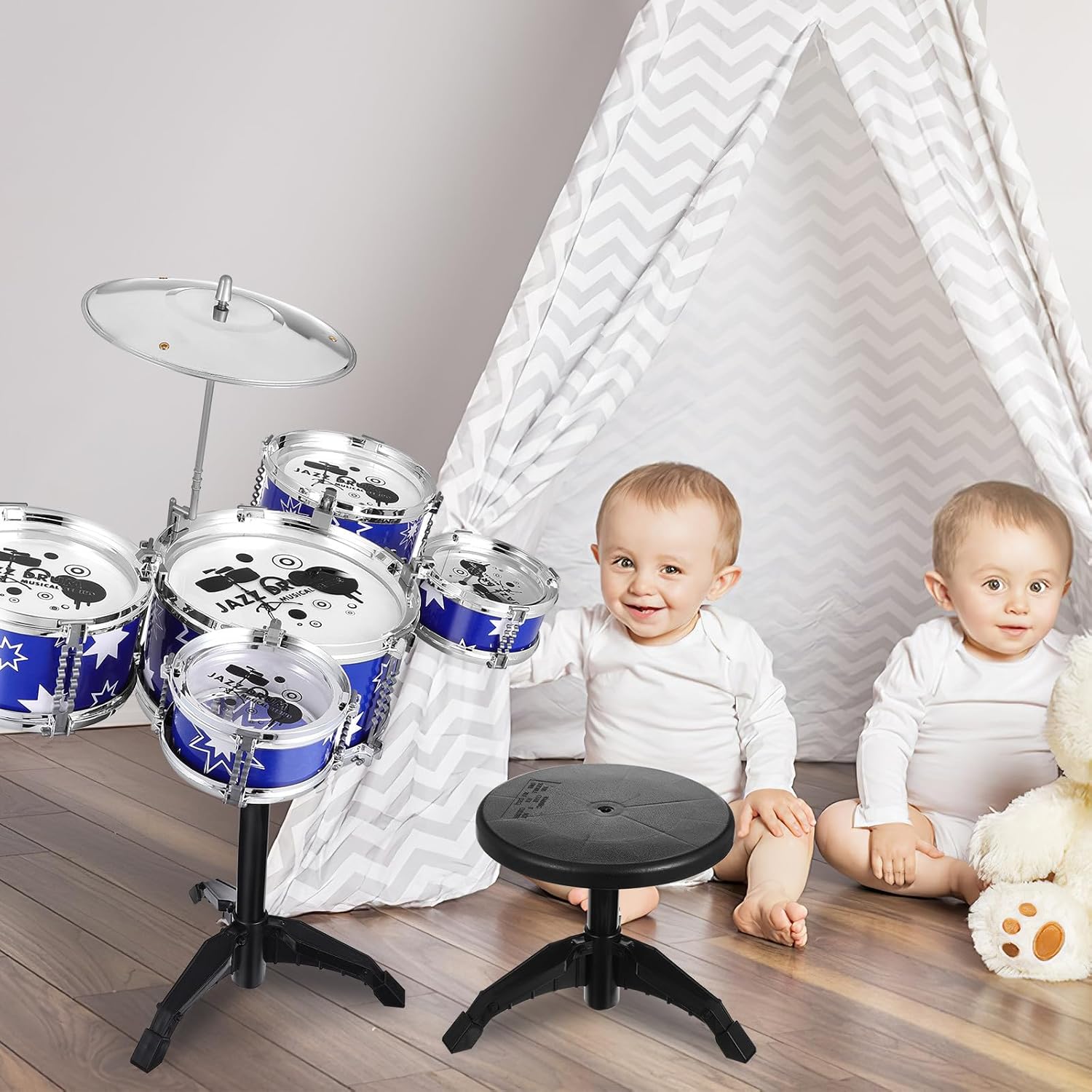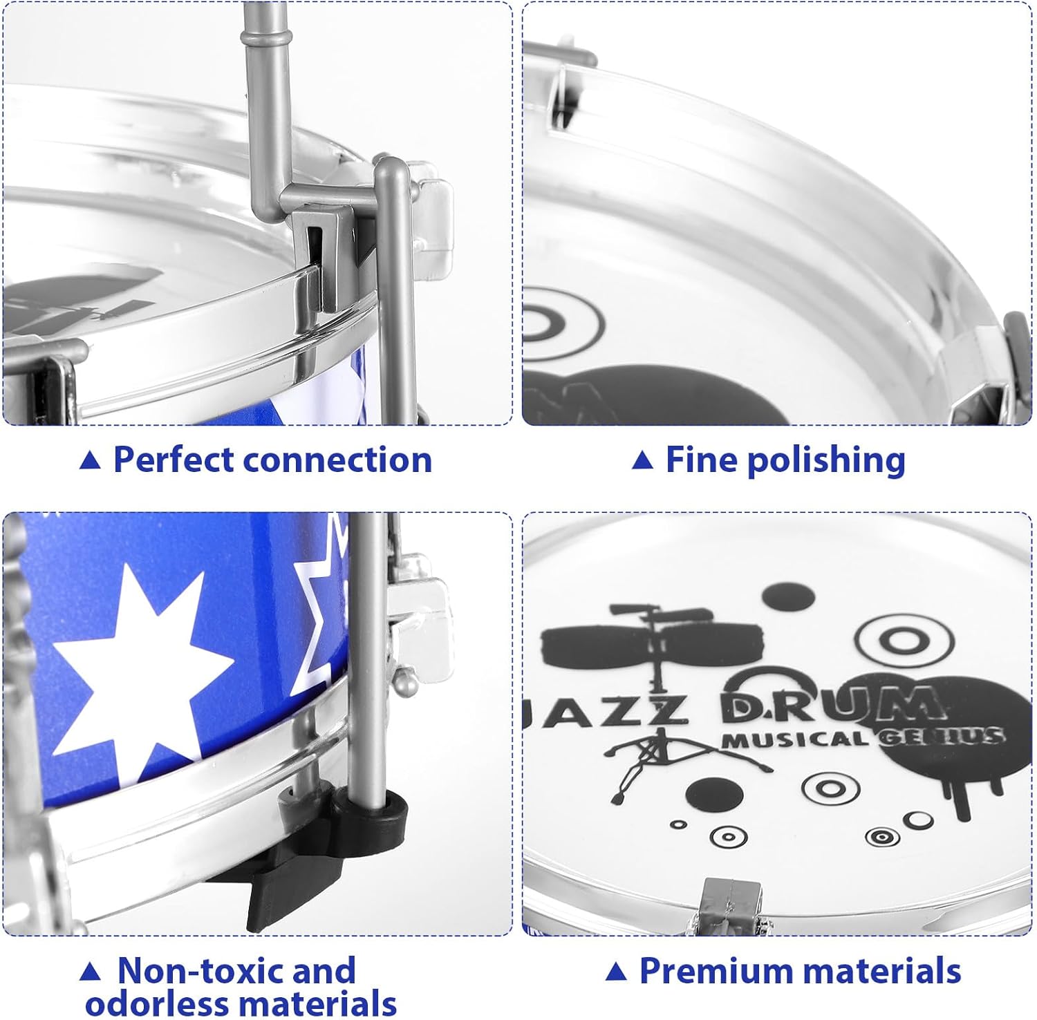 【Set di batteria per bambini vivace】Il nostro set di batteria per bambini è l'introduzione perfetta alla musica per i più piccoli, pensato per ispirare la creatività e l'amore per il ritmo. I suoi colori vivaci e il design accattivante lo rendono una scelta invitante per i musicisti desiderosi di esplorare il suono. 【Materiali adatti ai bambini】Realizzata in plastica resistente, questa batteria per bambini è progettata per resistere al gioco energico dei più piccoli. La sua struttura leggera garantisce una facile maneggevolezza, consentendo ai bambini di muoversi e suonare senza difficoltà, promuovendo al contempo un'esplorazione musicale sicura. 【Attività che rafforza la fiducia in se stessi】Esercitandosi e suonando la batteria per bambini da 1 a 3 anni, i bambini non solo migliorano le loro abilità musicali, ma rafforzano anche l'autostima e la fiducia nelle proprie capacità. Questa esperienza giocosa alimenta un amore duraturo per la musica, favorendo al contempo la crescita personale. 【Dimensioni compatte】La batteria per bambini misura circa 52,00 x 25,00 x 61,00 cm (20,44 x 9,82 x 23,97 pollici), il che la rende la dimensione ideale per far suonare comodamente i bambini piccoli. Inoltre, lo sgabello incluso misura 21,50 x 23,00 x 0,00 cm (8,45 x 9,04 x 0,00 pollici), offrendo un'altezza di seduta perfetta per i batteristi. 【Esperienza musicale completa】Questa batteria per bambini include tutto ciò di cui il tuo bambino ha bisogno per iniziare la sua esperienza musicale, con tamburelli, un piatto, bacchette e un comodo sgabello. Con tutti i componenti inclusi, i bambini possono immergersi subito nel divertimento di fare musica.