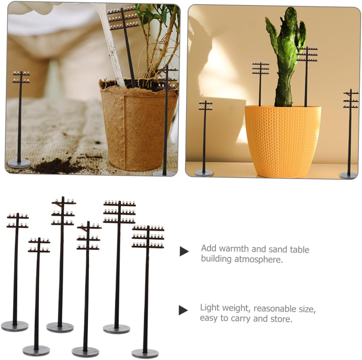 Modelli di pali del telegrafo - modelli leggeri e compatti, facili da usare e comodi da riporre, pratici e decorativi, modelli di pali del telegrafo finti Modelli di pali del telegrafo stradale - i piccoli pali del telegrafo sono adatti agli amanti del micro paesaggio e possono decorare il tuo micro paesaggio. Modelli di pali telegrafici per scenari Palo telefonico in miniatura - il colore brillante è molto accattivante e attraente, leggero, di piccole dimensioni, facile da trasportare e riporre, palo stradale Palo telegrafico in miniatura - adatto per sandbox, ottima decorazione per la tua sandbox, per creare scene ferroviarie colorate, modellini di pali telefonici Modello di palo telegrafico in miniatura - puoi usarlo per decorare micro paesaggi, case delle bambole, divertenti e interessanti Usa artigianato e modelli di paesaggi ferroviari