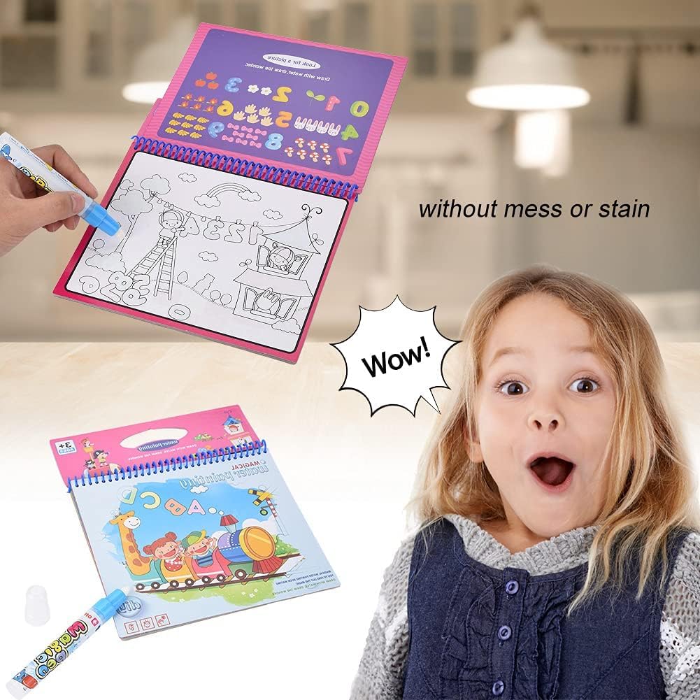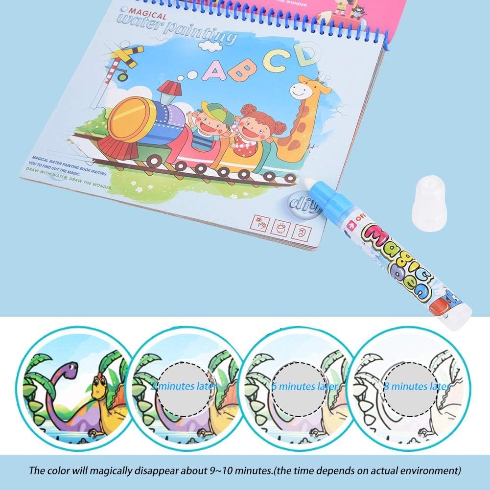 Thema-activiteitenboek: Cartoon Farm Animals Dinosaur Vehicle thema kleurboeken om kinderen aan te moedigen om de basisperceptie van lezen en schrijven, creatie, verbeelding en visuele discriminatie te ontwikkelen. Ideale cadeauset: waterkleuring doodle boek is het perfecte voor kinderen van 3 jaar en ouder om thuis of onderweg te vermaken, om te genieten van de vroege opvoeding door ouder-kind tijd. Eenvoudig te gebruiken: De grote waterpen is eenvoudig te vullen en te gebruiken en is ontworpen met groeven, zodat je kleintje gemakkelijk vast kan pakken. Het spiraalgebonden formaat van de doodle boards maakt het gemakkelijk om mee te nemen. Veilig en duurzaam: unieke technologie en niet-giftig van wateronthullen leuke boeken voor kinderen om te genieten van tekenen zonder inkt, waardoor rommel vrij en veiliger wordt. Herbruikbaar: pagina's die zich vullen met levendige kleuren als ze nat zijn en vanzelf verdwijnen na 5-10 minuten later drogen, kinderen kunnen tekenen en opnieuw spelen. Het herbruikbare leuke watertekenboek is geen eenmalig item.