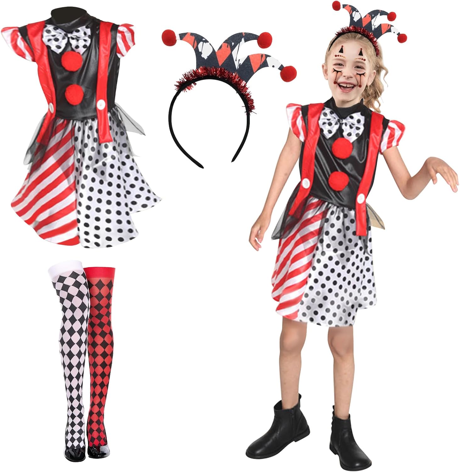 Descrizione prodotto Trasforma la tua piccola in un'iconica studentessa dark con questo autentico costume da Mercoledì Addams. Perfetto per Halloween, Carnevale o feste in maschera, questo set completo include tutto il necessario per ricreare il look caratteristico del personaggio. Il costume comprende un elegante vestito nero con colletto bianco in stile uniforme scolastica, una parrucca nera con le iconiche trecce, e un paio di calze coordinate per completare il look. Realizzato pensando al comfort dei bambini, il costume è disponibile per età dai 3 agli 8 anni. Il vestito presenta una vestibilità comoda che permette libertà di movimento durante le attività festive. La parrucca è facile da indossare e mantiene la sua forma durante l'uso. Ideale per le piccole fan della Famiglia Addams che vogliono incarnare lo spirito misterioso e affascinante di questo amato personaggio. Un costume perfetto per far risaltare la tua bambina in qualsiasi evento a tema. Avviso di sicurezza Leggere sul retro della confezione