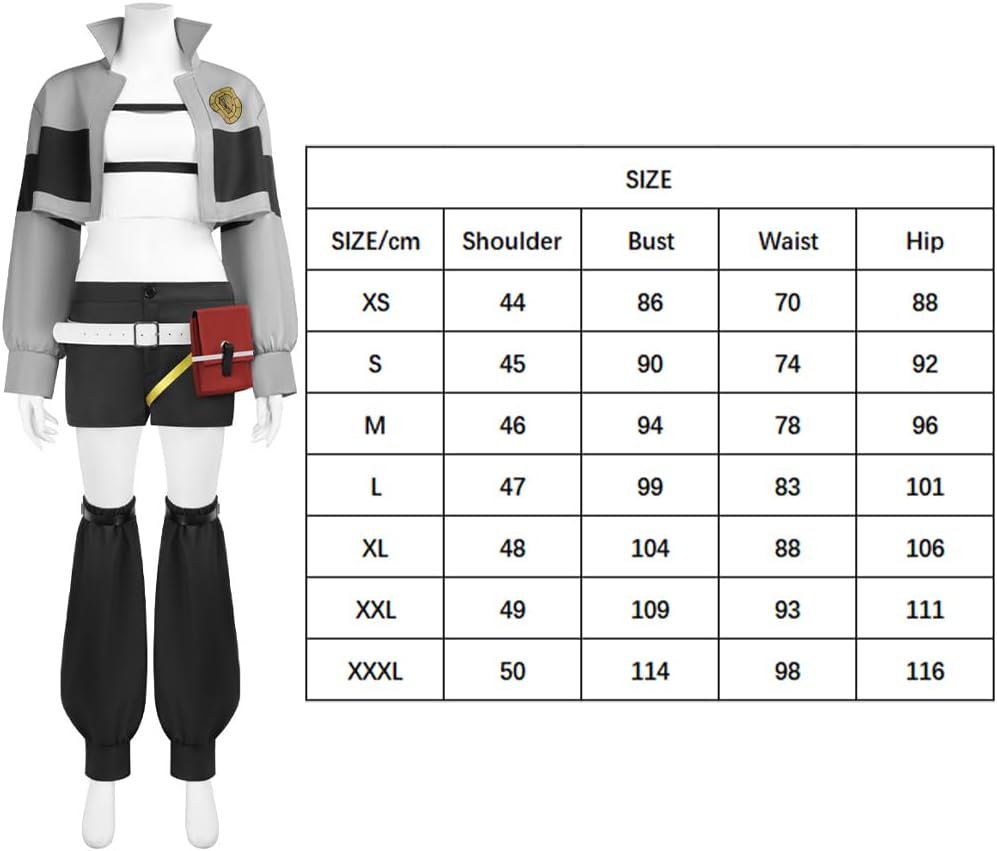 Benvenuti nel negozio di merchandising anime di pusenele per te! Entra nel mondo del cosplay anime con il nostro set di costumi Riyo Reaper! Questo vestito cosplay Riyo Reaper è progettato per i veri fan che vogliono dare vita al personaggio. Nome del prodotto: Riyo Reaper Cosplay Costume Materiale: poliestere. Taglia: XS/S/M/L/XL/XXL/3XL. Contenuto della confezione: giacca corta, corsetto, pantaloncini, portafoglio, cinghia, cintura, leggings, anelli per le gambe Adatto per: donne adulte, fan degli anime, cosplayer. Scene adatte: convegni anime, eventi cosplay, Halloween, carnevale, feste in maschera, convenzioni di fumetti, ecc. Precauzioni: 1. I vestiti scuri possono avere una leggera perdita di colore al primo lavaggio, si consiglia di lavarli separatamente. 2. La parrucca può essere pressurizzata e spettinata durante il trasporto e può essere ripristinata dopo la pettinatura. 3. Questo prodotto è destinato a partire dai 14 anni di età.