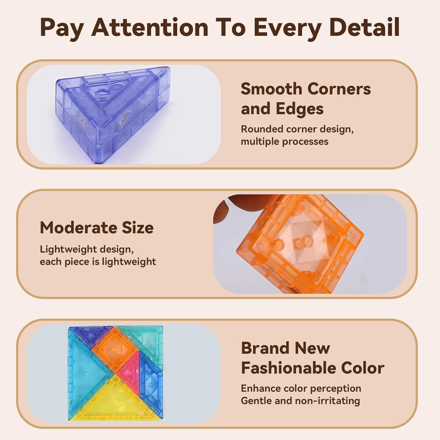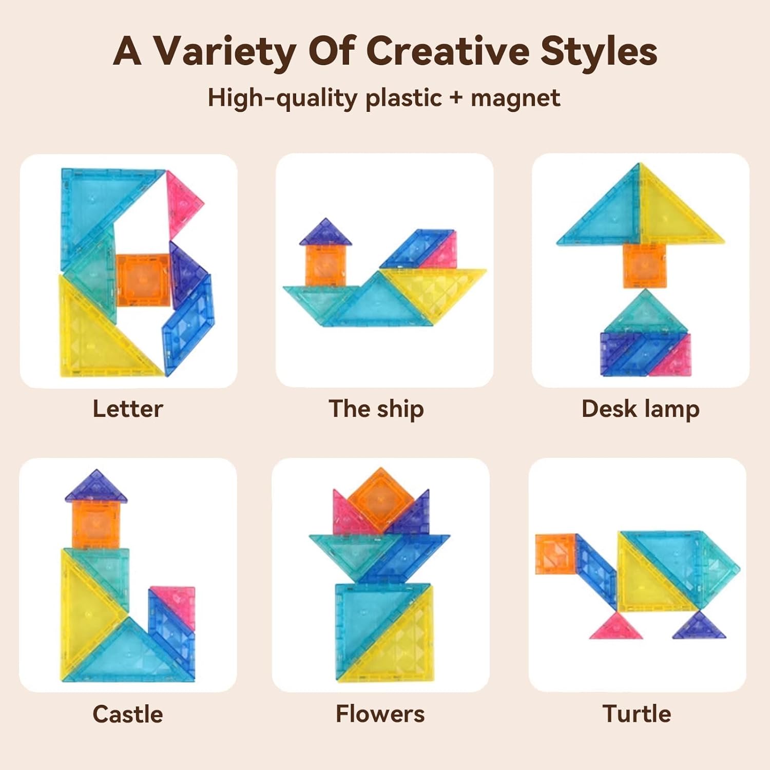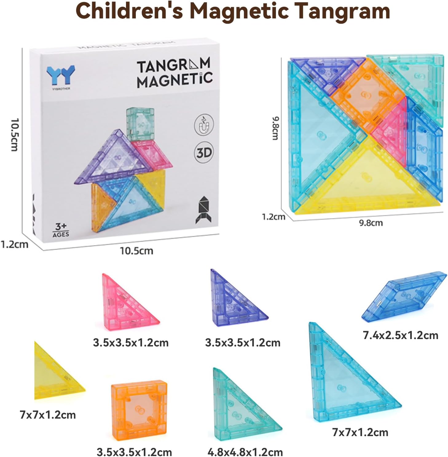Materiale Sicuro: Questo tangram bambini è realizzato in plastica di alta qualità, sicura ed ecologica, inodore, atossica e innocua. Le superfici di tutti i componenti di questo tangram gadget compleanno sono arrotondate e levigate, senza spigoli e angoli taglienti, e non graffiano le delicate mani dei bambini, offrendo loro un'esperienza di gioco sicura e senza preoccupazioni, così che i genitori possano stare tranquilli. Connessione Magnetica: L'esclusivo design magnetico è il punto di forza di questo tangram puzzle. Grazie alla connessione magnetica, le varie piastrine colorate possono essere facilmente unite tra loro, e i bambini non devono allinearle senza sforzo durante il gioco, rendendolo più fluido. Questo tangram magnetico migliora notevolmente la praticità e il divertimento del gioco, e permette ai bambini di godersi la gioia di un puzzle facile. Gameplay Ricco: Questo puzzle bambini contiene 7 piccole piastrine colorate, con colori vivaci e un aspetto accattivante. Il gameplay spazia dal semplice al complesso e può creare una varietà di forme e stili. Quando i bambini giocano con questo tangram plastica, non solo possono dare libero sfogo alla loro creatività, ma stimolano anche efficacemente l'immaginazione spaziale. Portatile e Facile da Usare: Questo tangram bambini misura circa 9,8×9,8×1,2 cm, è piccolo e raffinato, e facile da afferrare per i bambini. Che si tratti di tempo libero a casa, in viaggio o in vacanza, è facile da trasportare e riporre. Puoi iniziare giochi educativi sempre e ovunque. Questo giochi montessori rende il tempo libero dei bambini pieno di divertimento. Regalo Perfetto: Essendo un giocattolo sia interessante che educativo, questo tangram magnetico può coltivare efficacemente la curiosità, la pazienza e la coordinazione occhio-mano dei bambini. Che si tratti di un compleanno, di una festa o di un souvenir, questo puzzle bambini è un regalo perfetto per i bambini, aggiungendo un tocco di colore alla loro crescita.