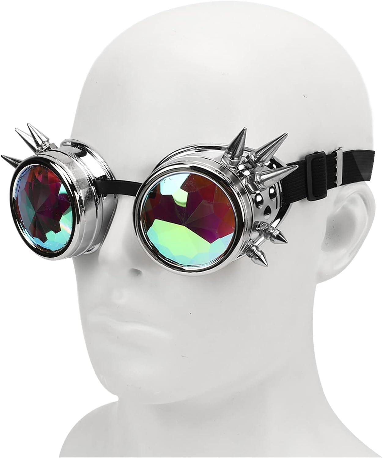 1. 2. Resto del naso regolabile: gli occhiali a vapore hanno un resistenza al naso regolabile, che è una dimensione si adatta a facce grandi e piccole. 3. Con la fascia elastica regolare: gli occhiali da sole caleidoscopi hanno una fascia elastica regolare fibbia, che è altamente elastica e adatta alla maggior parte dei di testa. 4. Ampiabile: i nostri occhiali caleidoscopi sono applicabili a una vasta gamma di luoghi come retrò, decorazione, feste e Halloween, . 5. PC e ABS: gli occhiali a vapore sono realizzati con materiale PC e ABS premium, luce in peso e non sarai stanco dopo averlo indossato per molto tempo. Specifiche tecnicheifiche: Tipo di articolo: occhiali Steampunk Materiale: PC, ABS Lista Imballaggio: 1 occhio xsteampunk