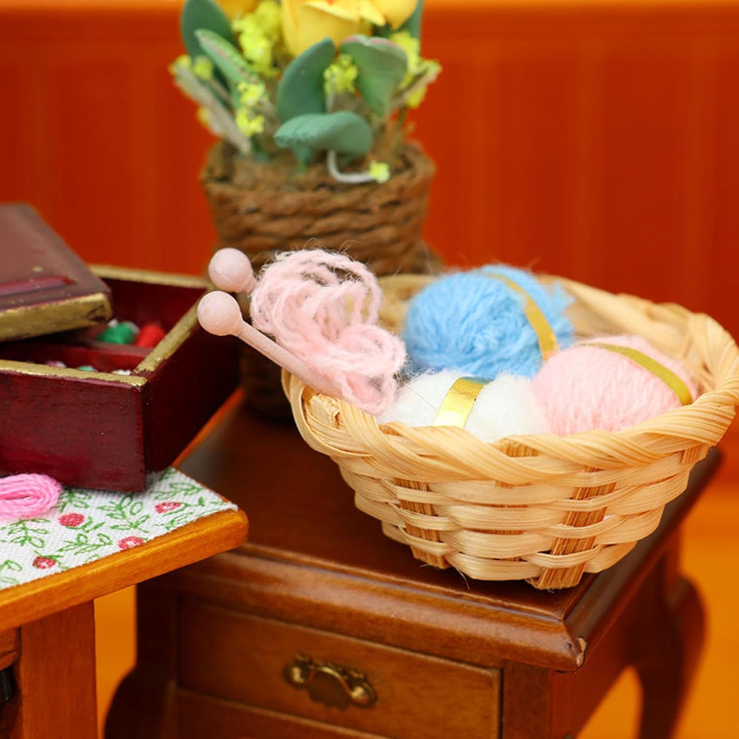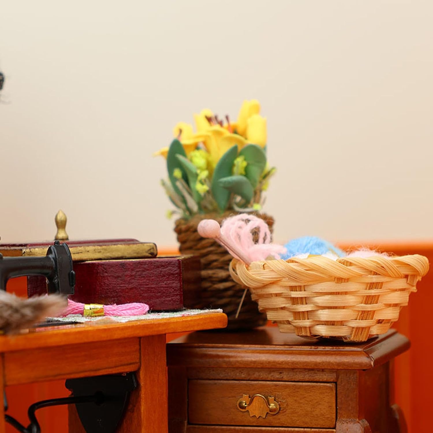 Perfettamente 1/12 case delle bambole camere da letto stanze artigianali o serve come oggetti di scena per scene in miniatura e vetrine da collezione Design per adulti, hobbisti artigianali e genitori che creano scene interattive di case delle bambole con bambini di 8 anni sotto supervisione Migliora le case delle bambole realistiche con bobine mobili e cesto portaoggetti per giocare liberamente creativo, adatto per varie occasioni In primo piano scala precisa 1/12, finiture e componenti preassemblati, ideale per collezionisti in miniatura e appassionati di modelli Utilizza legno, metallo e stoffa selezionati, questo kit da cucito in miniatura 1/12 replica i dettagli della vita reale per accessori per case delle bambole con portabilità