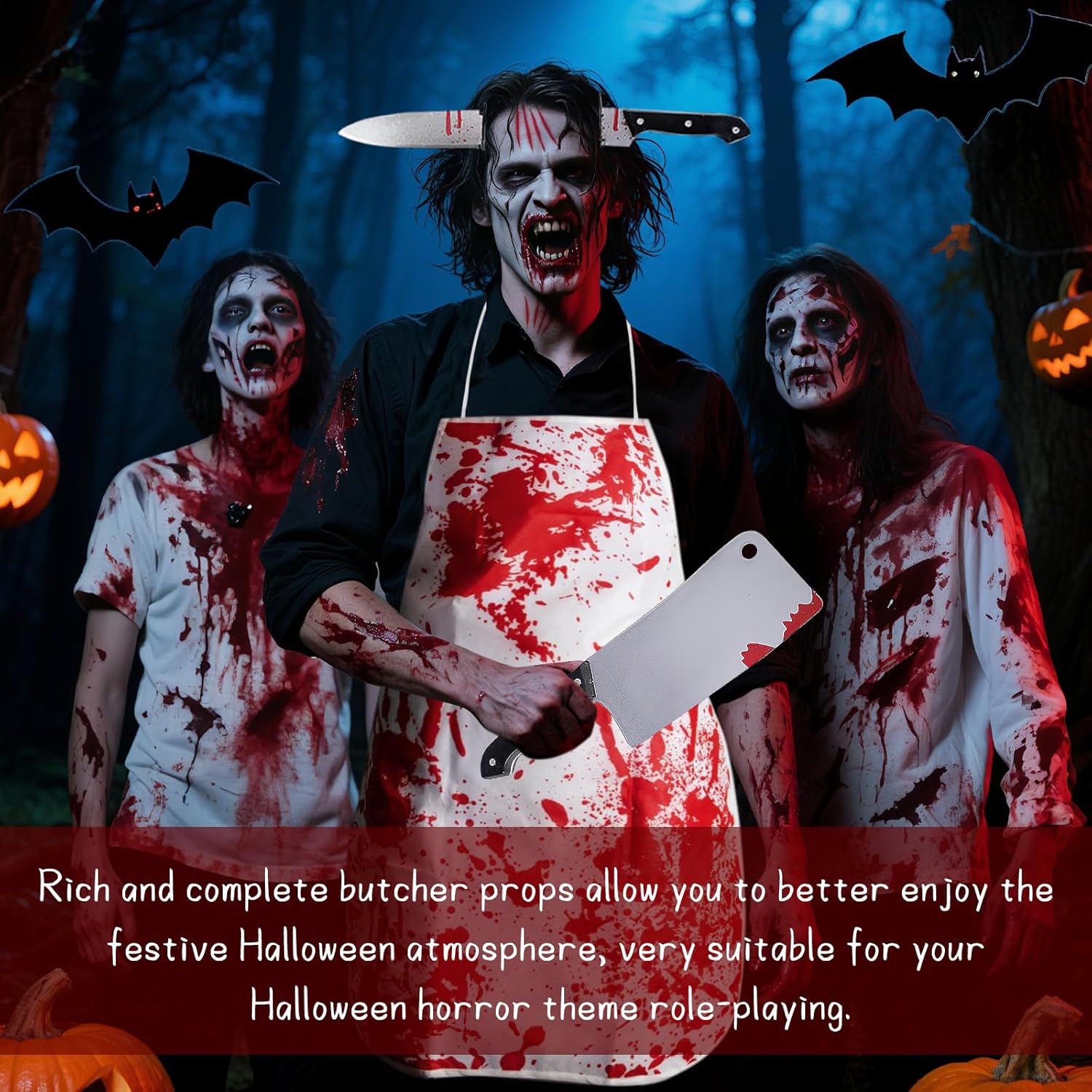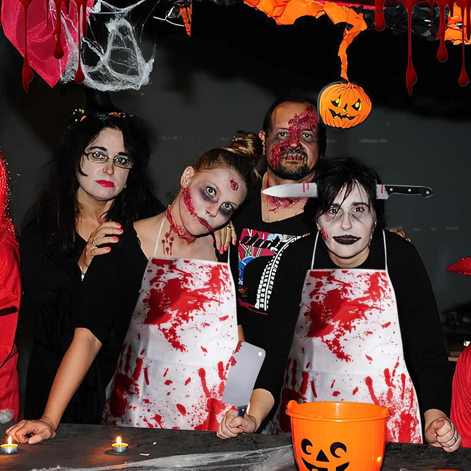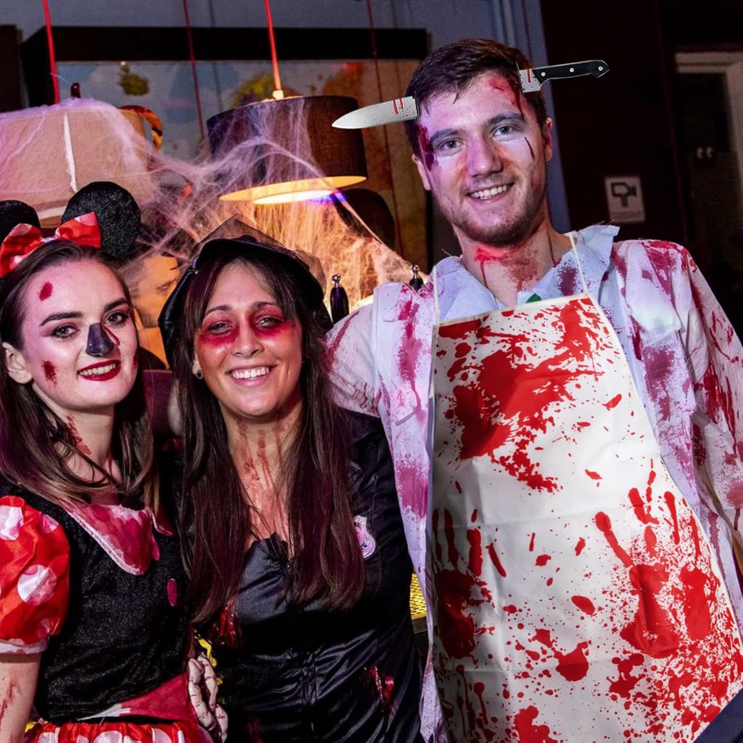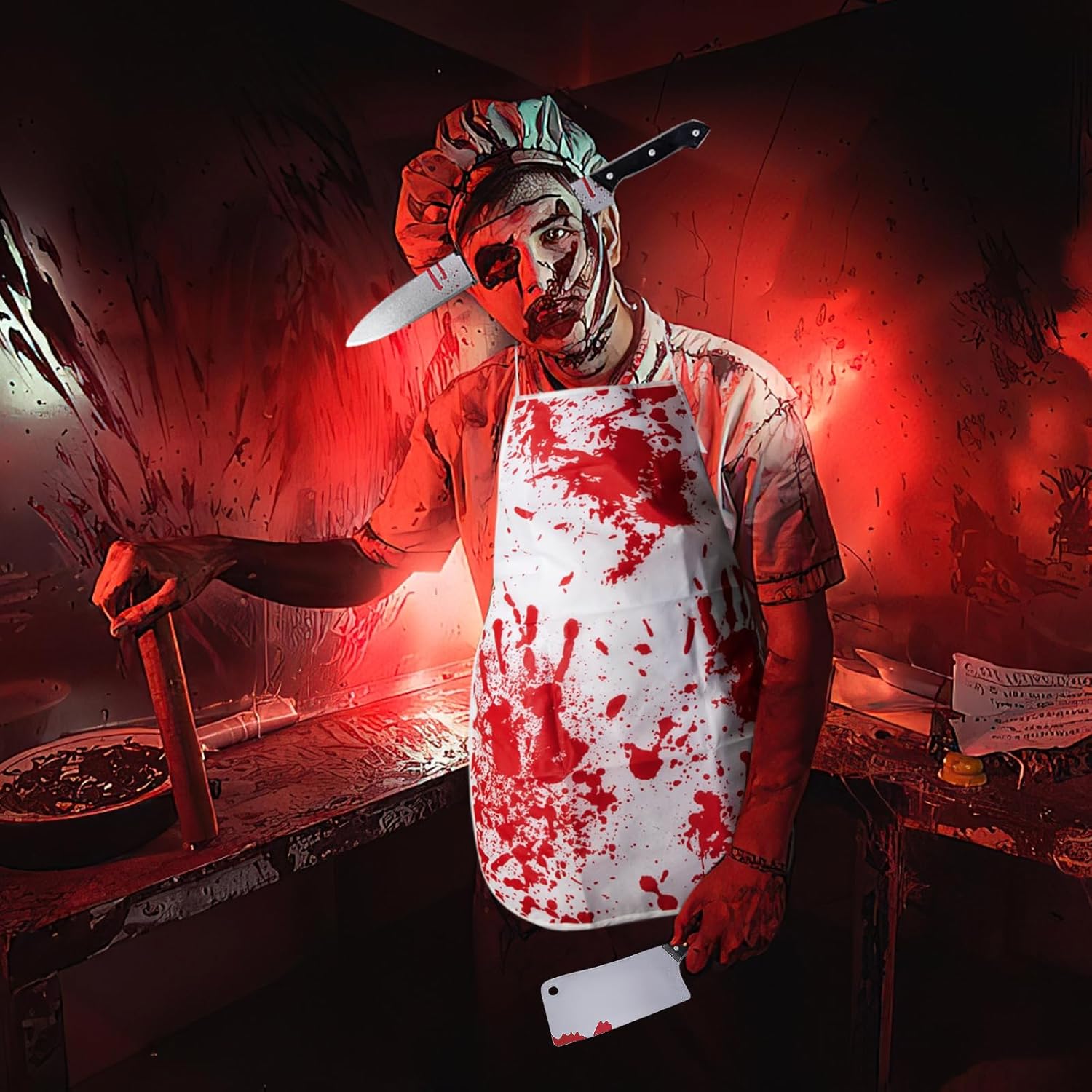 Descrizione prodotto ZoneYan Grembiule di Halloween, Costume da Macellaio con Guanti Mannaia, Grembiule Insanguinato, Coltello Testa Fascia, Adesivi per Tatuaggi Horror, per Festa di Halloween Carnevale Cosplay Con questo spaventoso e sanguinante set da macellaio, sarai al centro dell'attenzione alla tua festa di Halloween! Il nostro set, accuratamente progettato, include tutto il necessario per creare senza sforzo un look horror professionale. Che si tratti di una festa a tema, di una casa stregata o di fare scherzi, questo set garantirà divertimento senza fine e urla a non finire! 🔥 Caratteristiche: Design horror realistico: il grembiule e i guanti insanguinati presentano motivi realistici con macchie di sangue, mentre il copricapo tempestato di coltelli crea un effetto visivo sorprendente. Con 10 adesivi 3D con tatuaggi a cicatrice, puoi facilmente creare un effetto cinematografico e sanguinante e completare il tuo look spaventoso. Materiale sicuro e confortevole: il grembiule e i guanti sono realizzati in morbido poliestere traspirante per un comfort ottimale. Il coltello e il copricapo sono realizzati in plastica ecologica con una superficie liscia e senza bordi per un'applicazione senza problemi. Adatto alla maggior parte delle persone: il grembiule da macellaio insanguinato misura 71 cm x 54 cm (circa 28 x 21 pollici) ed è dotato di cinghie regolabili, che lo rendono adatto a uomini, donne e adolescenti di tutte le taglie. Durevole e facile da rimuovere: i tatuaggi con cicatrici aderiscono saldamente e durano dai 3 ai 7 giorni (a seconda del tipo di pelle e del livello di attività). Possono essere facilmente rimossi con una salvietta imbevuta di alcol o uno struccante senza lasciare residui o danneggiare la pelle. 📏 Specifiche: Colori: Bianco, Rosso Dimensioni grembiule: 71 x 54 cm (circa 28 x 21 pollici) Dimensioni coltello da cucina: 8 x 29 cm Dimensioni coltello fascia: 27 x 21 cm Dimensioni tatuaggio: 5,8 x 9,5 cm Dimensioni guanto: 23 x 13 cm Materiale grembiule: Tessuto non tessuto Materiale fascia: Plastica ABS Materiale mannaia: Plastica ABS Materiale guanto: Poliestere Materiale tatuaggio: Adesivi medici a base d'acqua 📦Contenuto della confezione: 1 Macellaio sanguinario grembiule 1 fascia per capelli di Halloween con coltello in testa 1 mannaia 1 paio di guanti insanguinati 10 tatuaggi con cicatrici ⚠️Note: Questo prodotto è destinato esclusivamente all'uso come costume e intrattenimento durante le feste. Evitare di utilizzarlo durante la guida o di notte per evitare malintesi. Tenere il tatuaggio fuori dalla portata dei bambini. Si consiglia di testare il tatuaggio su una piccola area del braccio prima dell'uso. In caso di reazione allergica, interrompere immediatamente l'uso. Sebbene il coltello sia di plastica, non agitarlo né puntarlo verso gli occhi per evitare lesioni. Il grembiule è lavabile a mano e deve essere appeso ad asciugare al riparo dalla luce solare diretta. Gli altri accessori devono essere puliti con un panno umido e conservati in un luogo fresco e asciutto. Avviso di sicurezza Nessun avvertimento applicabile