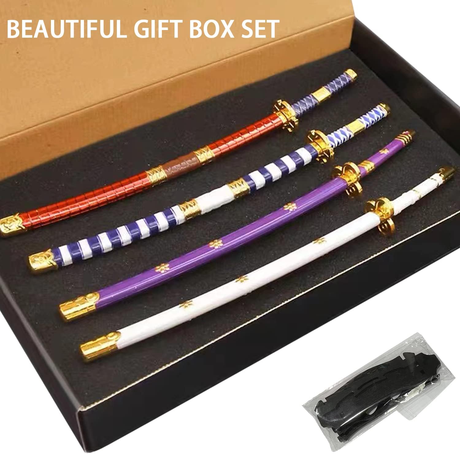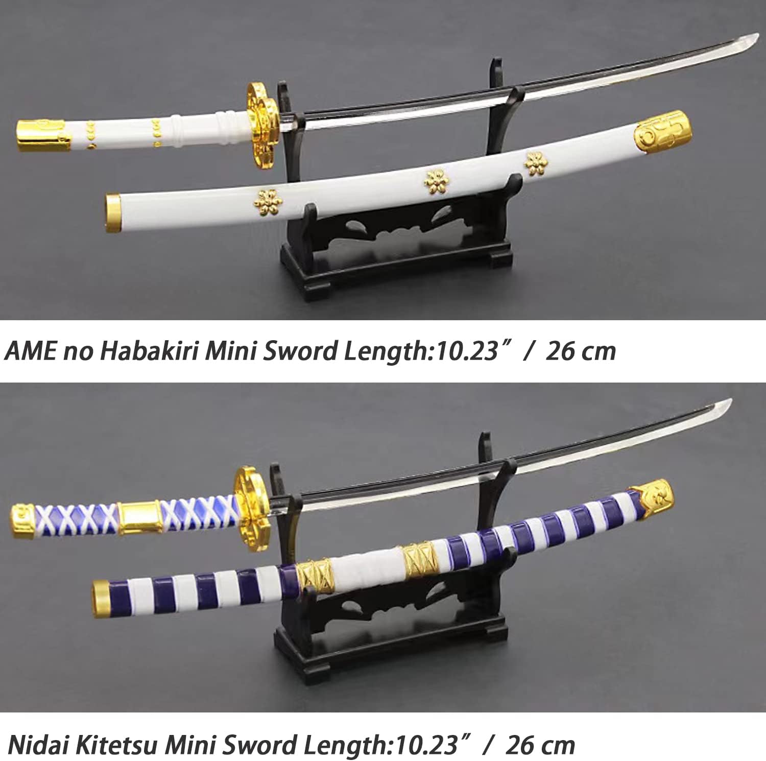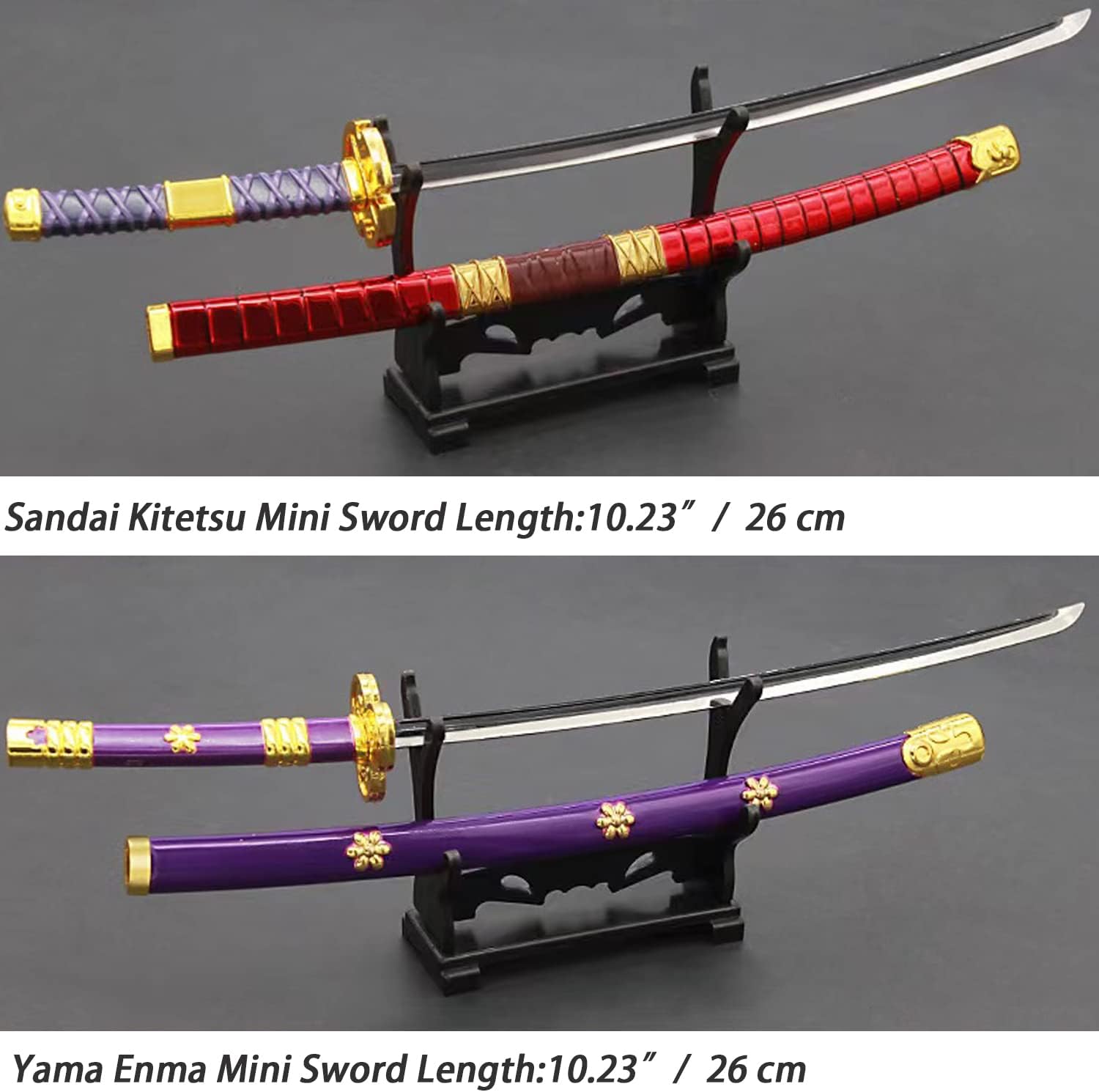 Il set di mini spade Enma Roronoa Zoro include: mini Kitetsu + Mini Yama Enma + Mini AME no Habakiri + Mini Nidai Kitetsu 【Aspetto】 Squisita fattura, realizzata secondo l'animazione originale, e cerca di ripristinare ogni dettaglio. Applicazione: questo set di mini spade Zoro può essere utilizzato come tagliacarte, portachiavi o come elemento decorativo che può essere posizionato ovunque nella stanza o sulla scrivania. Sicurezza: non affilato, può essere utilizzato senza preoccupazioni. Puoi metterti in mostra agli amici e non aver paura di tagliarti accidentalmente. Puoi anche essere certo di acquistare per il tuo bambino. Dimensioni: lunghezza di ogni spada: circa 23,5 cm. Materiale: spada interamente in metallo, espositore in palstic