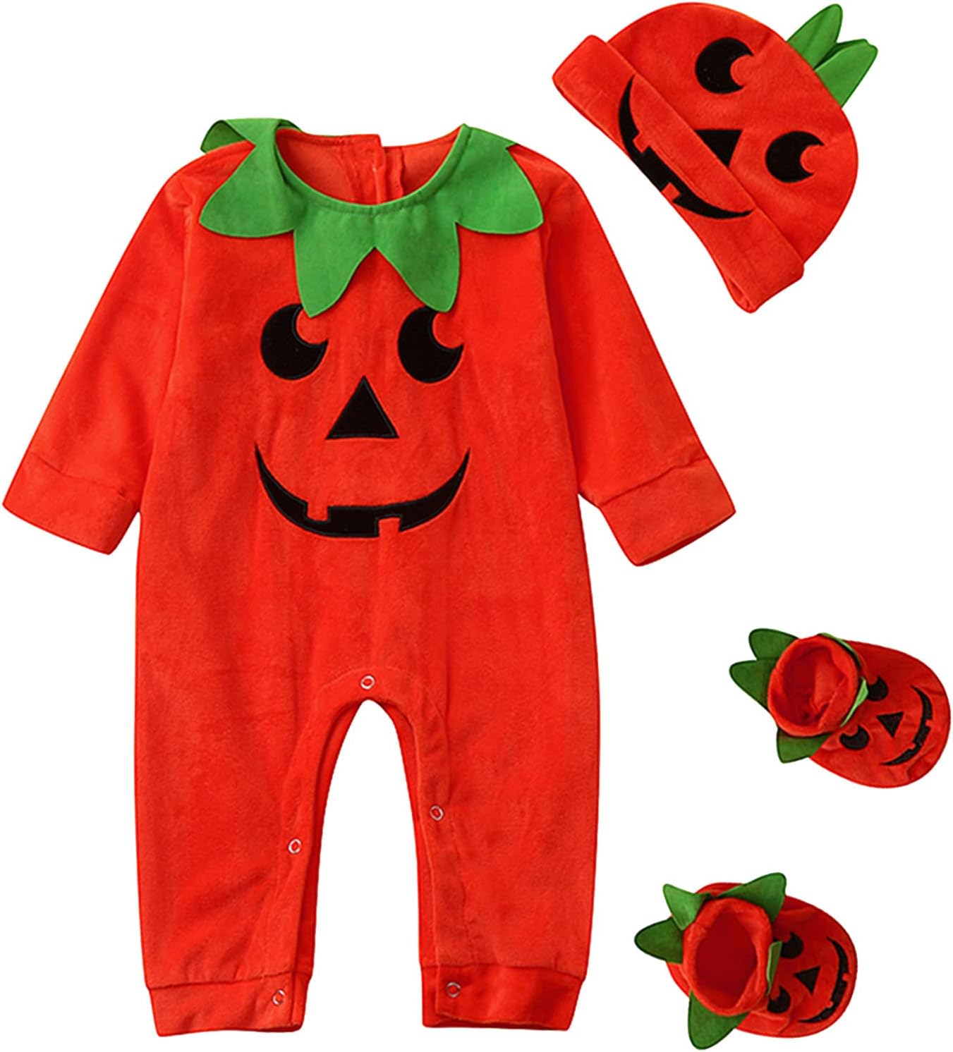 Zucca Halloween Costume Neonato Completo Halloween Bimbo Tutina Bambina Ragazze Zucca da Carnevale Costumi Pumpkin Neonati Invernali Tutine 0-24mesi Pagliaccetto Neonato Vestito Unisex Cosplay