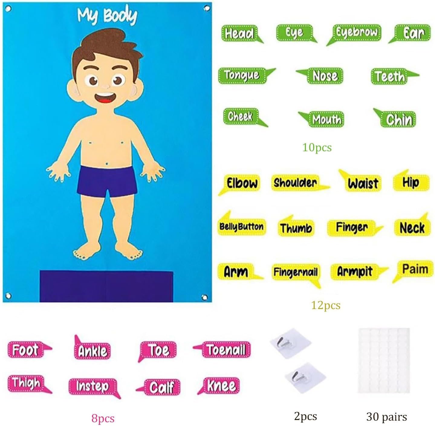 【Coltiva le capacità di risoluzione dei problemi】 Felt Board for porta a una migliore coordinazione occhio-mano, pazienza, curiosità e capacità di risoluzione dei problemi. I tuoi bambini li adoreranno perché sono divertenti ed educativi. 【Nessuna sbavatura】 Il pannello in feltro per bambini è realizzato in materiale feltro ecologico. Poiché ha bordi lisci senza sbavature, puoi usarlo con tranquillità. La sua qualità robusta e affidabile garantisce una lunga durata. 【Stimolare l'interesse per l'apprendimento del corpo】 Le storie di feltro hanno colori vivaci e varie forme che possono aiutarli a imparare il riconoscimento del colore e migliorare le loro capacità di percezione visiva. 【Set di pannelli in feltro】 Con le attività da parete in feltro per i più piccoli, ottieni 1 pannello in feltro blu, 2 robusti ganci per una facile sospensione e 30 pannelli in feltro per parti del corpo. Ti consente di creare storie e scene diverse che possono essere modificate facilmente. 【Ambito di applicazione】 È possibile utilizzare i set di storie in feltro per vari scopi. È adatto per le attività 'asilo, l'apprendimento in età prescolare e il in famiglia. È anche un ottimo regalo per il tuo bambino.