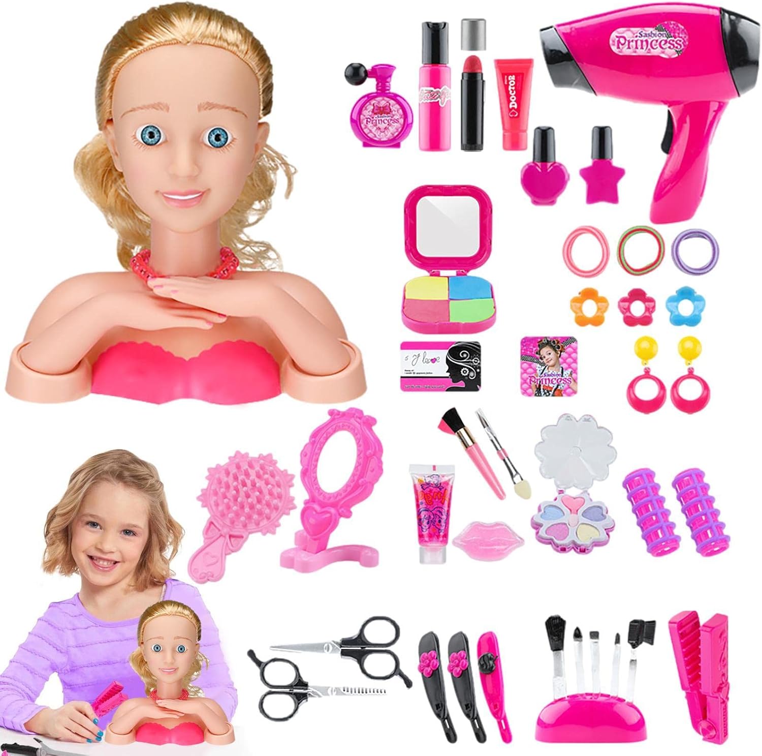 Capelli morbidi per lo styling Ideale per piccoli parrucchieri in allenamento Colori e stili possono variare Accessori condivisibili e indossabili 1 x testa per capelli luccicante Girlz, 1 x spazzola per capelli, 2 x clip per capelli, 2 x fermagli per capelli, 10 x elastici per capelli