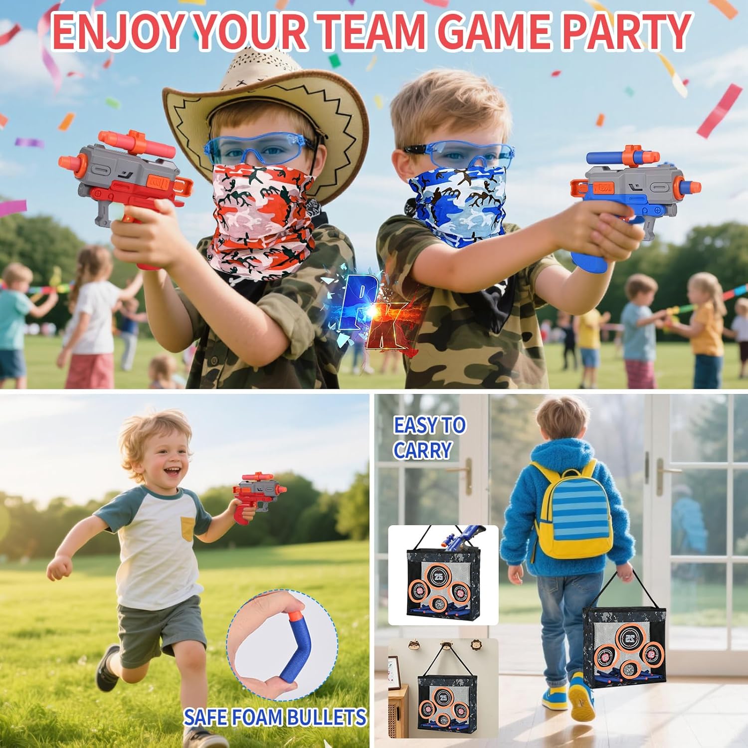 Contenuto del Set: Questo set include un bersaglio pieghevole mimetico, 80 freccette in schiuma morbida bicolori (rosso e blu), 2 tiro al bersaglio con pistola giocattolo e 6 accessori di sicurezza (2 occhiali protettivi, 2 sciarpe, 2 cinturini da polso). Nessun acquisto aggiuntivo necessario. Pronto all'uso per formare due squadre e iniziare immediatamente competizioni al chiuso e all'aperto. Portatile: Il tiro al bersaglio con pistola giocattolo include un bersaglio pieghevole mimetico professionale che simula scenari realistici, migliorando l'immersione e la sfida del gioco. Si ripiega rapidamente per un facile riporlo quando non in uso. Leggero e facile da trasportare in parco, giardino o a casa di amici. Facile da Usare: Carica e spara le freccette pompando avanti e indietro l'otturatore. Ciò garantisce tiri rapidi e precisi. La maniglia del tiro al bersaglio con pistola giocattolo ha una bassa resistenza alla trazione, permettendo ai bambini di tirarla facilmente all'indietro. Le freccette si inseriscono facilmente nella parte anteriore. Leggero e Maneggevole: Il tiro al bersaglio con pistola giocattolo è ottimizzato per le mani dei bambini, leggero, con un'impugnatura comoda e un funzionamento semplice. Permette un facile caricamento, mira e sparo, dando ai bambini un senso di realizzazione nell'uso indipendente. Promuove il Movimento: Attraverso giochi di tiro divertenti, incoraggia i bambini ad alzarsi dal divano, correre, nascondersi e mirare. Allena efficacemente la coordinazione corporea, la velocità di reazione e il pensiero strategico. Il tiro al bersaglio con pistola giocattolo è un'ottima alternativa attiva agli schermi.