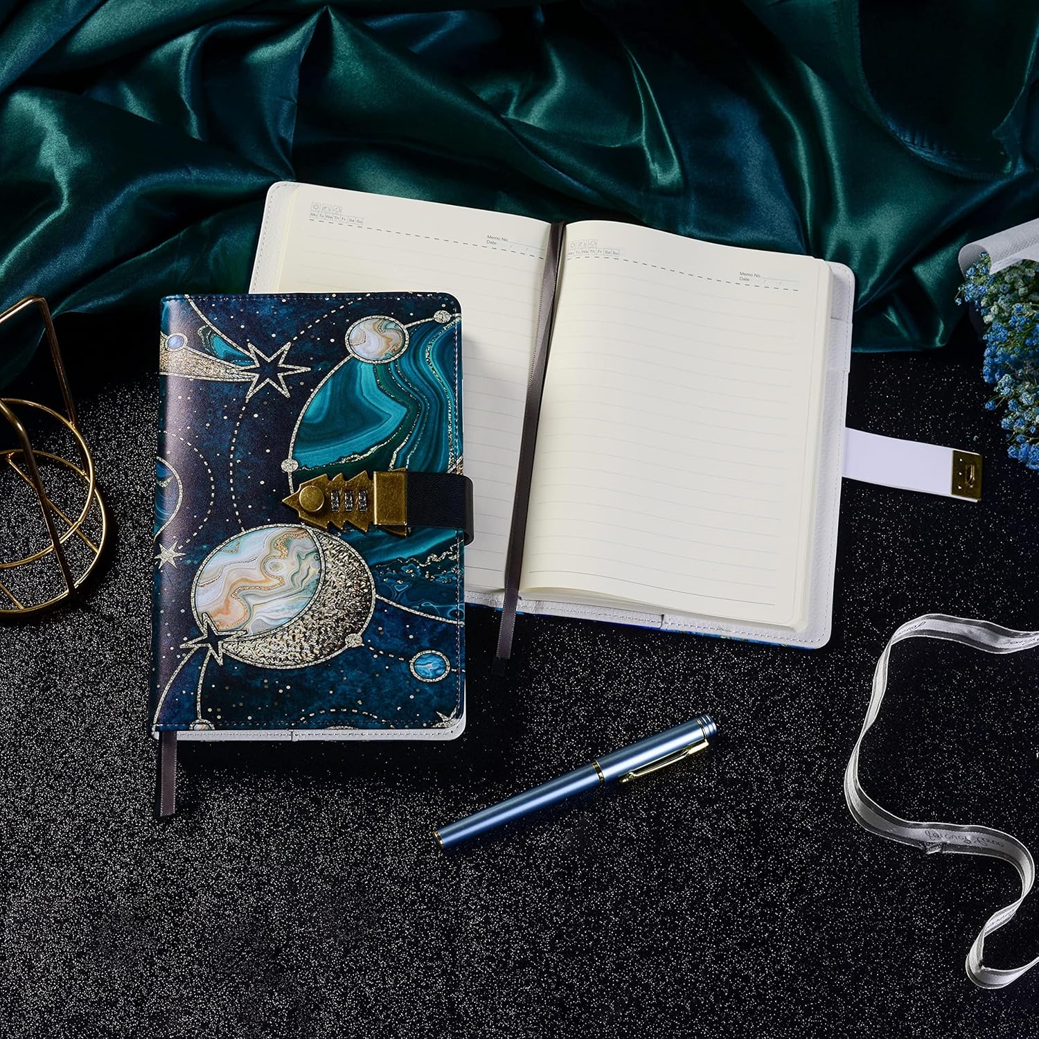 Blocco con codice di sicurezza: proteggi i tuoi pensieri con un blocco con codice facile da impostare, impedendo l'accesso non autorizzato. Carta spessa da 100 g/m² — 224 pagine color crema, inchiostro anti-sbavamento, garantisce una scrittura fluida e chiara. Ricaricabile e pratica: carta interna ricaricabile, con segnalibro, tasca interna e portapenne. Multifunzionale: ideale come diario, diario, quaderno o album da disegno. Design elegante: rivestimento in pelle PU premium, durevole e resistente all'usura. Regalo ideale: perfetto per compleanni, Natale, lauree o qualsiasi occasione speciale. Servizio post-vendita affidabile: se hai dimenticato il codice o hai riscontrato problemi, contattaci liberamente, ti aiuteremo rapidamente.
