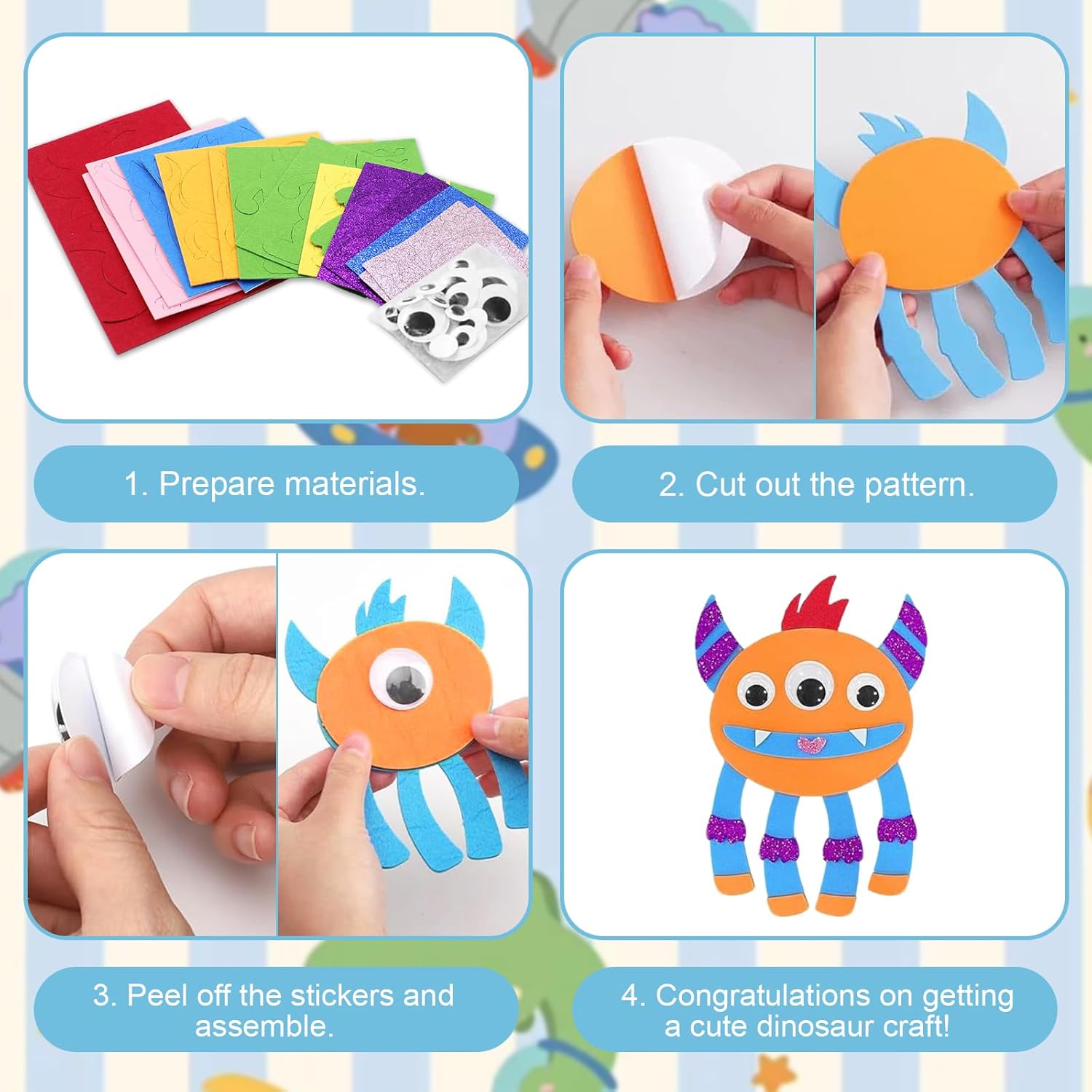 🎃 12 kit creativi mostri: questo set include 12 kit creativi mostri per bambini, ideali per attività di gruppo come feste di compleanno o raduni per bambini. Con 12 nastri assortiti, i bambini possono creare e personalizzare i propri mostri, garantendo divertimento e creatività. ✨ Creatività illimitata: ogni kit creativo per bambini offre materiali e modelli diversi per progettare mostri unici. I bambini possono mettere in pratica le loro idee, da forme bizzarre a mostri affascinanti, sviluppando così la loro creatività e il loro talento artistico. 🛡️ Materiali sicuri e di alta qualità: utilizziamo materiali sicuri e adatti ai bambini. Tutti i componenti del kit fai da te per bambini sono privi di BPA e atossici, quindi i genitori non devono preoccuparsi della sicurezza dei loro figli mentre realizzano i loro progetti. 🎂 Perfetto per i compleanni: come kit creativo per il compleanno dei bambini, questo set è l'attività perfetta per le feste dei bambini. Porta il programma del compleanno a un nuovo livello, tenendo i bambini occupati e divertiti e permettendo loro di creare insieme. 🧩 Facile da usare: creare per i compleanni dei bambini con questo set è molto semplice. Grazie alle istruzioni dettagliate e ai materiali preparati, i bambini possono iniziare rapidamente a creare senza bisogno di conoscenze o abilità avanzate.