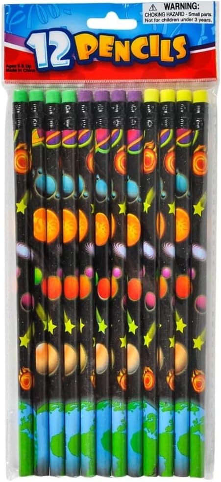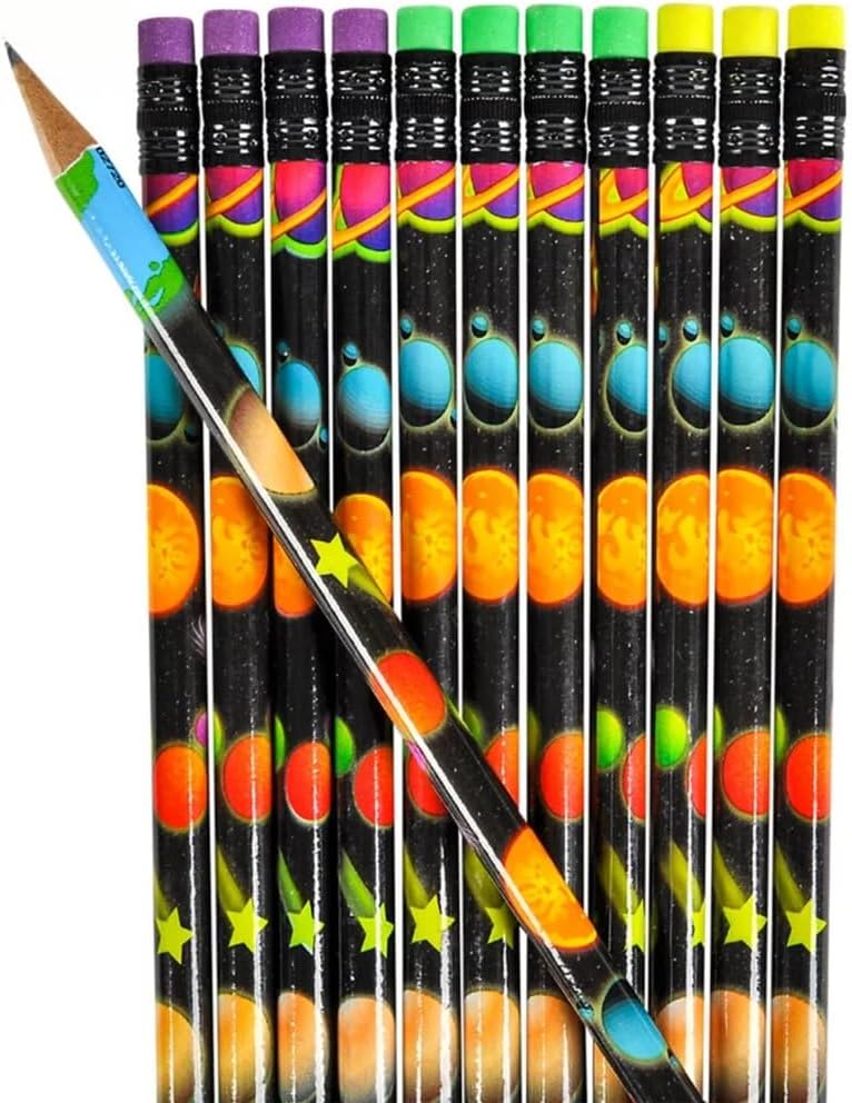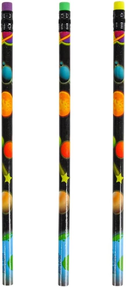 7 1/2" in legno matite con gomma sulla parte superiore. Colorful outer-space design.