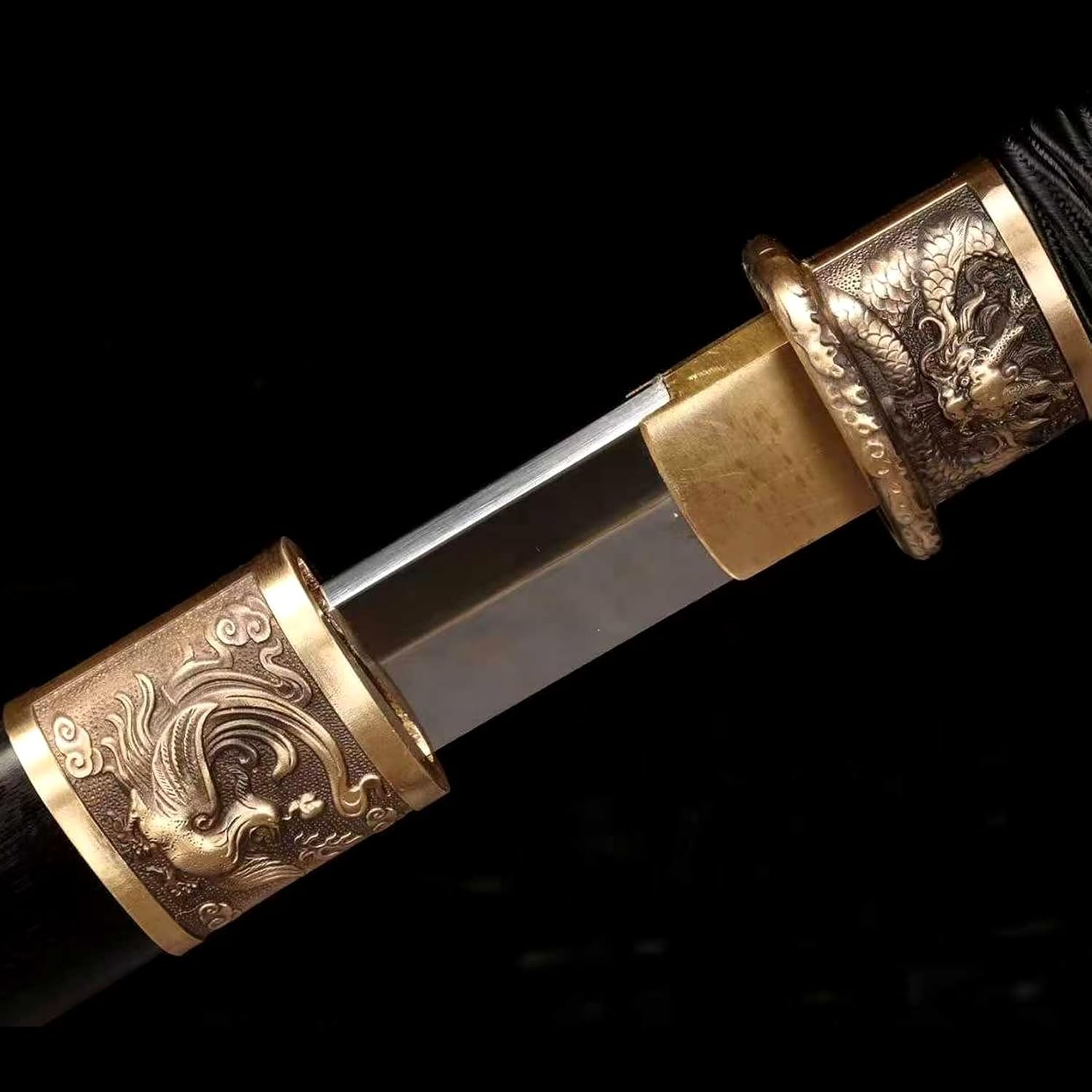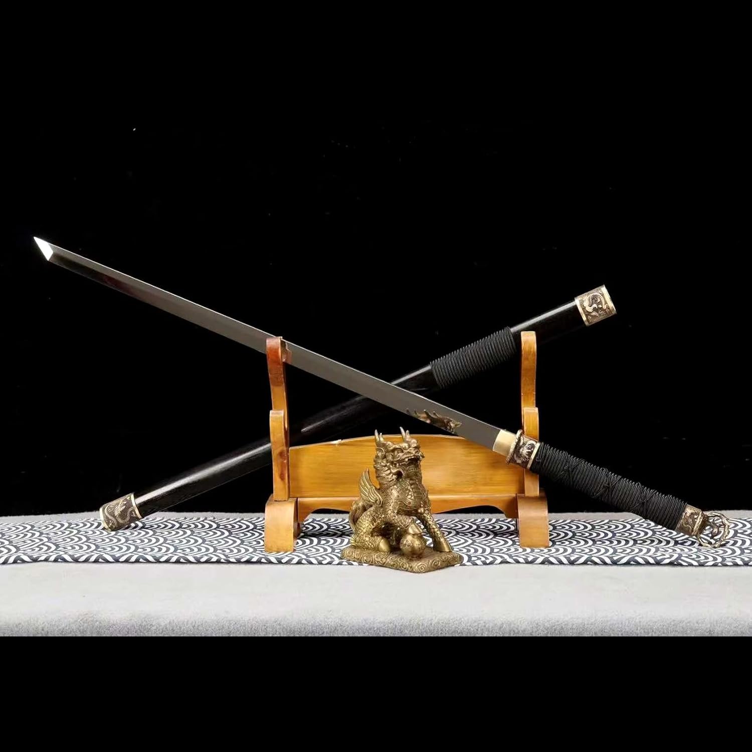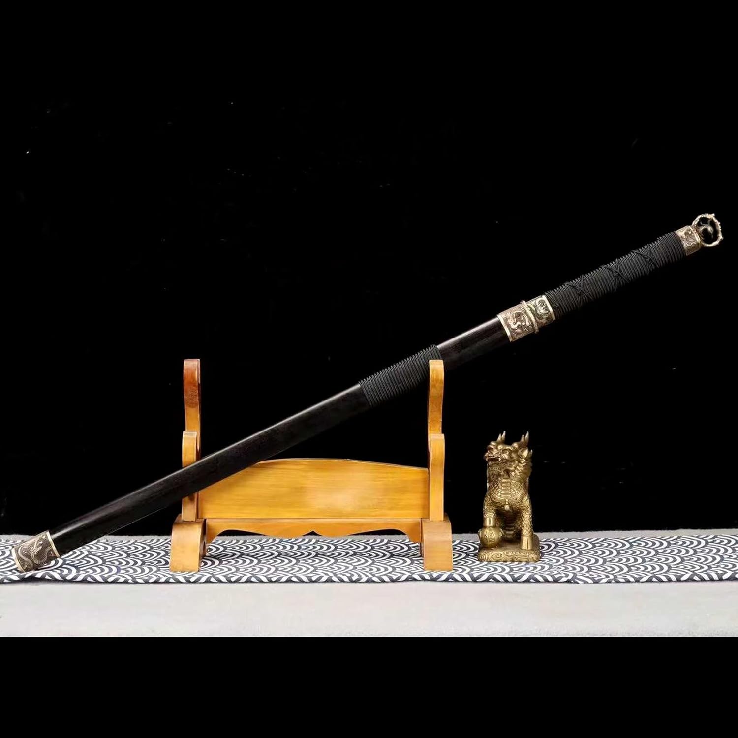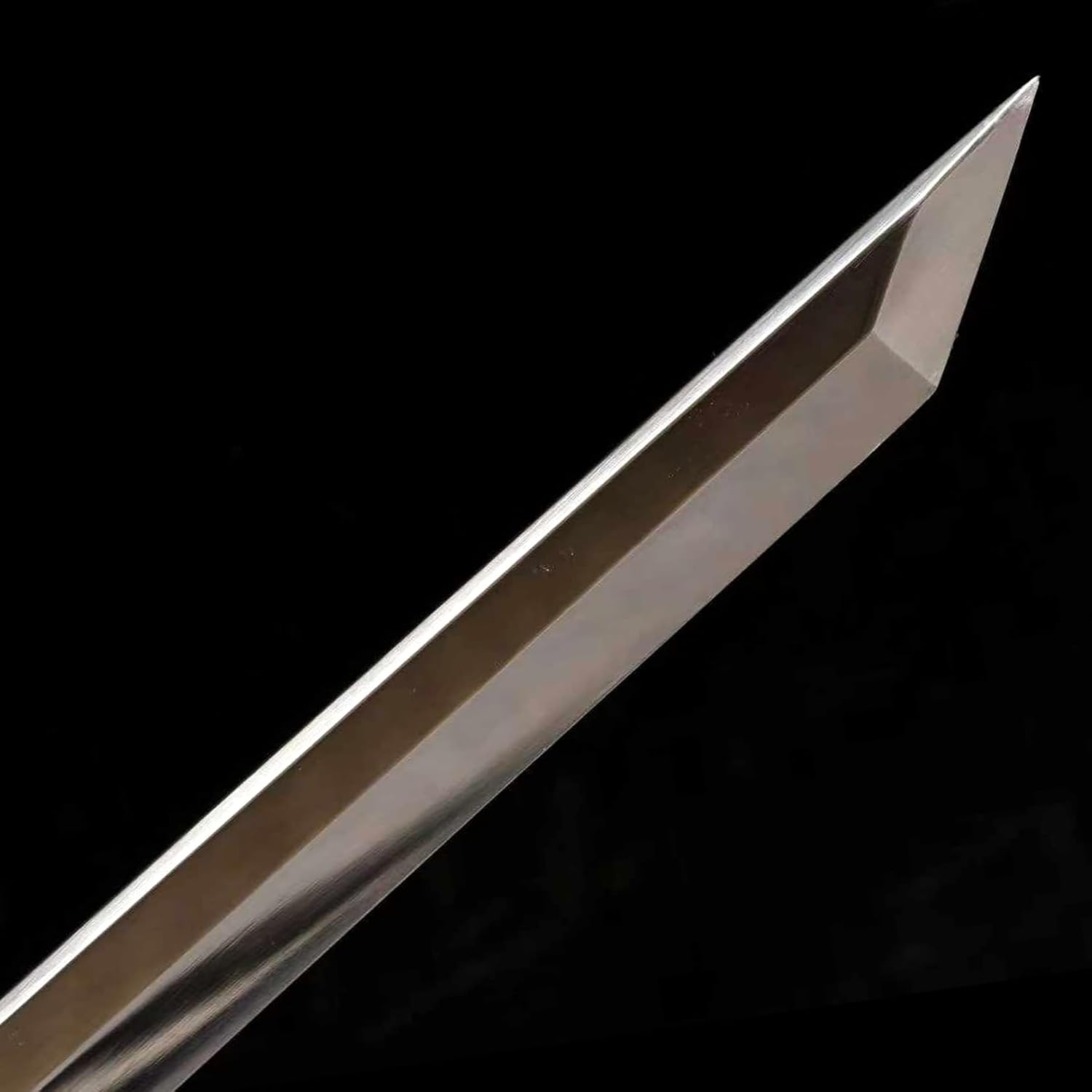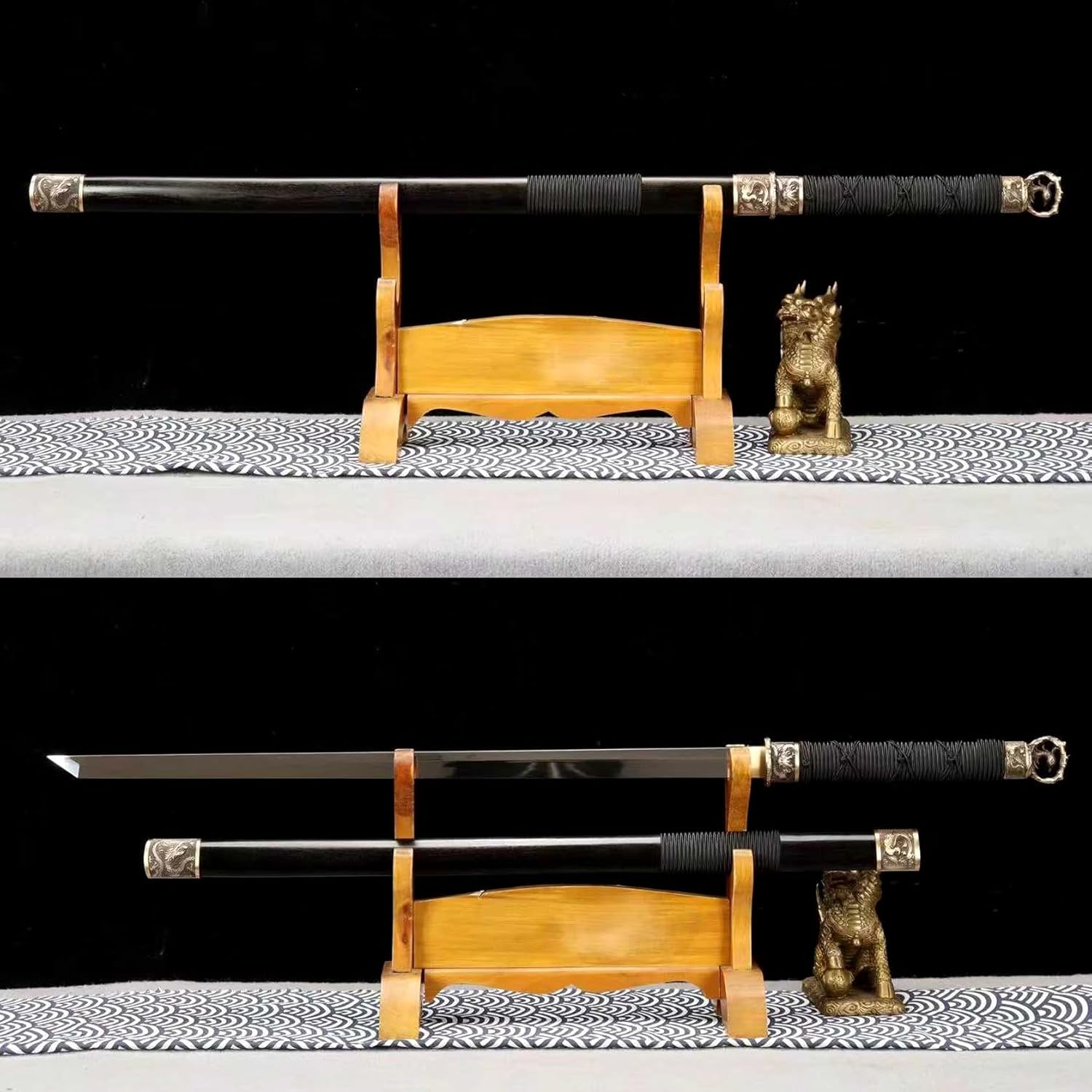 【La bellezza delle armi fredde】 Spada con codolo da 101 cm, lama in acciaio al manganese con superficie lucida, fodero in legno nero naturale, spada dritta da samurai forgiata a mano per regali, allenamento, decorazione