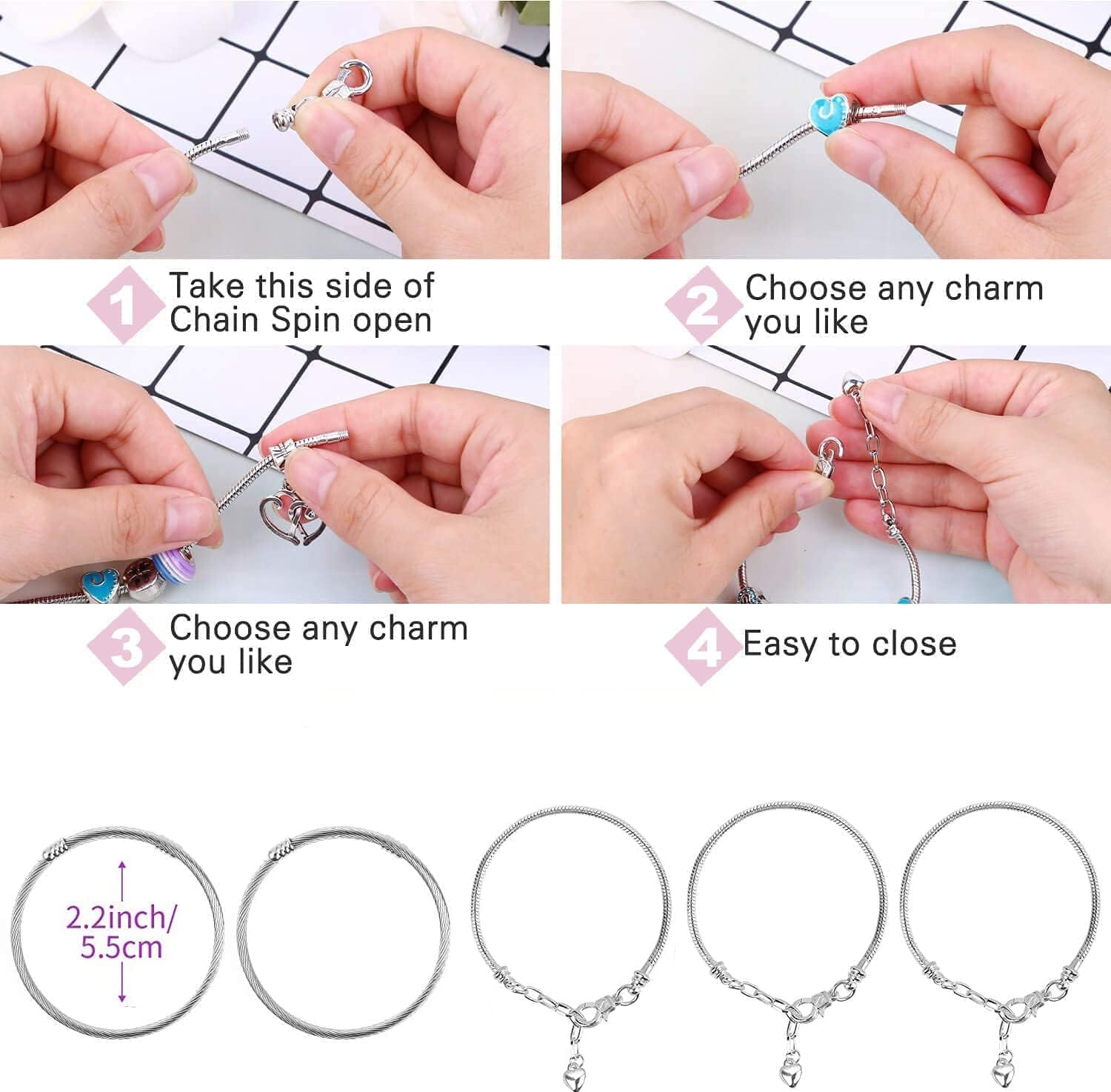 ✨ Tieni occupato il tuo piccolo gioielliere: stai cercando accessori fai-da-te che possano ispirare i tuoi bambini a creare oggetti? Coinvolgi tuo figlio per qualche ora e aiutalo a creare gioielli unici che potrà poi indossare con orgoglio ogni giorno. 💎Set per creare braccialetti con ciondoli di valore -Se stai cercando un nuovo hobby per la tua ragazza o vuoi semplicemente sviluppare le tue abilità fai-da-te, ci pensiamo noi. Regala ai tuoi bambini questo set per creare braccialetti con ciondoli fai da te con un mix perfetto di colori e creature magiche, che viene fornito con 3 braccialetti con catena di serpenti, 2 braccialetti con piume, 5 collane, 18 perline di metallo con ciondoli, 23 perline con ciondoli con ciondoli, 22 perline arcobaleno. ❤️ Braccialetti diversi ogni giorno - Hai bisogno di un simpatico kit per creare braccialetti in modo che tuo figlio possa facilmente progettare un braccialetto unico? - Il nostro kit fai da te da 73 pezzi è proprio questo. La parte migliore: quando i tuoi bambini si stancano di indossare un gioiello, possono smontarlo, usare le stesse perline, riorganizzare e progettare gioielli unici, ciondoli, braccialetti, portachiavi, cavigliere o qualsiasi altra cosa! 🎁 Artigianato significativo - Porta i regali a un livello superiore con questo fantastico kit fai da te per creare braccialetti con ciondoli per ragazze con ciondoli per gioielli come bellissime stelle, cuori alati, arcobaleni, corone, ali d'angelo, sirene, confezionato in una bella scatola rosa, che lo rende un regalo fantastico per i bambini che amano creare i propri capolavori. 💍 Materiali artistici di alta qualità - Aiuta tuo figlio a creare un elegante braccialetto di gioielli per il suo amico o ad aggiungerlo alla propria collezione di gioielli. Realizzato con materiali di alta qualità, il Making Set non si ossida né sbiadisce facilmente, consentendo al tuo bambino di esprimersi liberamente e aiutandolo a sviluppare capacità motorie, pazienza e concentrazione.