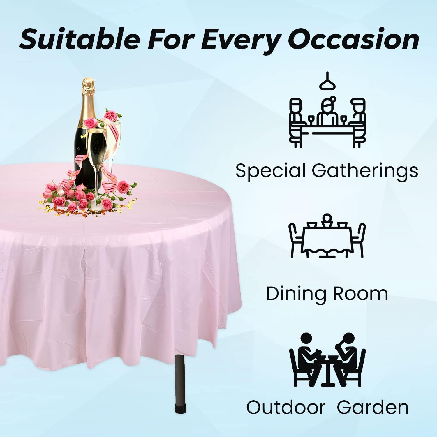 La confezione include 6 tovaglie di plastica rotonde da 84 pollici. Le tovaglie sono il modo più efficiente ed efficace per creare un'attraente tavola, rendendole una parte essenziale per ogni occasione speciale come matrimoni, compleanni e altro ancora. Materiale premium: le nostre tovaglie usa e getta sono realizzate in materiale plastico morbido, liscio e impermeabile e possono essere utilizzate sia per feste al chiuso che all'aperto, nonché per compleanni, matrimoni e feste di Natale. Le tovaglie di plastica sono ideali per decorare tavoli durante matrimoni, feste di compleanno, eventi, feste di anniversario, cerimonie, Natale e picnic 🌸【Facile da pulire】 Pulire dopo la festa è davvero semplice e veloce quando si utilizzano tovaglie usa e getta. Dopo l'uso, è sufficiente avvolgere la tovaglia di plastica prima di gettarla e smaltirla. 🌸【Decorazioni per feste】Le nostre tovaglie sono perfette anche per drappeggiare i tavoli per le feste. Colori vivaci: questo. La tovaglia è disponibile in colori eleganti e vivaci che miglioreranno immediatamente l'arredamento della tua stanza e aggiungeranno un'affascinante opulenza all'atmosfera del tuo evento