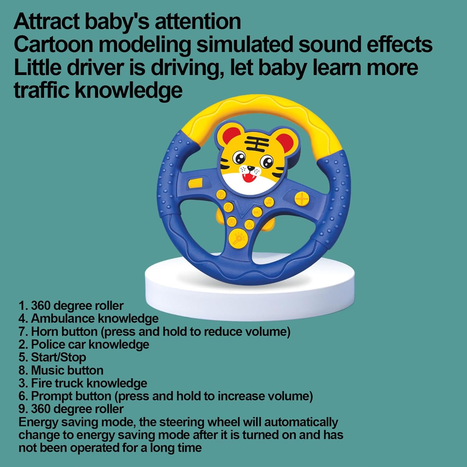 Formazione interattiva: trasforma i viaggi in auto secolari in un'esperienza di apprendimento interattivo con il nostro giocattolo da volante. Coinvolge e diverte tuo figlio e lo rende lo strumento educativo giusto per apprendere le regole del traffico e le abilità di guida. Un'esperienza di apprendimento interattivo attende Sicurezza prima: il giocattolo da volante per seggiolino auto è sapientemente progettato con forma arrotondata, cerchi lisci e materiali morbidi per garantire che le mani piccole possano esplorare in sicurezza. Con un affascinante motivo cartone animato, è un meraviglioso giocattolo per bambini per i giovani sedili posteriori Installazione senza cuciture: non lasciare che lunghi viaggi in auto rovinino il tuo viaggio. Intrattenere il tuo bambino con questo giocattolo da volante facile da installare. Con il semplice anello di fissaggio e la cinghia regolabile, puoi giocare facilmente ovunque in modo che il tuo bambino possa divertirsi mentre sei attento al viaggio Suoni realistici divertenti: imita la vera esperienza di guida e cattura l'attenzione del tuo bambino con suoni realistici ed effetti visivi, mentre illustrazioni vivide possono fingerle per ore come se potessero godersi il gioco e un mondo di avventure fantasiose Piacere alimentato a batteria: risparmia l'immaginazione del tuo bambino con un vivace giocattolo volante che risveglia i piaceri della guida. Alimentato a batteria e un must per lunghi viaggi in auto, il tuo bambino rimarrà intrattenuto per ore