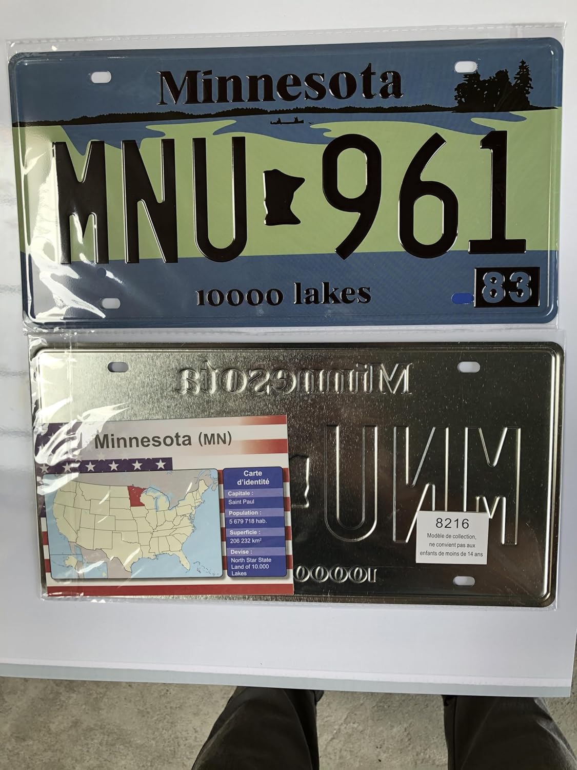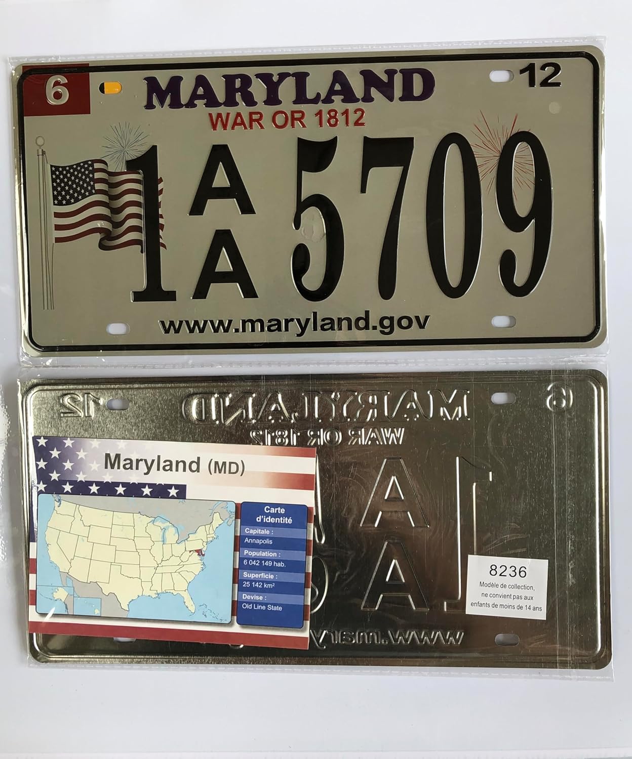 Set di 10 targhe americane, vedi foto Ogni targa viene consegnata con una scheda (15x10 cm) che riporta informazioni generali sullo stato americano interessato Repliche autentiche di targhe esistenti o precedenti Oggetti da collezione e decorativi 30x15 cm in metallo