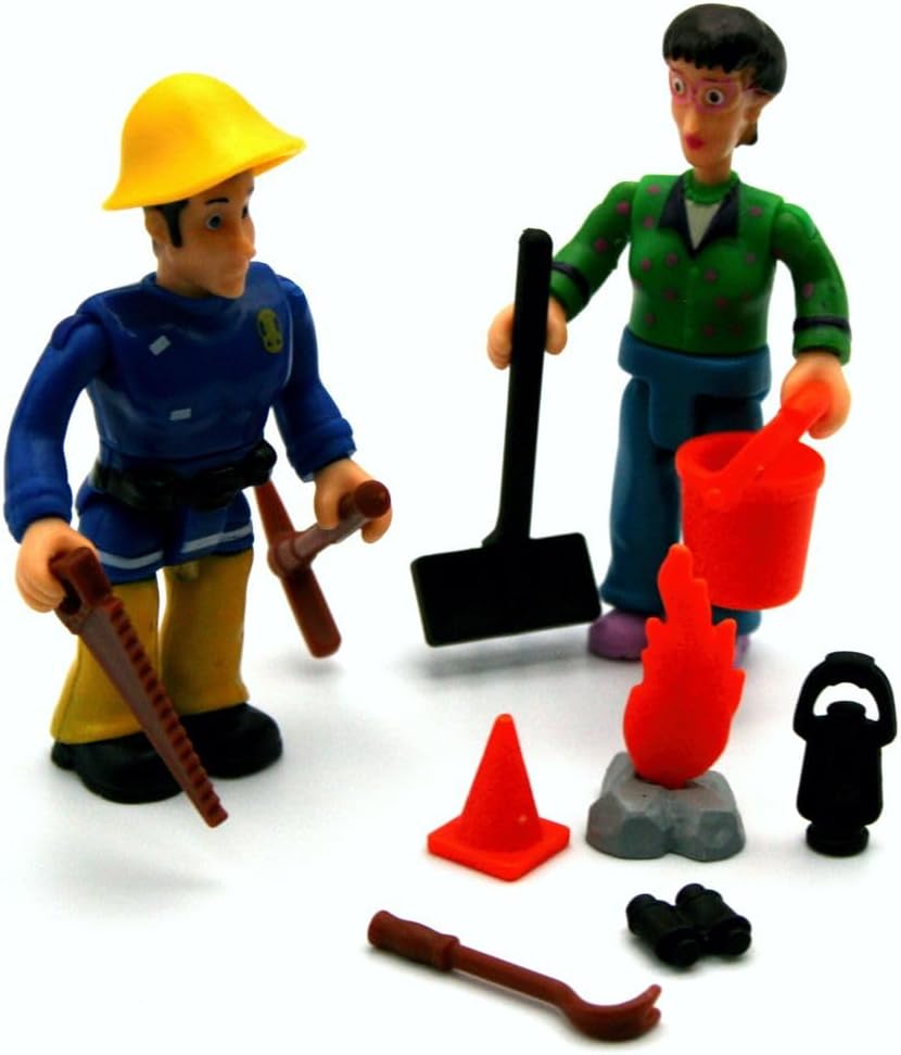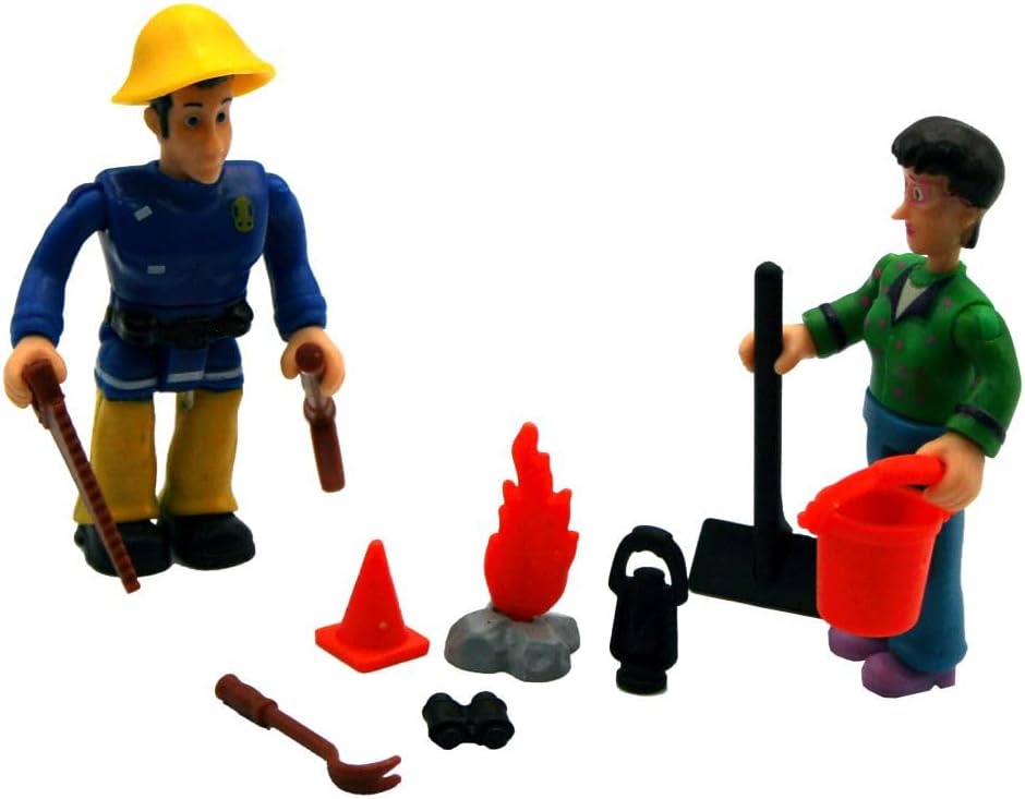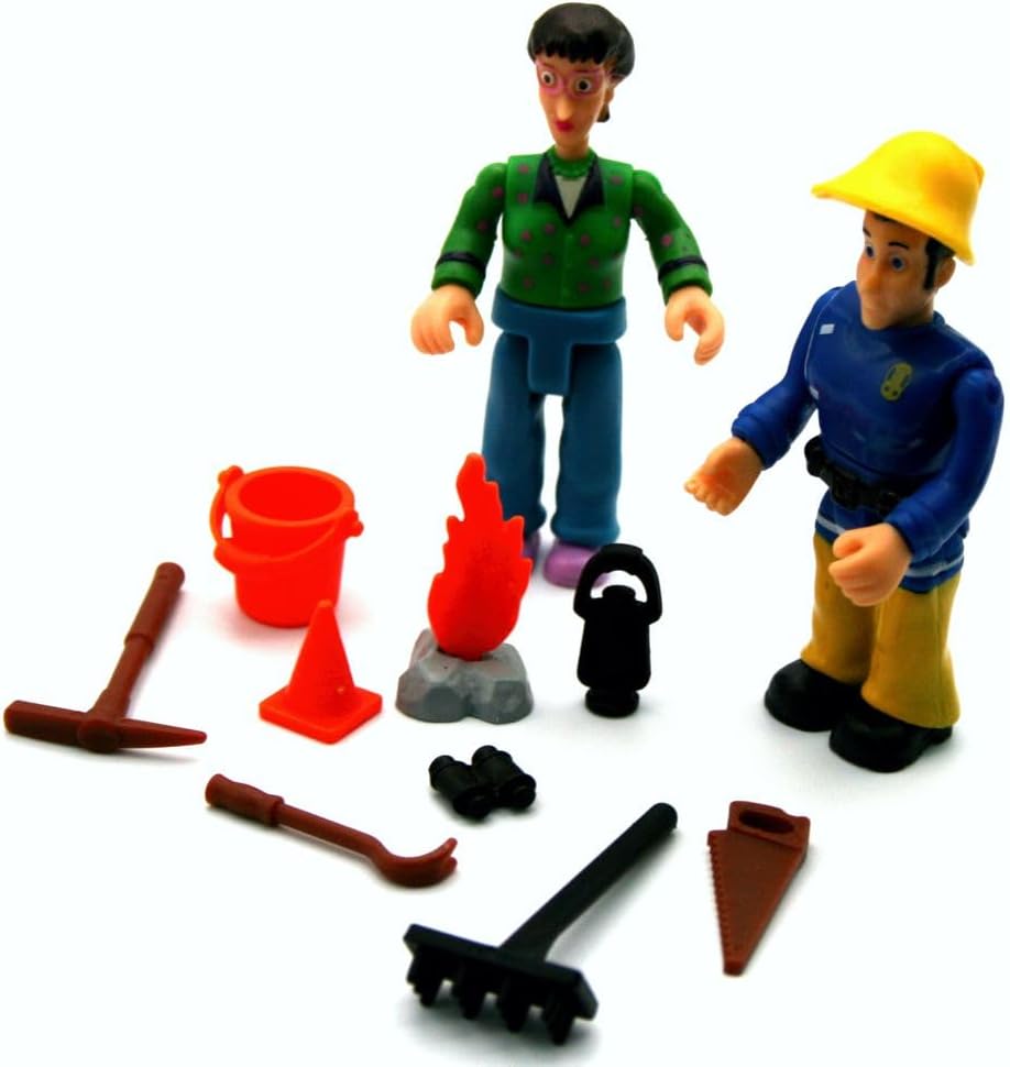Bambini Licenza Tema: Pompiere Sam Allarme arriva una chiamata di emergenza! Nessun problema per il pompiere Sam. Nella tranquilla cittadina di Pontypandy, Sam e i suoi colleghi hanno spesso qualcosa da fare. Con questi fantastici set di personaggi è possibile riprodurre facilmente le scene della famosa serie. Ogni set include 2 personaggi completamente mobili e fino a 6 accessori. Il set contiene personaggi Elvis & Dilys, strumenti e accessori Dimensioni dei personaggi: circa : Elvis – Larghezza 3,5 x Altezza 7,0 x Profondità 2,0 cm, Dilys – Larghezza 3,0 x Altezza 7,0 x Profondità 2,0 cm Materiale: plastica, adatto per bambini dai 3 anni in su