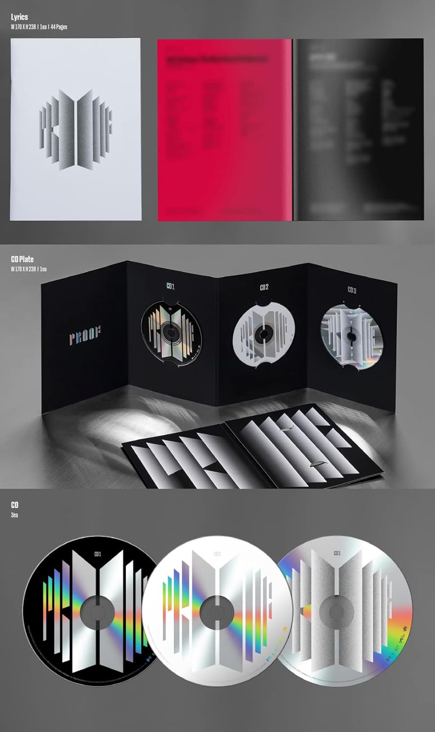 KPOP MARKET (HANTEO & GAON Chart Family Shop) spedirà il tuo ordine dalla Corea del Sud. Data di rilascio: 2022.06.19 3 CD + 132p The Art of Proof + 104p Fotografia + 80p Epilogue + 44p Testi + Fotocard A Set (7ea) + Fotocard B (casuale 1 su 8) + Cartolina (casuale 1 su 8) + Preordine + Poster piegato Articolo originale al 100%. Il volume delle vendite si riflette nei grafici HANTEO e GAON. Imballaggio sicuro con consegna tracciabile I vantaggi e i poster del pre-ordine saranno presentati solo ai prodotti acquistati durante il periodo di pre-ordine. Se effettui un ordine dopo la data di uscita dell'album, i vantaggi del poster e del pre-ordine non saranno presentati quando il poster o i vantaggi del pre-ordine saranno esauriti.