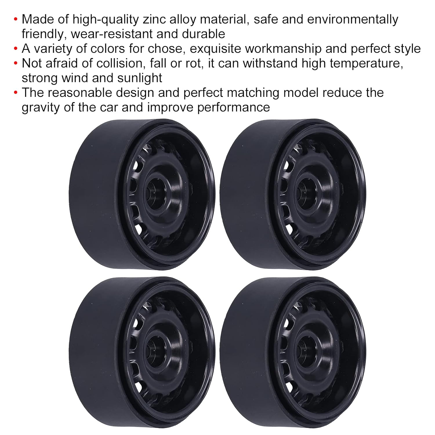 [Materiale di alta qualità] realizzato in lega di zinco durevole, e resistente all'usura per l'uso a lungo termine. [Varietà di colori] Scegli tra una gamma di colori per migliorare l'autenticità della tua auto RC. [Design durevole] Resistente alle collisioni, alle cadute e ai fattori ambientali come l'alta temperatura e la luce solare. [Performance Boost] riduce la gravità dell'auto, migliorando le prestazioni di auto RC su vari terreni. [FUNZIONI PRATICHE] Offre resistenza e durata, ideale per sostituire accessori RC vecchi o danneggiati.