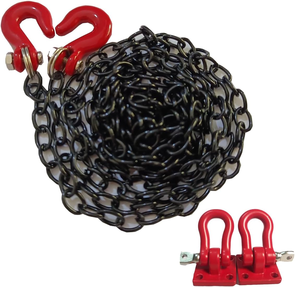 Articolo: catena per rimorchio in metallo con gancio di traino e fibbia per ganci di traino RC. Lunghezza della catena: Approx. 100cm / 3.28ft Può essere un grande accessorio di decorazione per i vostri modelli di auto RC. Simulazione decorazione accessories.Great per trainare il vostro crawler rc fuori Se si ottiene bloccato sul sentiero. Universale 1/10 RC scala decorazione accessori; Compatibile con Axial SCX10 Tamiya CC01 RC4WD D90 D110 Traxxas TRX-4 1/10 RC arrampicata Crawler Car Truck. Solo per auto in scala RC.