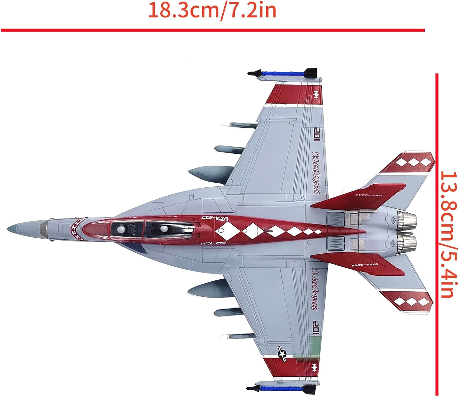 1. Modello di aereo: US Navy F/A-18 Super Hornet Strike Fighter VFA-102 Diamondbacks 2. Aereo da collezione: US Navy F/A-18 Super Hornet Strike Fighter VFA-102 Diamondbacks Modello in scala 1:100 La lunghezza del modello è di 18,3 cm 3. Aerei Prototipi: Il Modello Di Aereo È Rigorosamente Restaurato Secondo Le Proporzioni E I Dettagli Dell'Aereo Originale. Modello in lega pressofusa di alta qualità. 4. Modello decorativo: il modello aereo è molto adatto per decorare la scrivania, la vetrina e la mensola. 5. Regalo perfetto: la grande scelta regalo per compleanno, Natale, festa del papà per il tuo amante, appassionato di collezione di aerei.