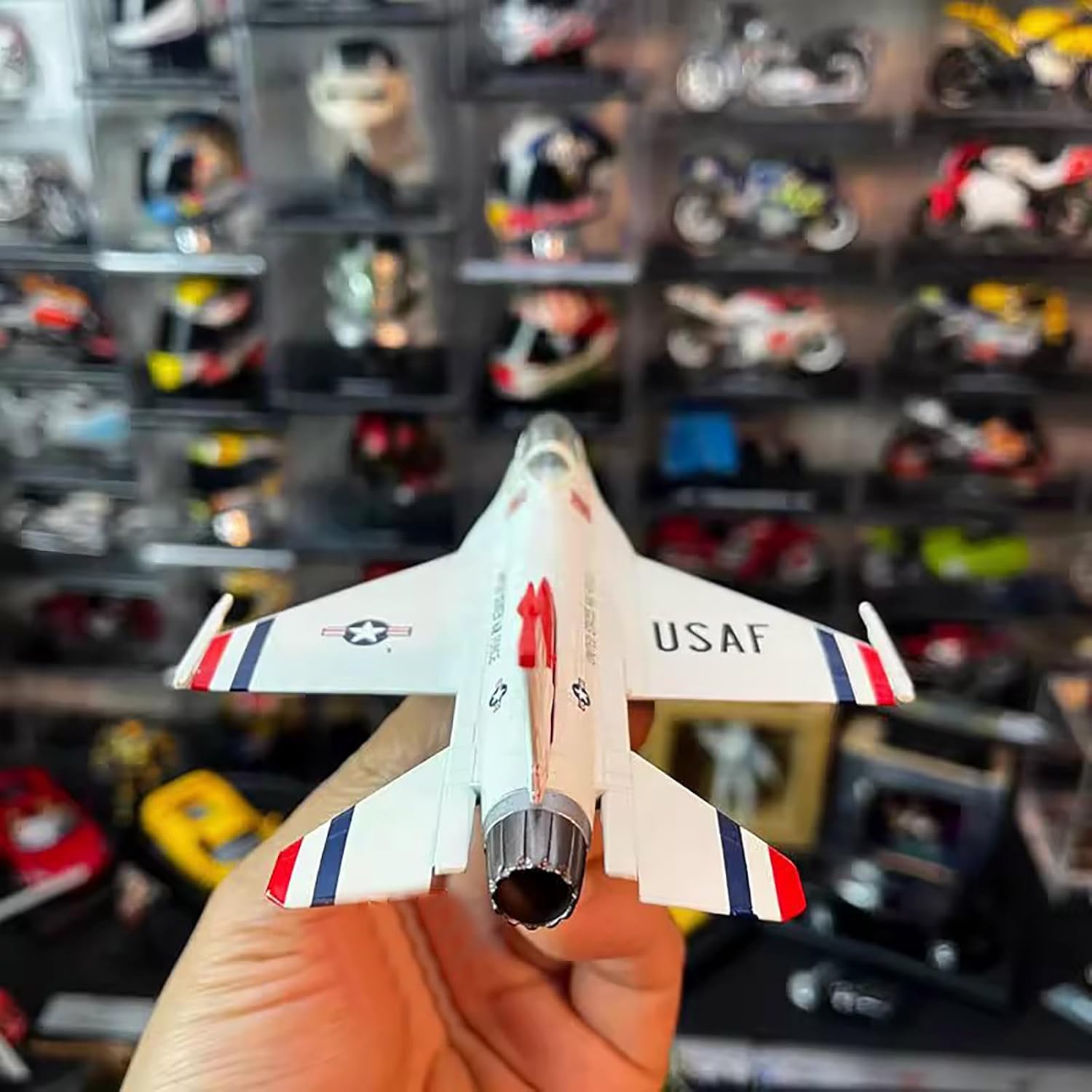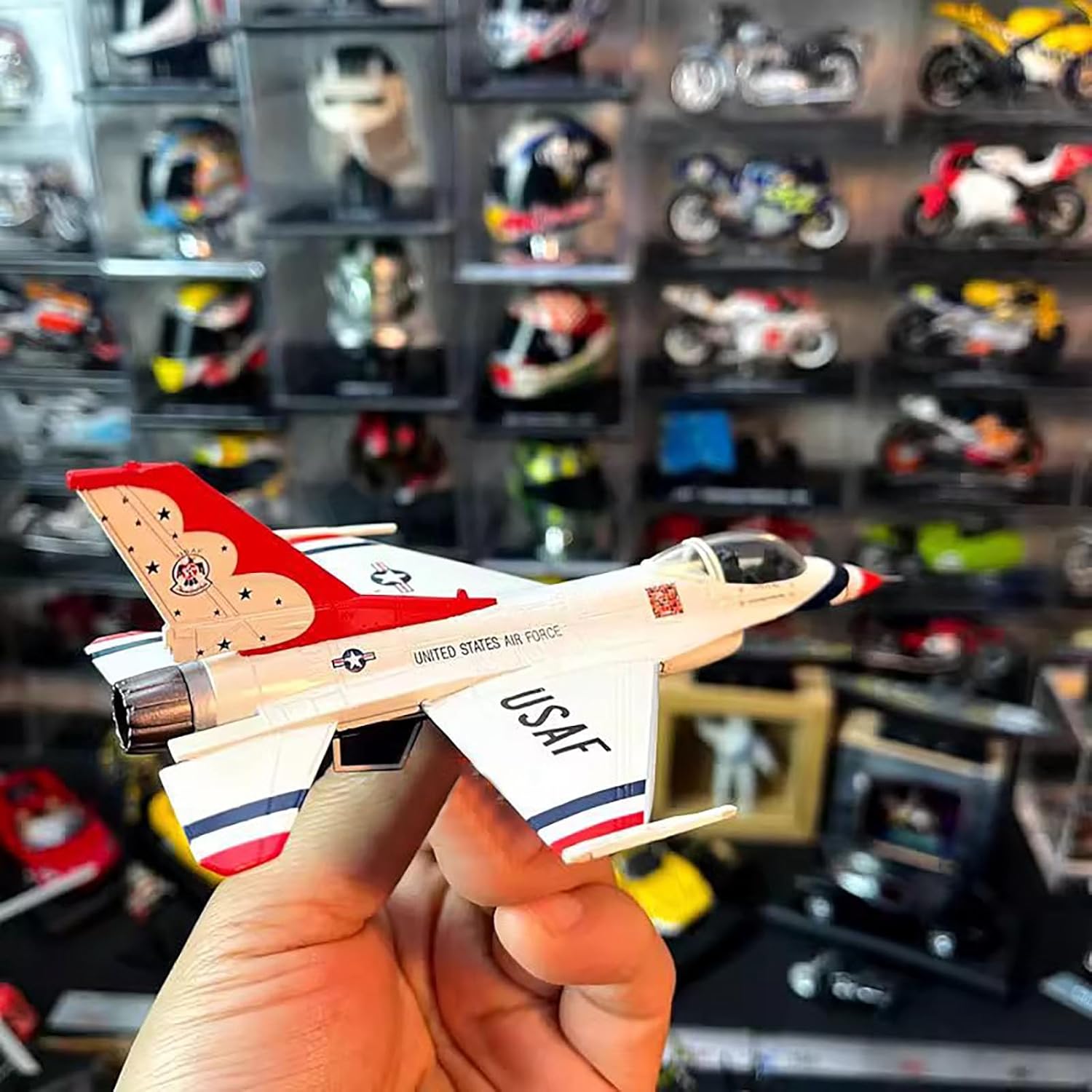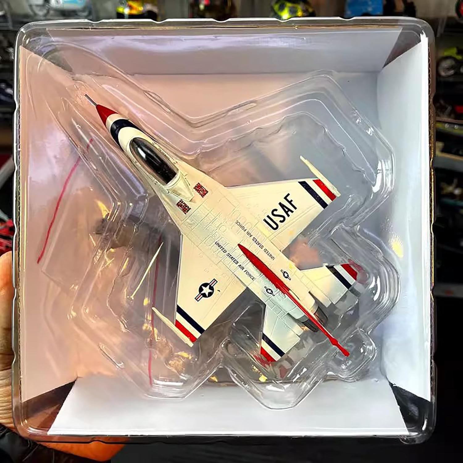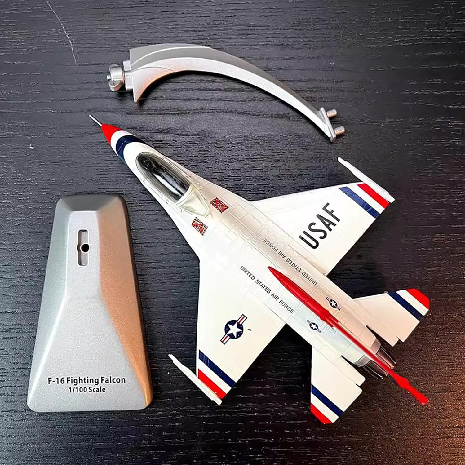 Modello di aereo: aereo dimostrativo USAF F-16 da combattimento Falcon Thunderbirds Aereo da raccolta: USAF F-16 Fighting Falcon Thunderbirds Modello di aereo dimostrativo 1:100 La lunghezza del modello in scala è di 6,1 pollici Aerei Prototipi: Il Modello Di Aereo È Rigorosamente Restaurato Secondo Le Proporzioni E I Dettagli Dell'Aereo Originale. Modello in lega pressofusa di alta qualità. Modello decorativo: il modello aereo è molto adatto per decorare la scrivania, la vetrina e la mensola. Regalo perfetto: la grande scelta regalo per compleanno, Natale, festa del papà per il tuo amante, appassionato di collezione di aerei.