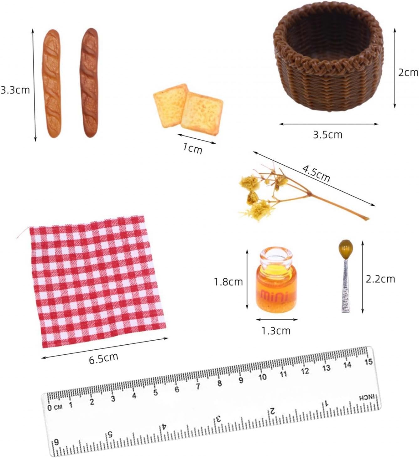 Regalo ideale: il set in miniatura per la casa delle bambole è un regalo per bambini, bambini, amanti della casa delle bambole. Multiuso: il cestino da picnic all'aperto per casa delle bambole e il modello di pane possono essere utilizzati per case delle bambole, decorazioni per negozi, micro layout paesaggistici e mini decorazioni da scrivania. Materiale durevole: il giocattolo in miniatura è realizzato in materiale resistente, pregevole fattura, simulazione e durevole. Decorazione per la casa delle bambole: 1/12 giochi per casa delle bambole accessori decorativi per la casa delle bambole, crea scene di vita per la tua casa delle bambole. Accessori per la casa delle bambole: cestino da picnic in miniatura per pane e pane. Adatto per casa delle bambole in scala 1/12.