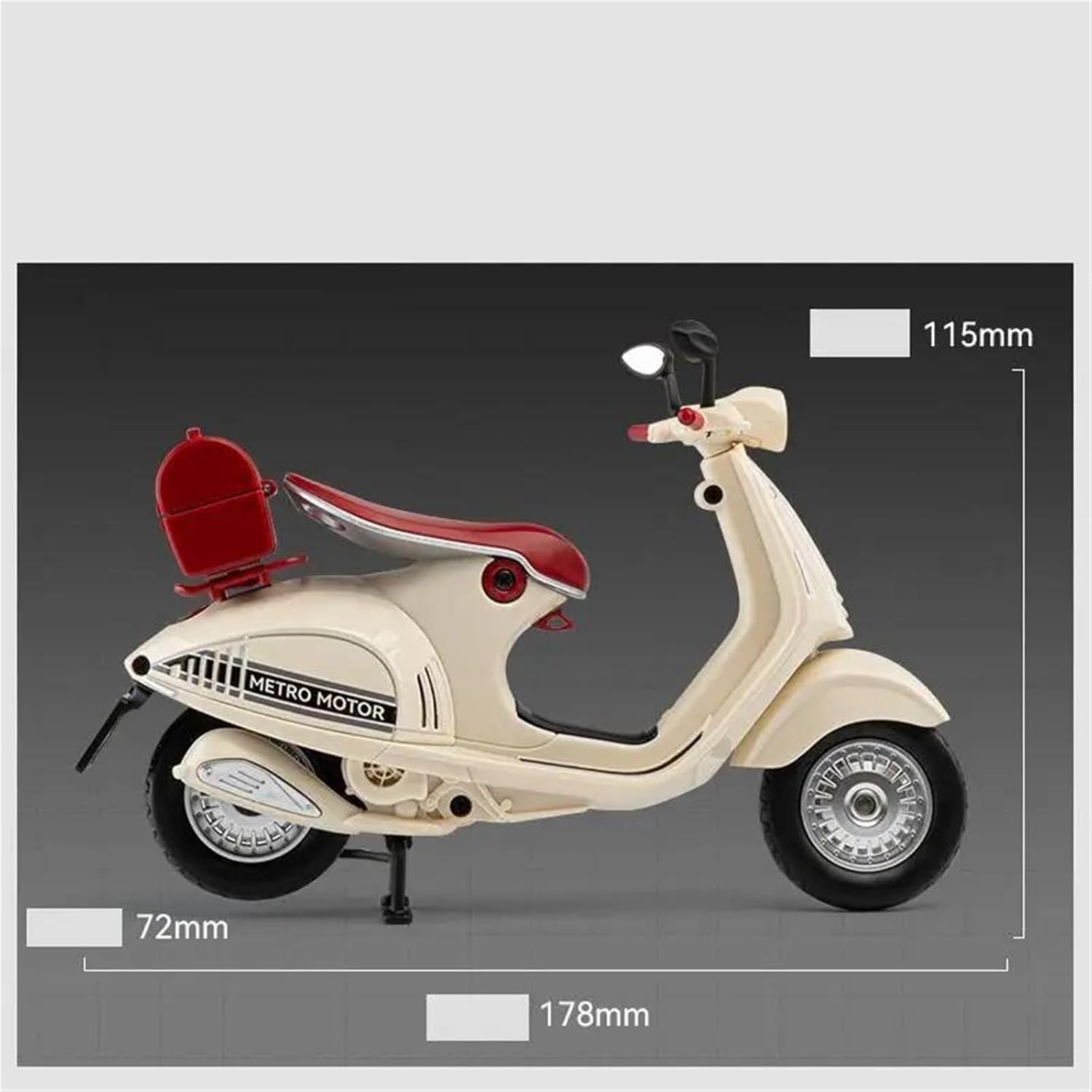 Modello di motocicletta per 946 Dargon Modello di motocicletta giocattolo in scala 1:12, parti squisite progettate secondo le proporzioni originali dell'auto, cruscotto, pedali del freno e dell'acceleratore sono progettati per essere realistici e precisi. Il modello di motocicletta è un modello squisito realizzato in stretta conformità con la forma, la struttura, il colore, gli interni e altre proporzioni del veicolo originale. È un modello in miniatura del veicolo originale ed è progettato per riprodurre l'aspetto del veicolo originale. Modello di auto di simulazione Realizzato in resistente lega di zinco, è resistente alle cadute e all'usura, garantendo la durevolezza del modello e la sua lunga conservazione. La finitura della vernice è uniformemente liscia, con colori vivaci e duraturi che resistono allo sbiadimento e alle scheggiature, garantendo un aspetto costantemente brillante.